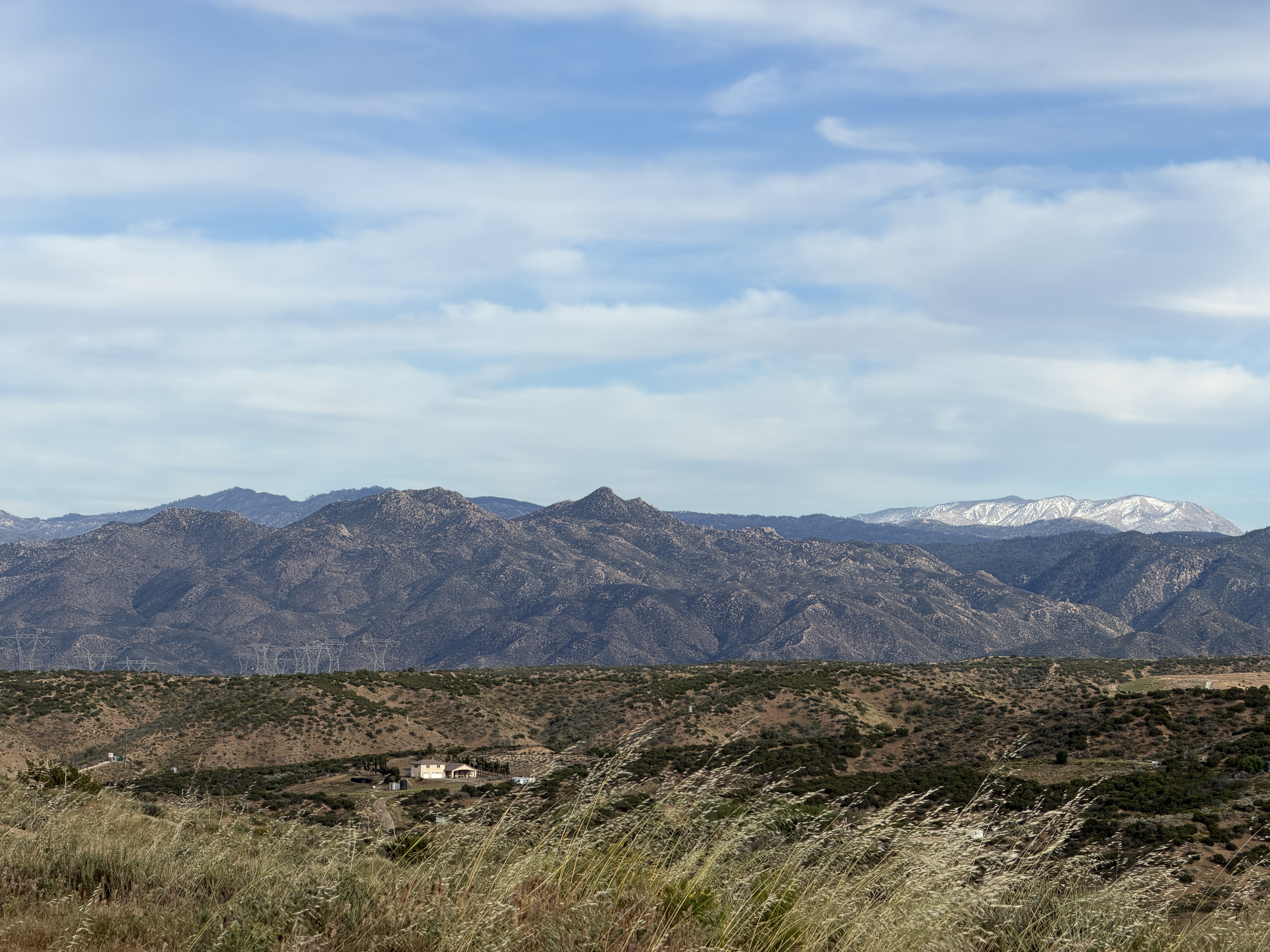 For one thing, with this viewpoint being shifted to the west a bit from our house, instead of snow-covered Big Bear being hidden behind the Pinnacles, you can see it peeking around on the right. And the view down off of the Mesa into the Cajon Pass is gorgeous.