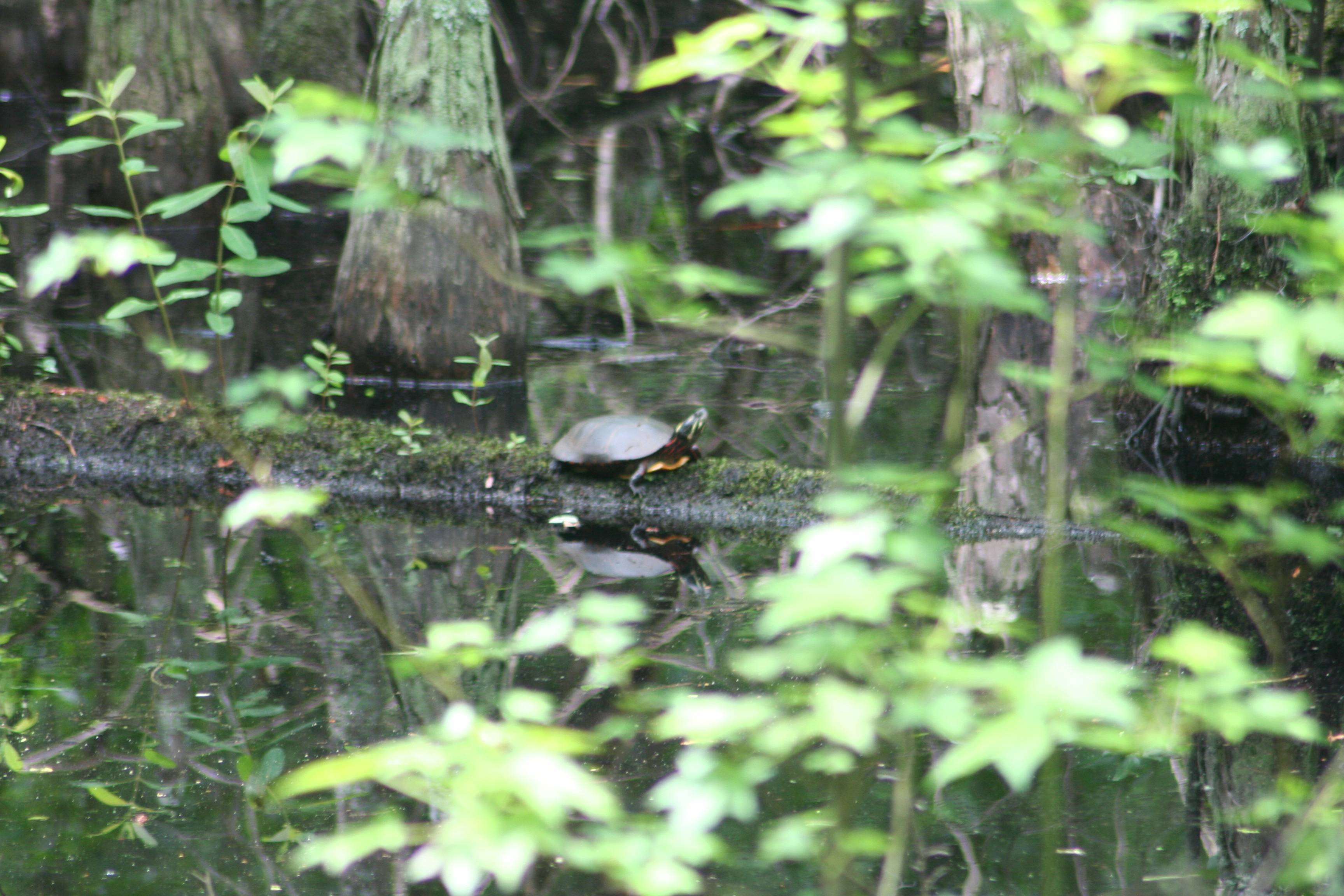 About the time we were talking about snakes (Penny’s specialty is herpetology and she was looking for water moccasins or cotton mouths) I spotted this guy next to the trail. Penny identified it as a non-venomous “Redbelly water snake (Nerodia erythrogaster)” and I decided to take her word for it. (Again, snakes and I are not the best of friends. It’s me, not them – nothing personal, snakes!)
