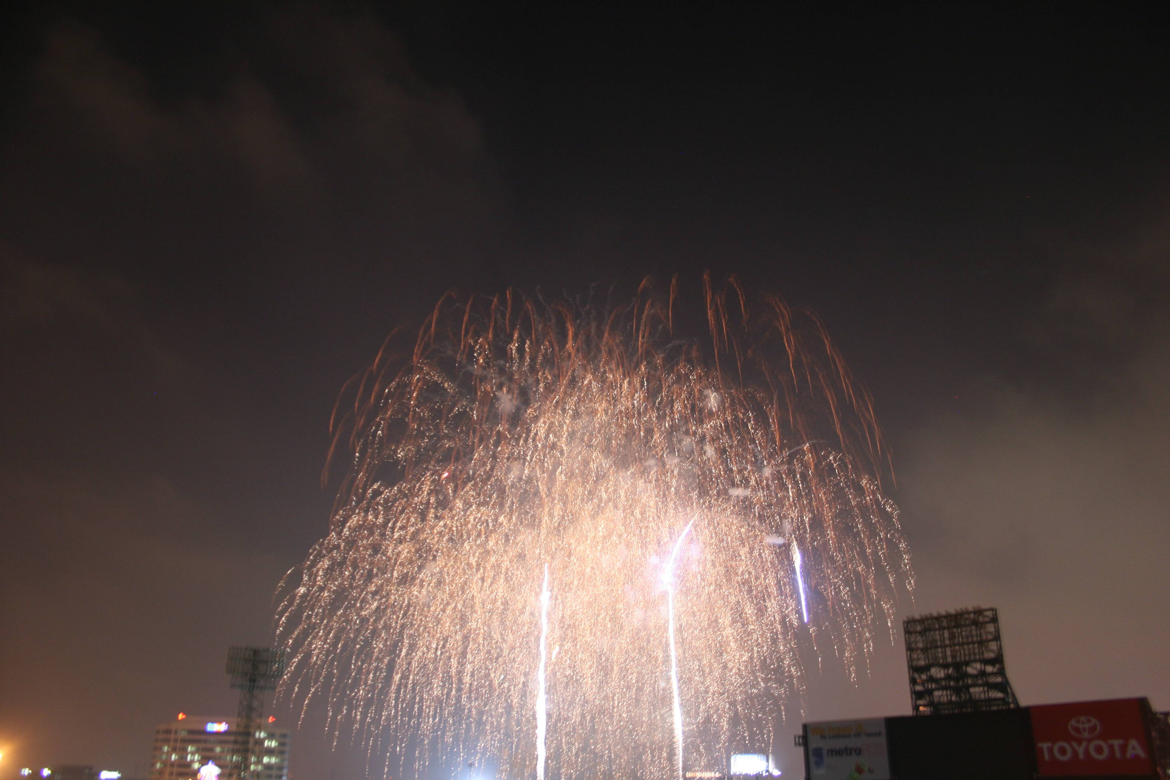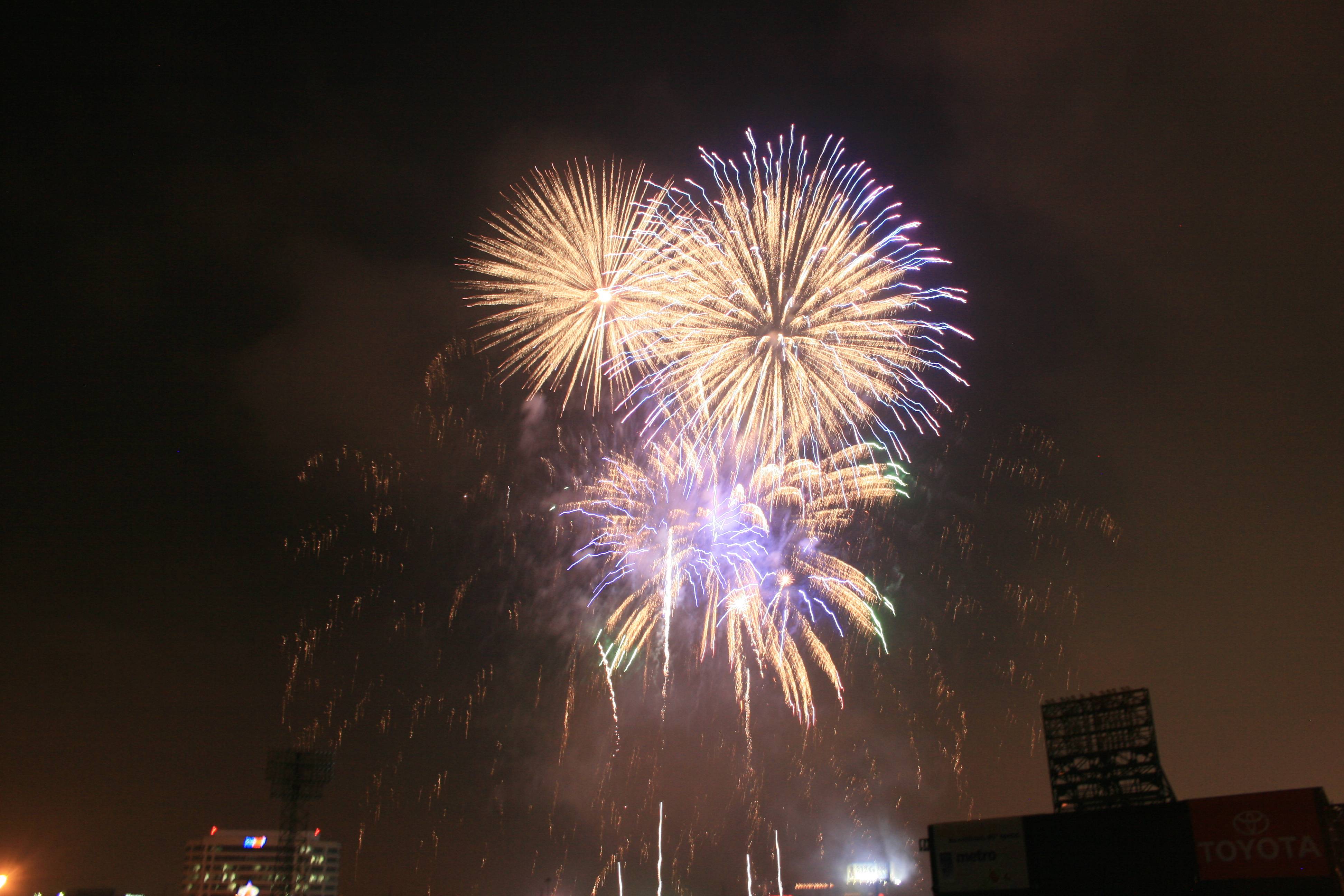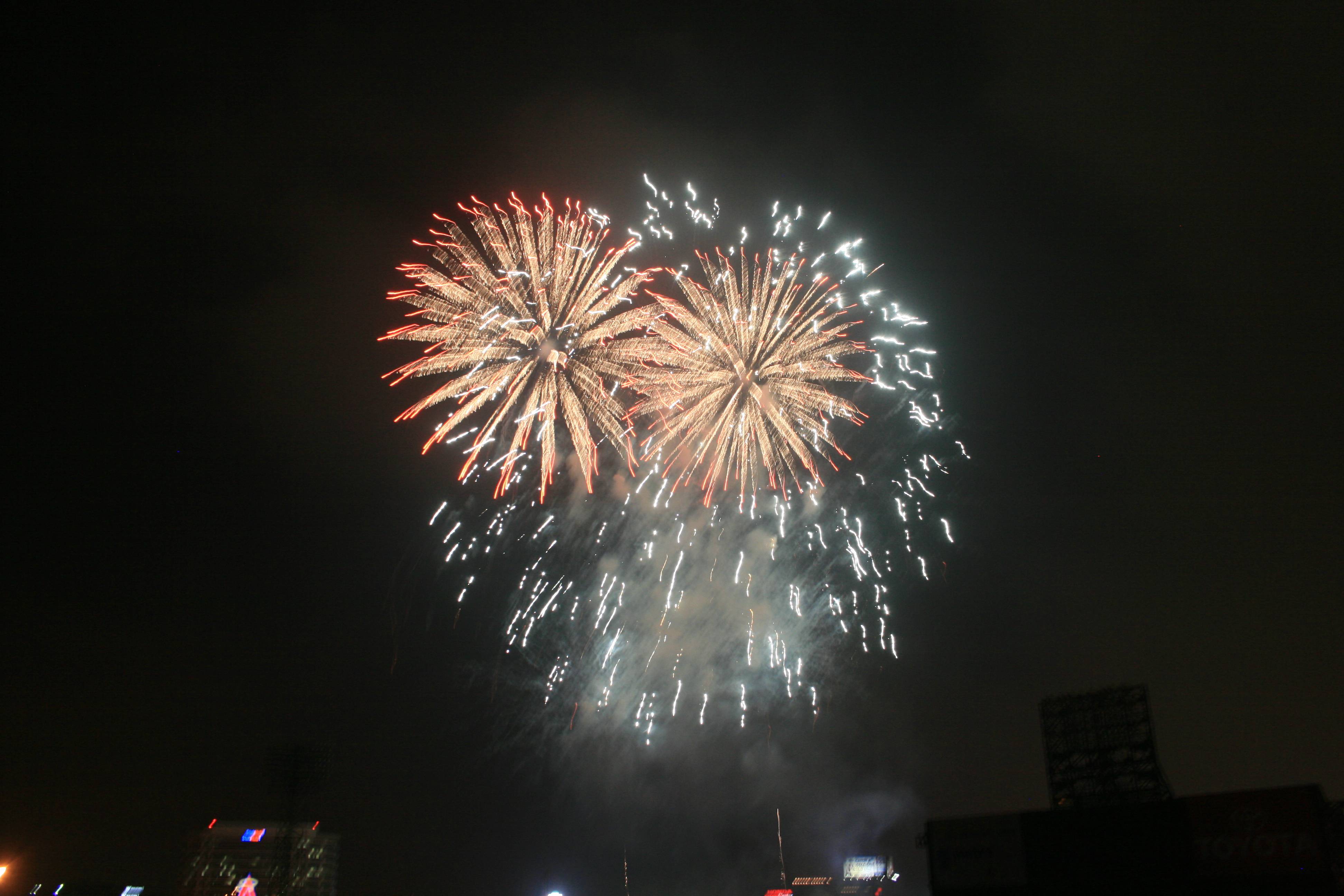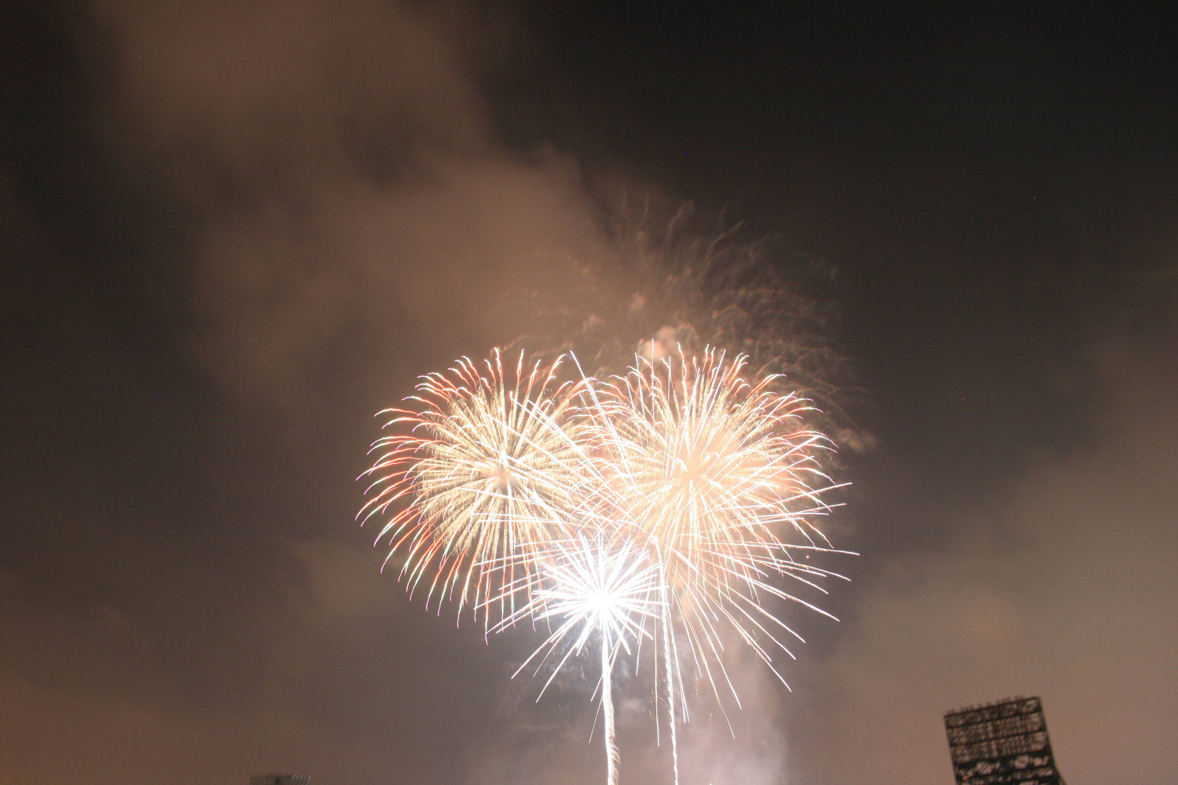 The other problem (as you can see below) is that there was very little wind, so the smoke from the fireworks did not drift away and just got worse as the show went on. This means that any longer exposures ended up lighting up the smoke like the high beams on your car light up fog.