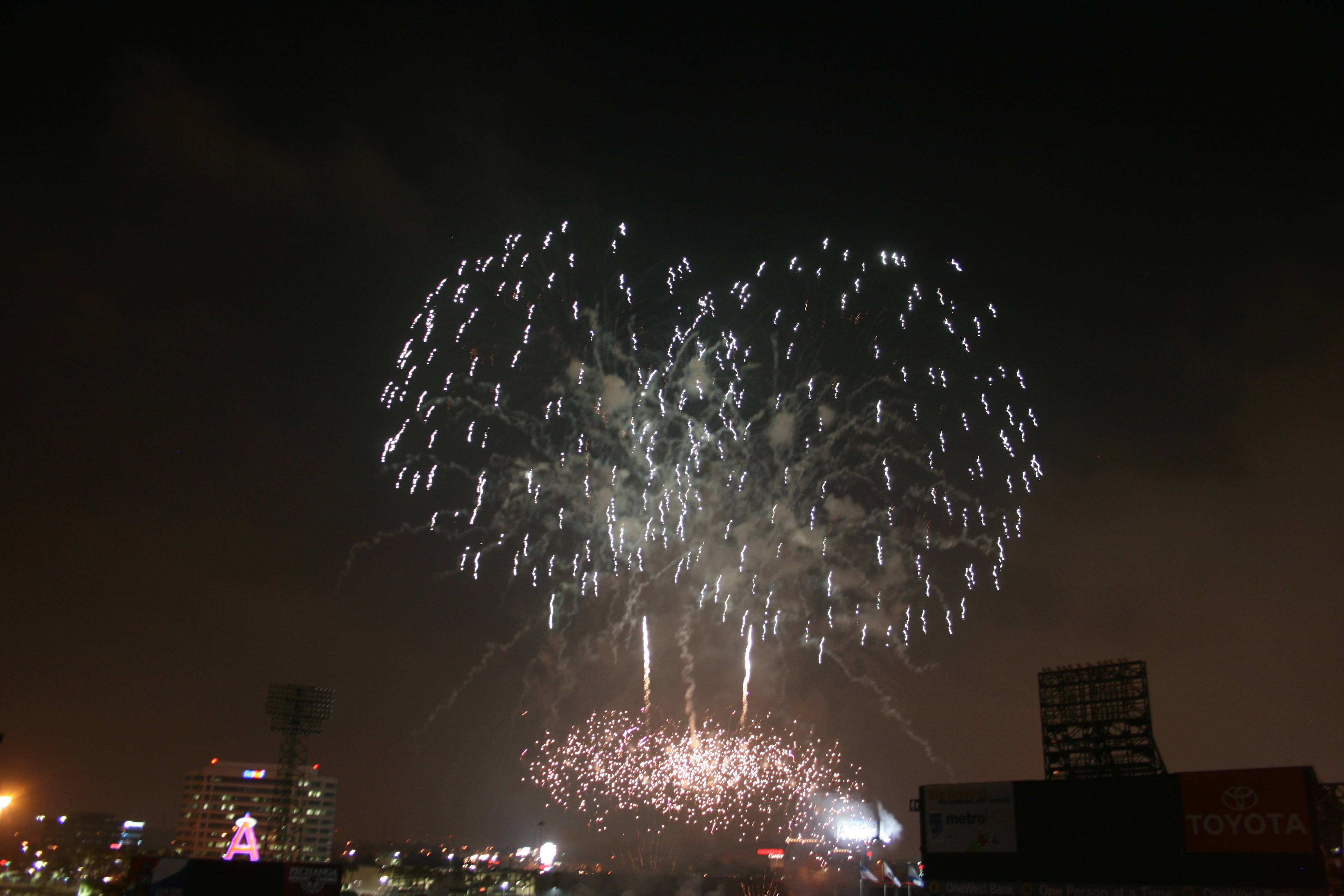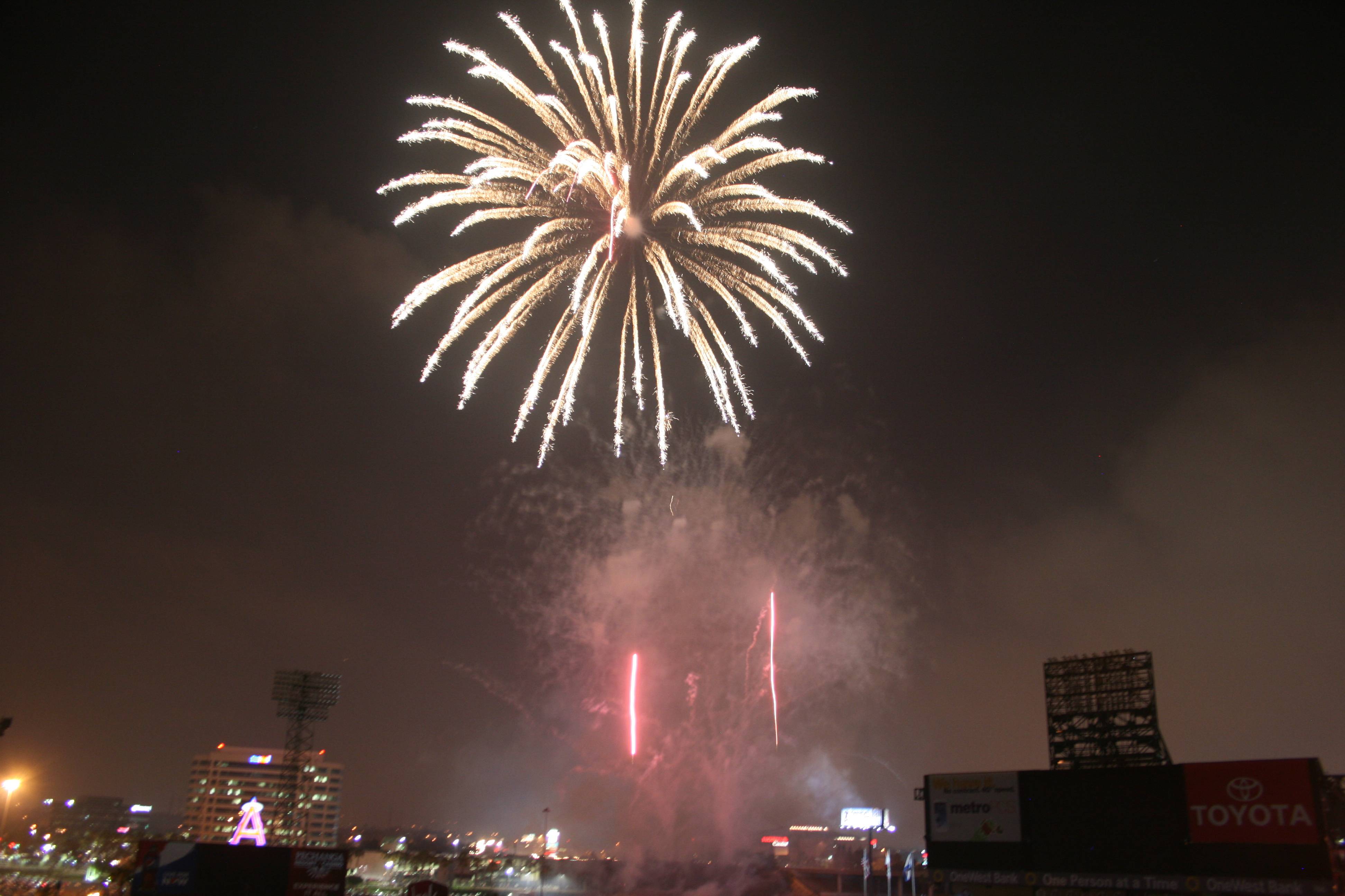 Ronnie and I had a most pleasant 4th of July evening at Angels Stadium in Anaheim, watching our beloved Angels come from two runs down in the ninth inning to tie it on a Josh Hamilton home run to deep, dead center (I was wearing the “shark” rally hat, much to the delight of several fans sitting nearby, so I’ll take a bit of the credit) and then win it on a two-out, walk-off single by Eric Aybar.