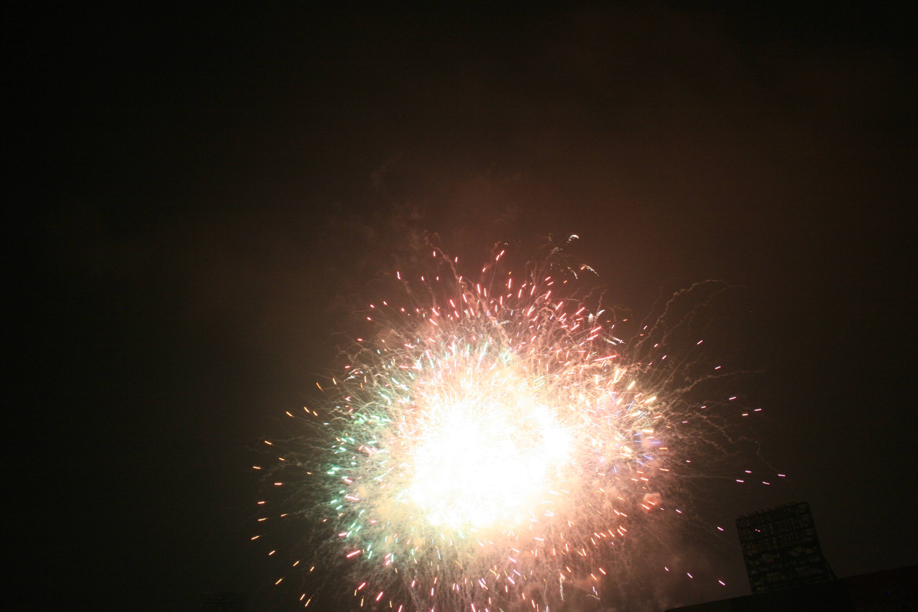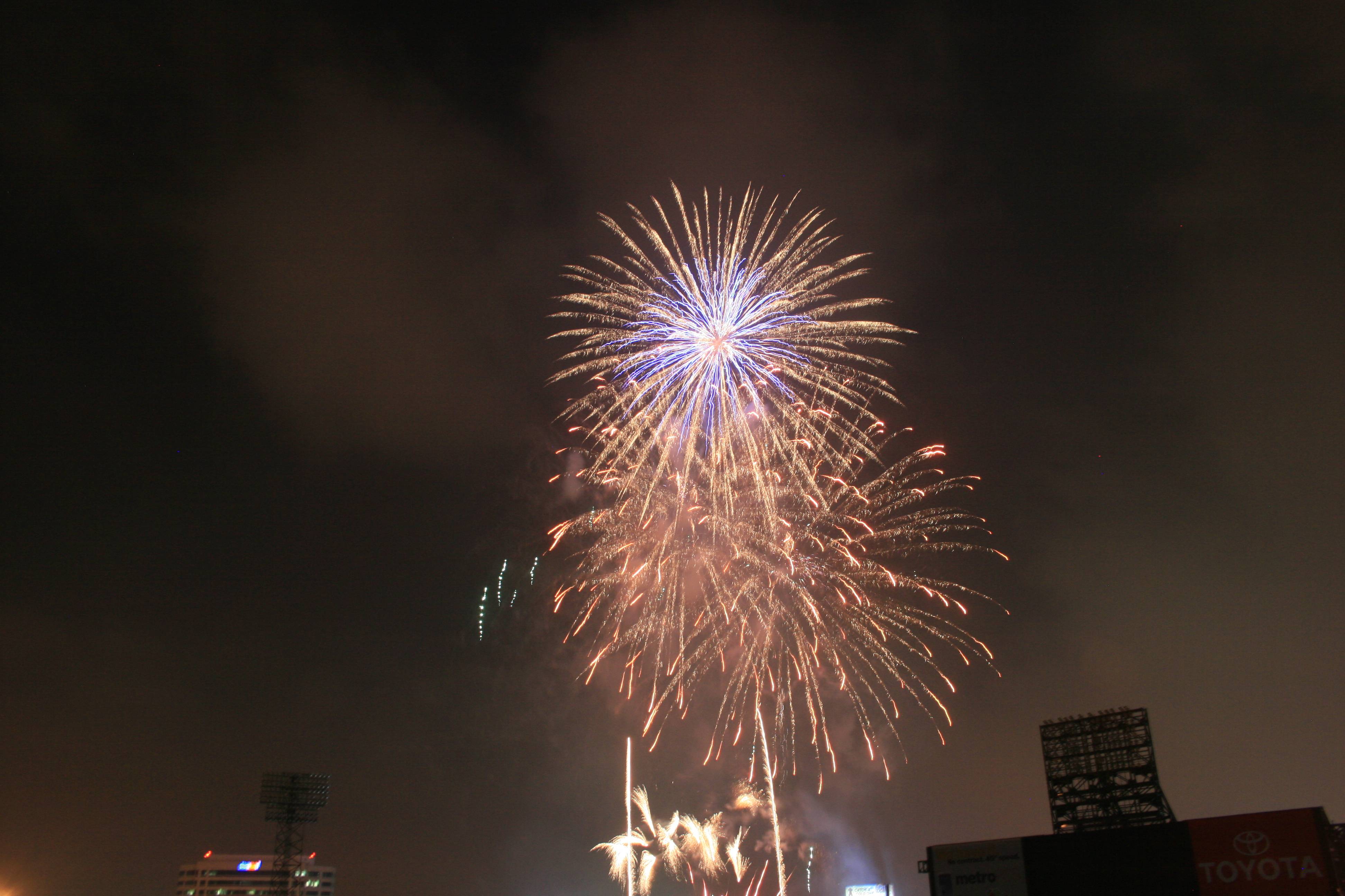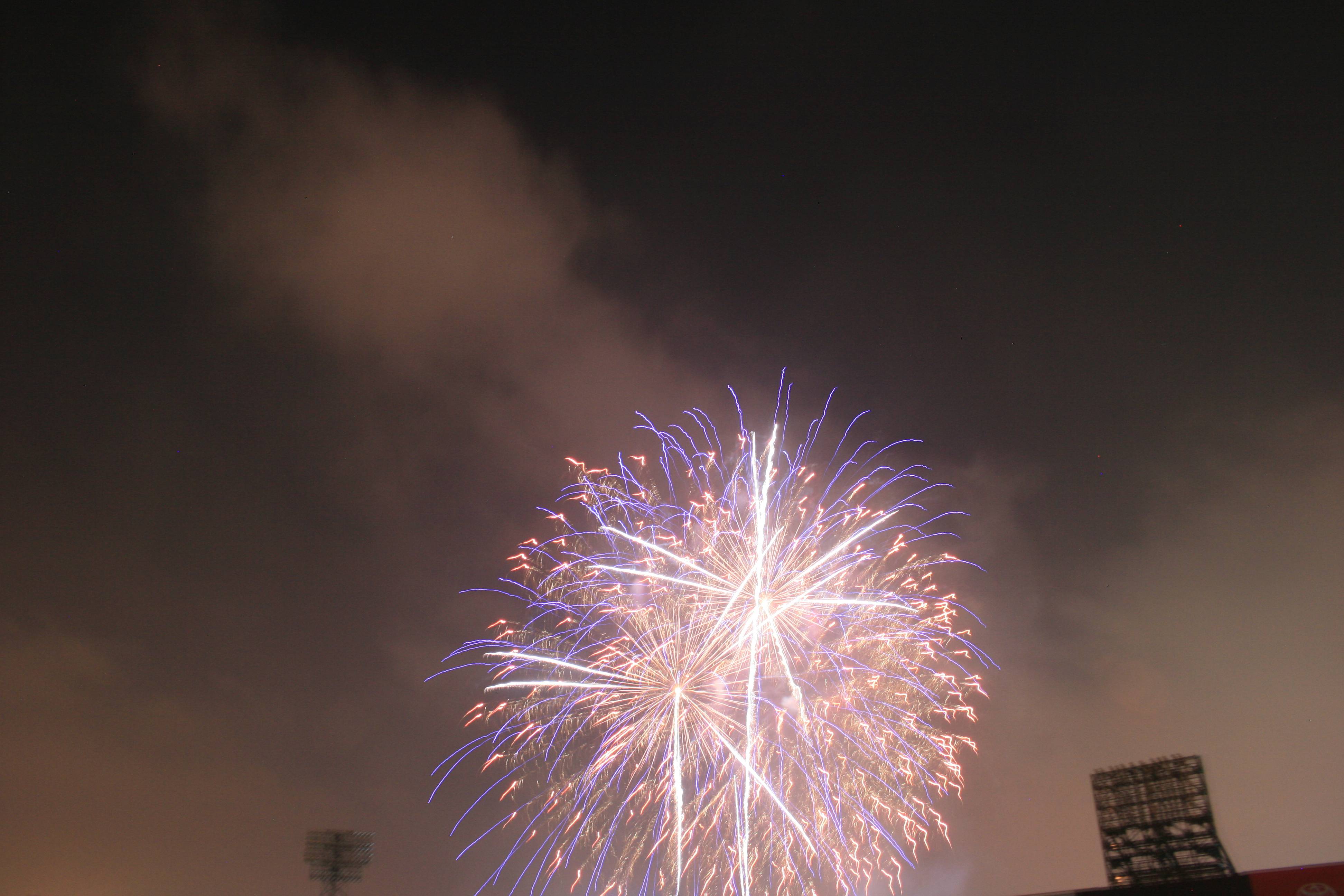 Following the game we had a fantastic fireworks display and our seats were perfect for viewing it. I had brought in a small tripod and set it up with the video camera (we were in the front row of our section) and I think that the video may be the best fireworks video I’ve ever gotten.
