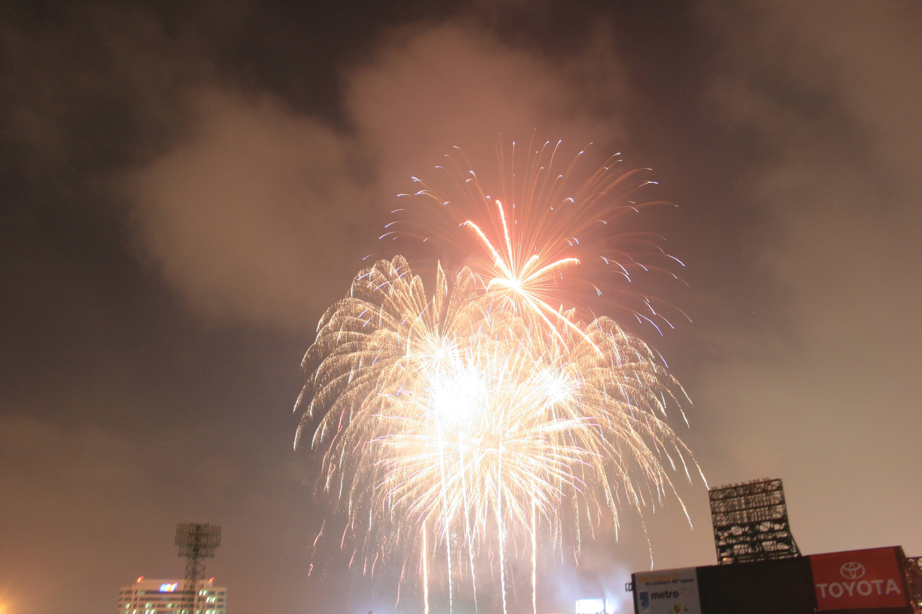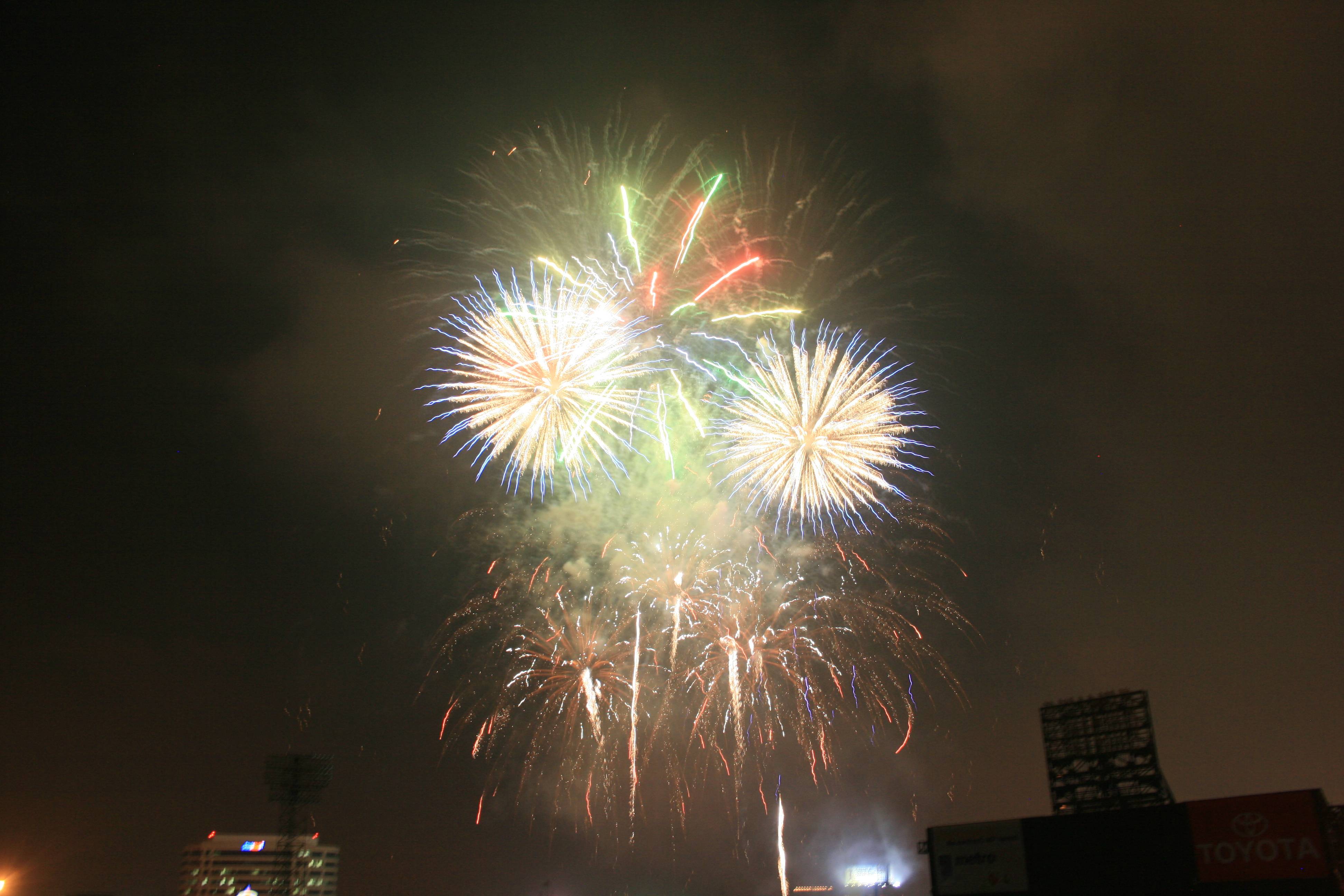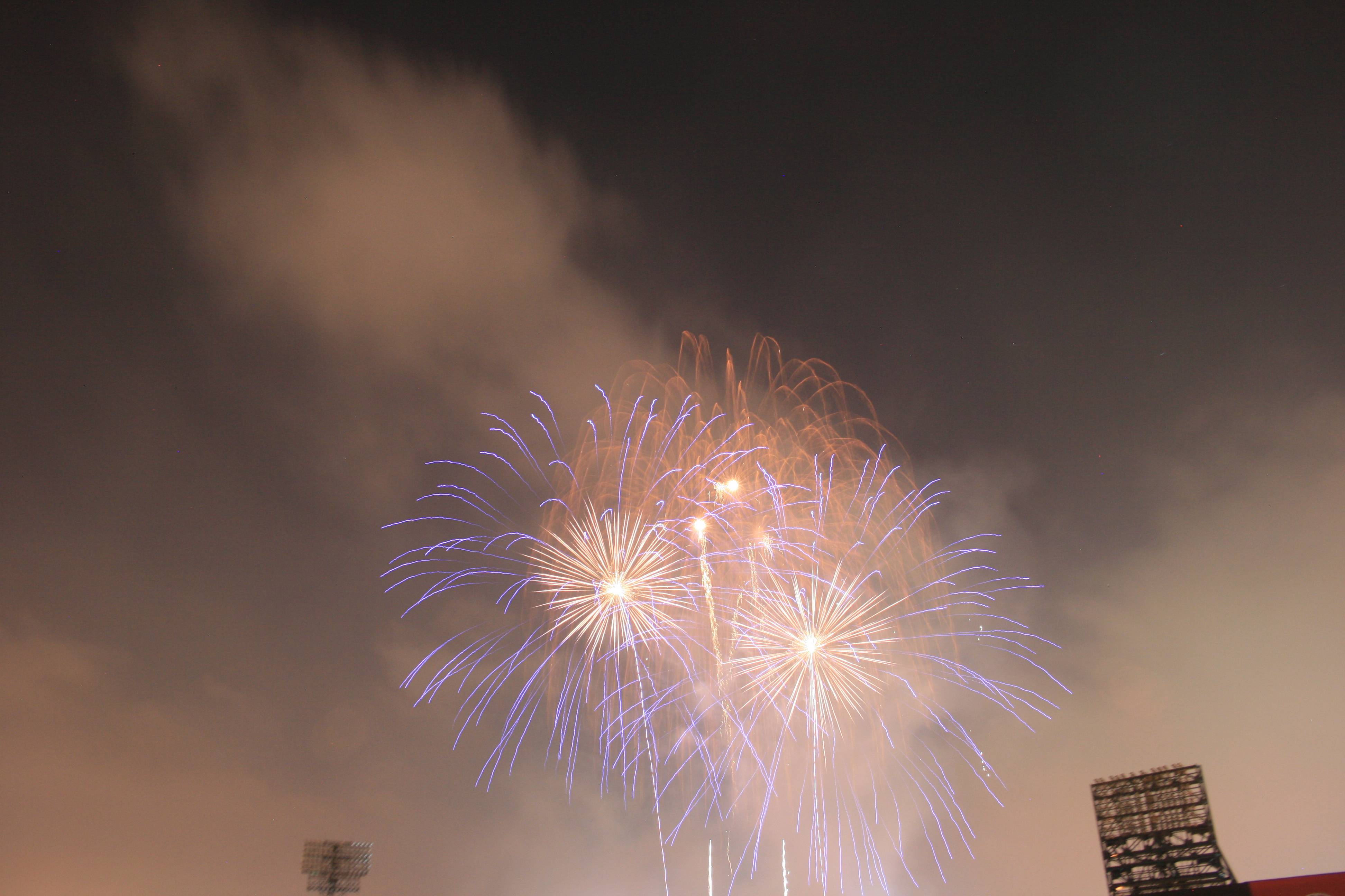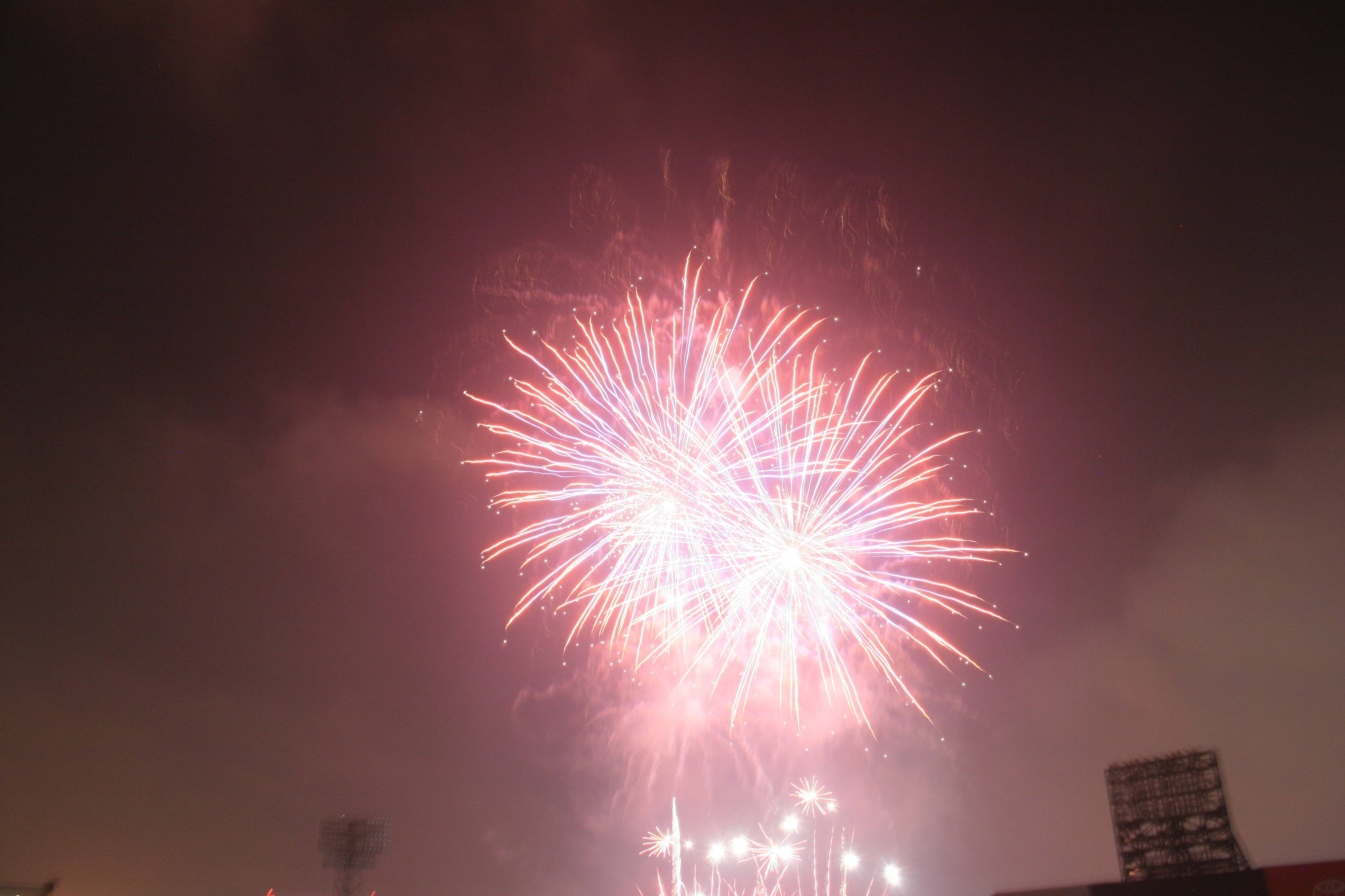 Following the game we had a fantastic fireworks display and our seats were perfect for viewing it. I had brought in a small tripod and set it up with the video camera (we were in the front row of our section) and I think that the video may be the best fireworks video I’ve ever gotten.