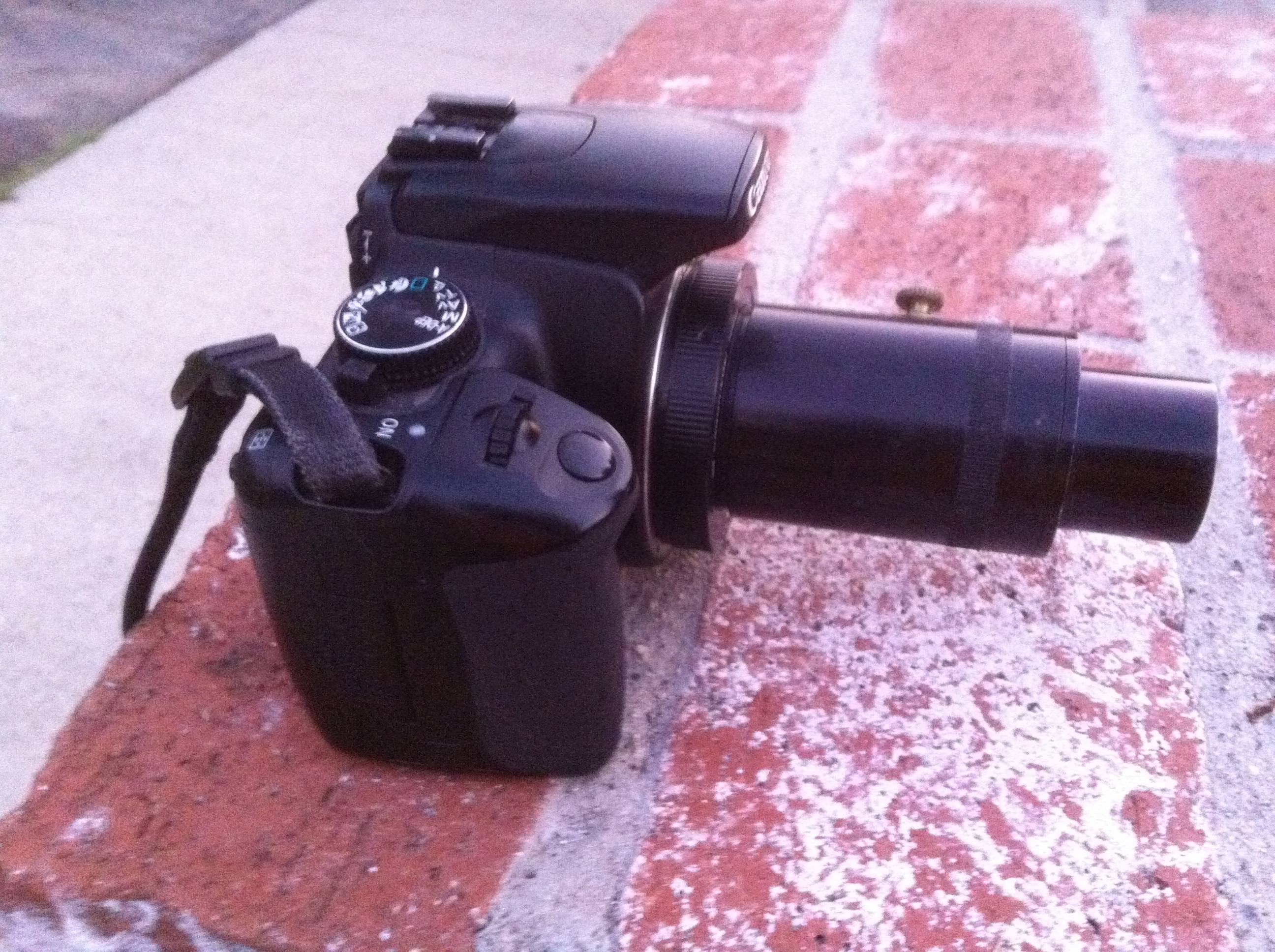 It occurred to me that there was an intermediate intermediate step before I got the DSLR camera working correctly on the telescope. And you can try this (with the telescope owner’s permission in advance, of course!) if you’re at a star party or someplace where someone has set up a telescope, or even a pair of binoculars.