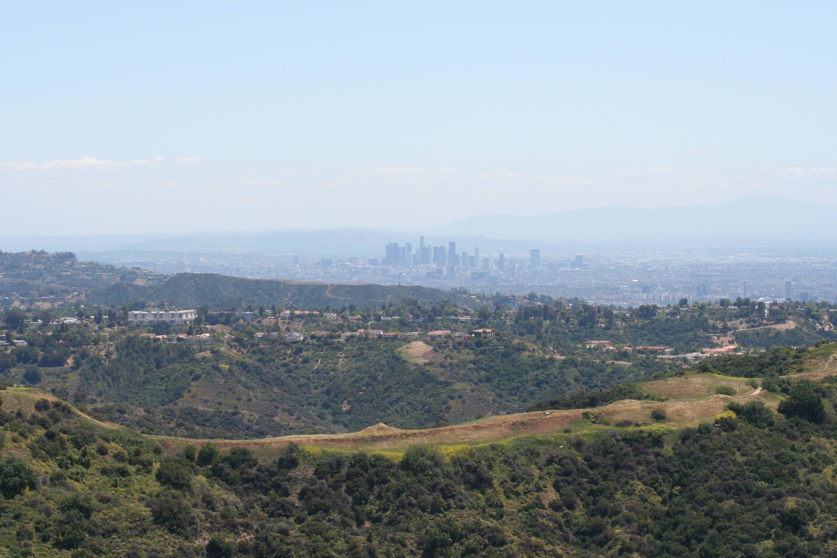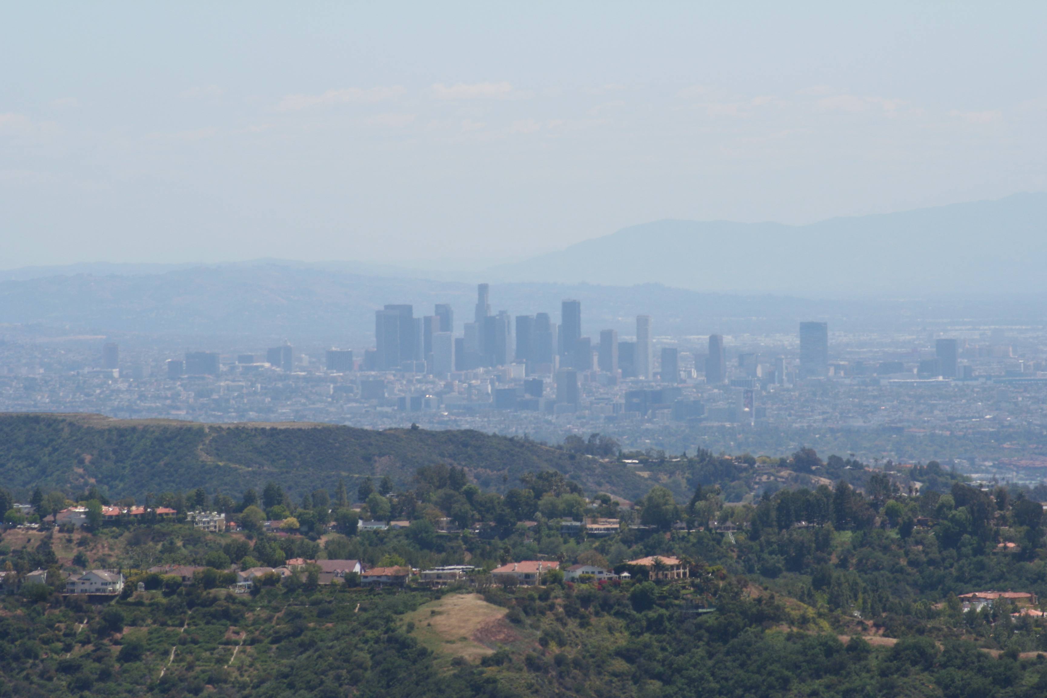 02_IMG_6353_smallA telephoto shot of the view of downtown LA. The houses on the hill in the foreground are in Sherman Oaks, Westwood, and Bel Aire. Very, VERY pricey housing.