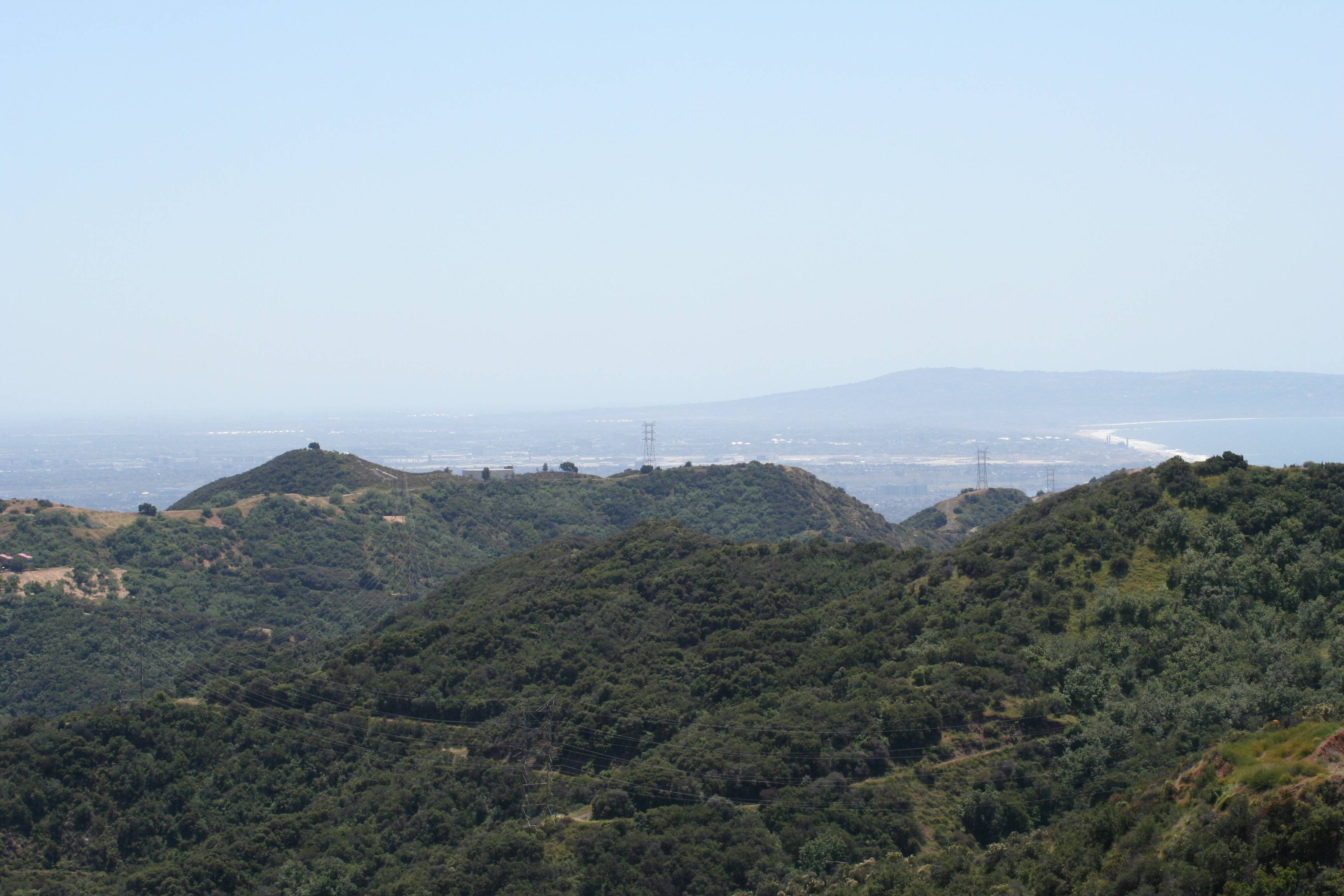 03_IMG_6238_smallA wide shot looking down toward the coastline. You can see the beach over the hill on the far right, with the Palos Verdes Peninsula rising up in the distance. Just over the hills you can clearly see a large white area running from left to right just inland from the coast – that’s LAX.