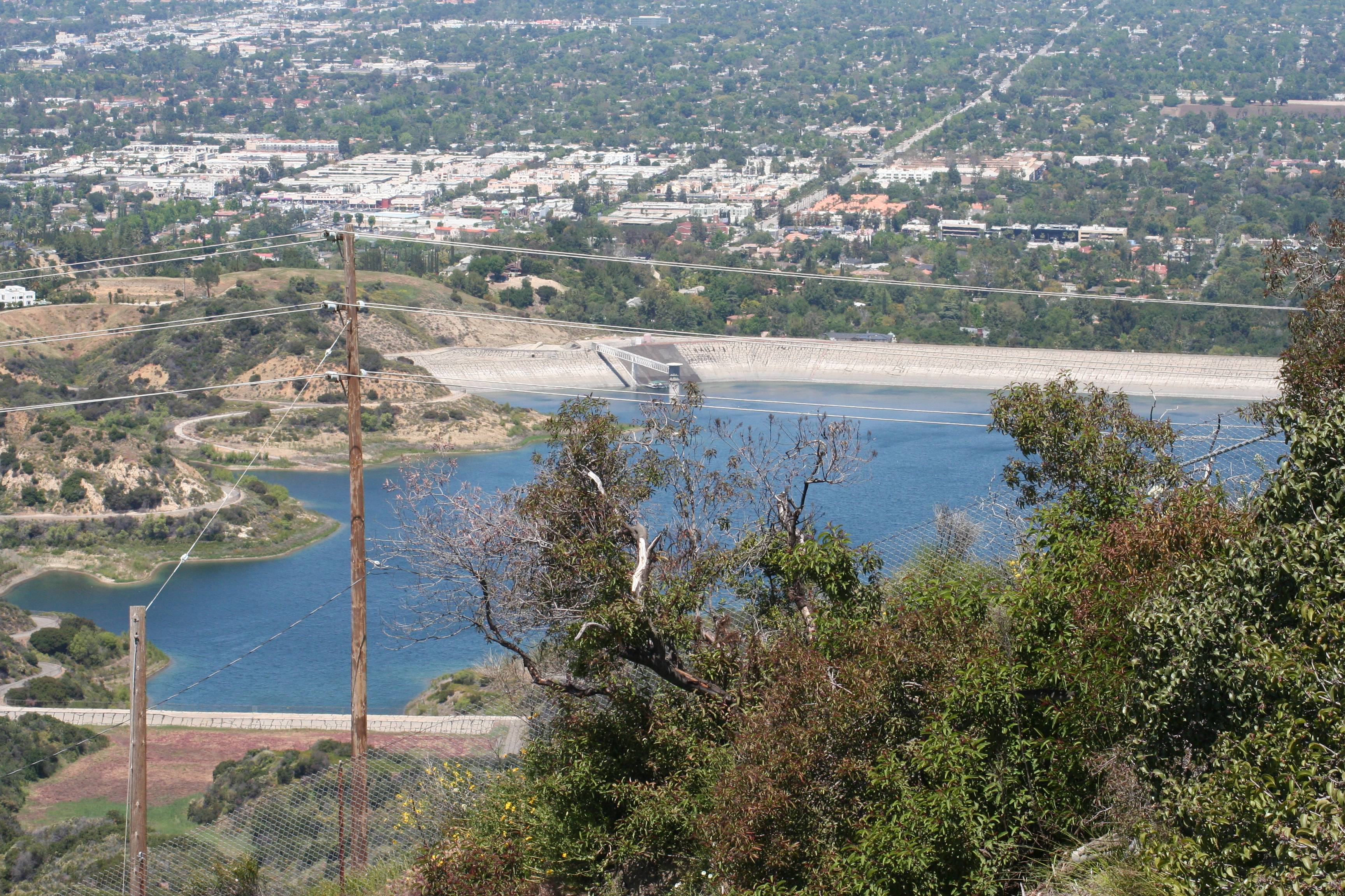 08_IMG_6366_smallFrom the Nike Base tower you’re looking down into the Encino Reservoir. Running right to left along the base of these hills you can see a lot of bigger buildings – that’s Ventura Boulevard. The major street running perpendicular to it from the mid-upper right is White Oak Boulevard. Reseda Boulevard is cutting north-south across a piece of the top, left corner.
