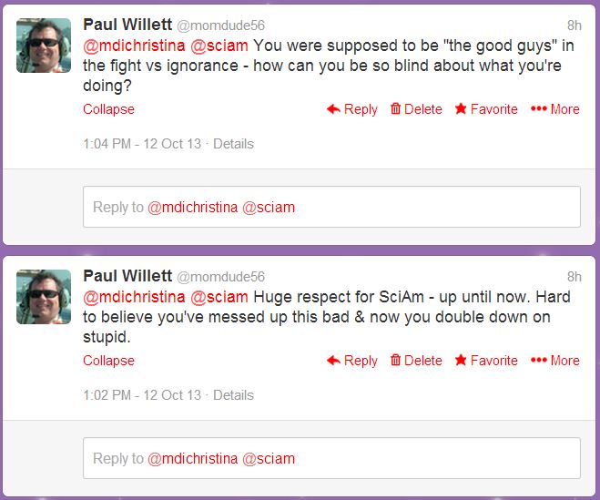 As someone pointed out, even Buzzfeed is calling Scientific American to task for what they’ve done. Isn’t that a bit like the New York Times screwing up and being chewed out by the National Enquirer?