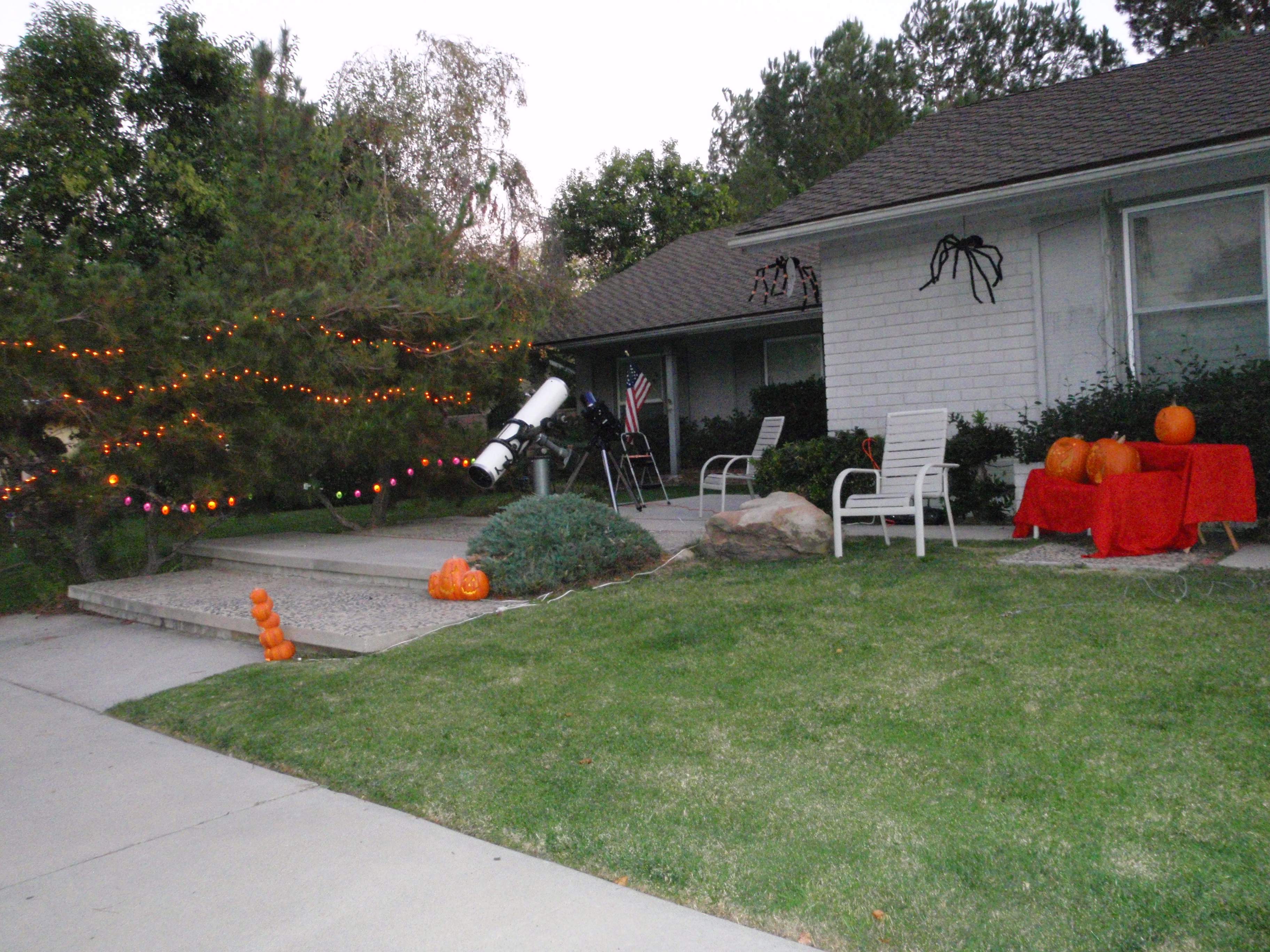 For years, when possible (given acceptable weather and the cooperation of the “late night and early morning low clouds and fog” that are the norm in autumn) we have set up a couple of telescopes in the front yard for Halloween. We’ll sit out there and hand out candy and let folks take a look at whatever’s up. (Years with a favorable position for the moon, Jupiter, or Saturn are the best!)