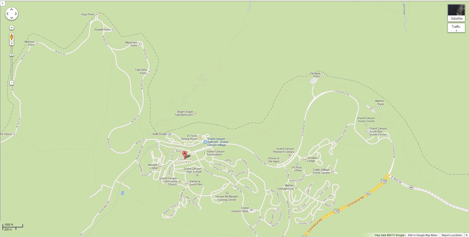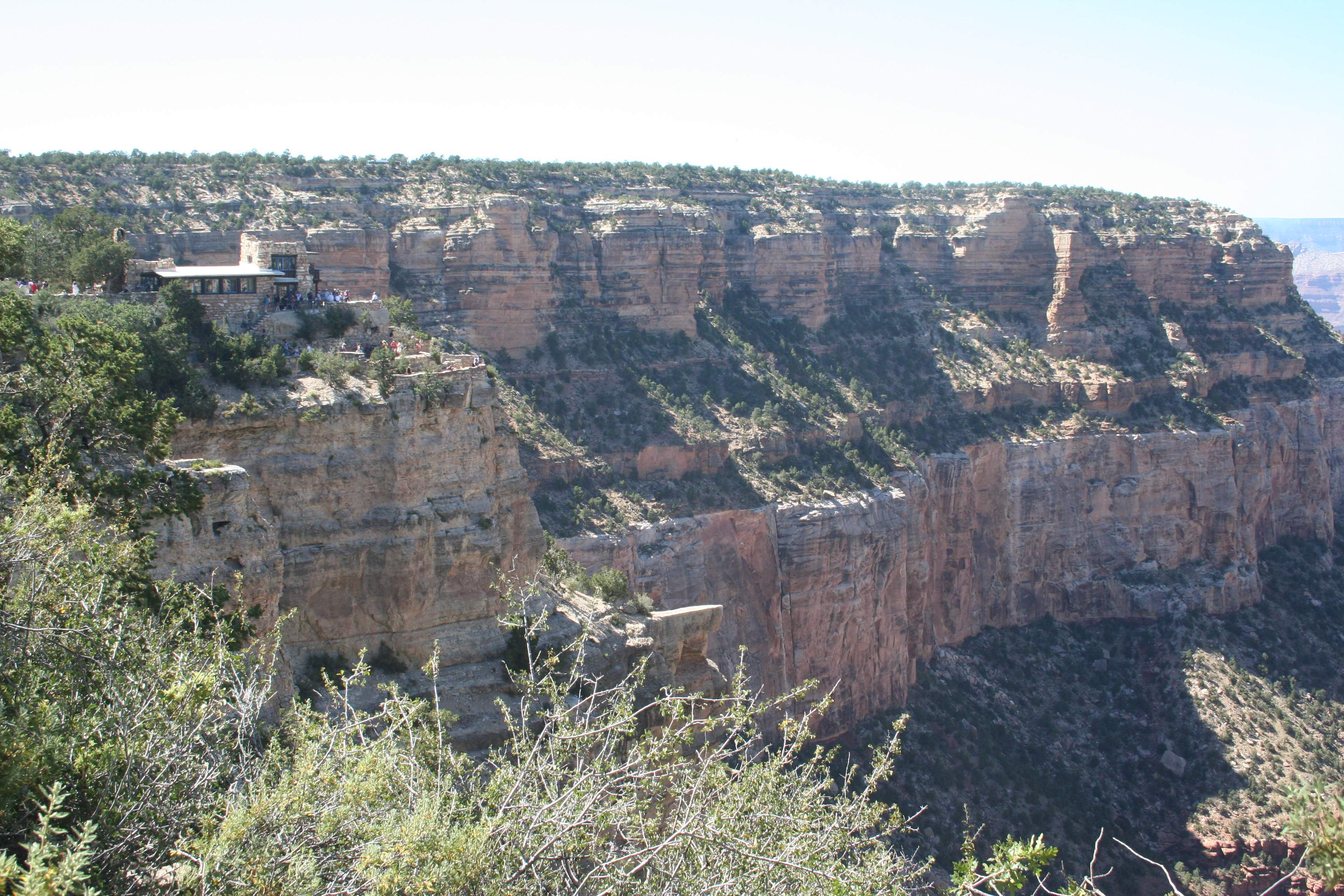 Sticking out on a finger of rock is the Kolb Studio. Right on the far side of the studio is the trailhead for the Bright Angel Trail going down into the Canyon. It’s worth walking down to the studio to see the artwork there, as well as the views from the lower terraces you can see.