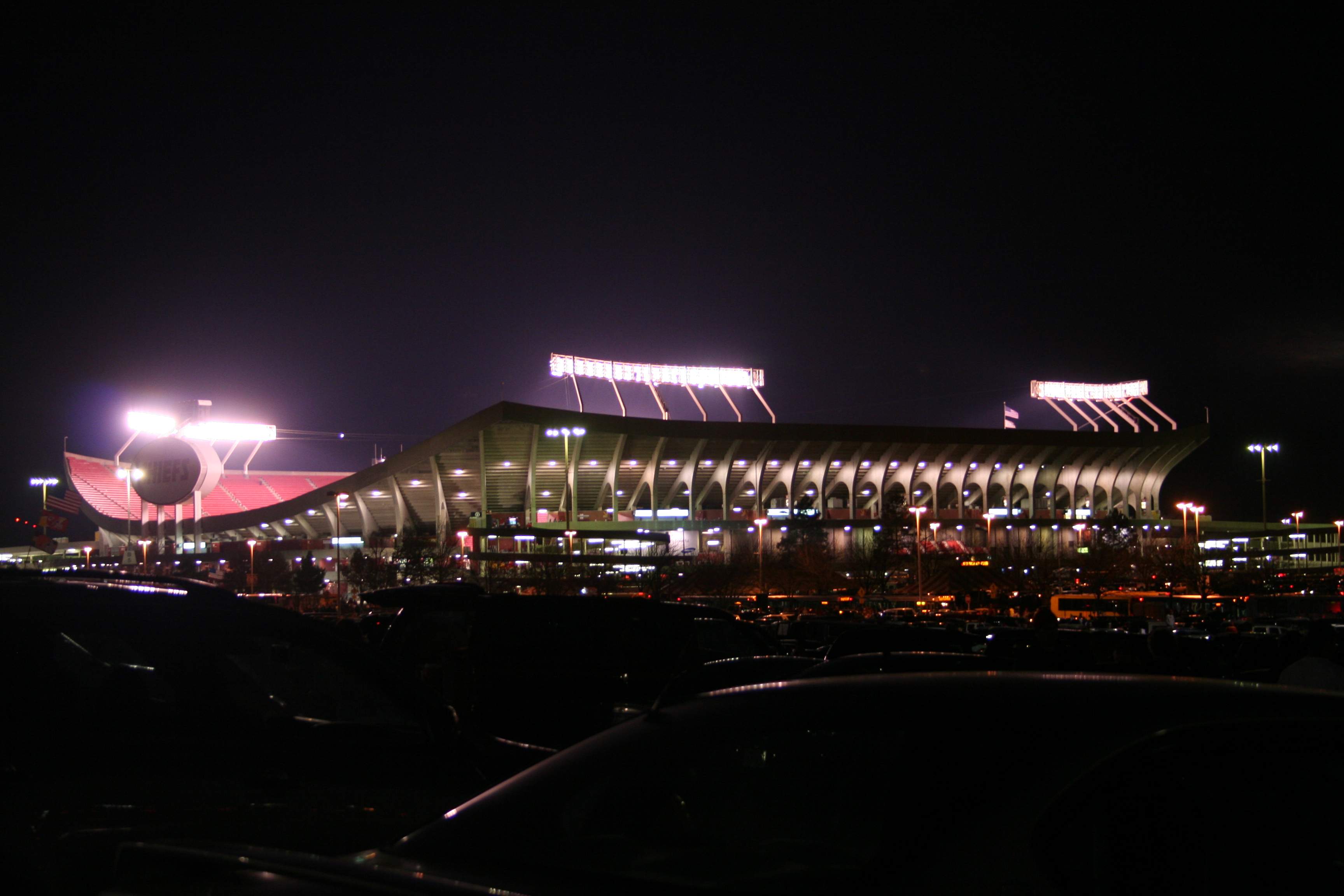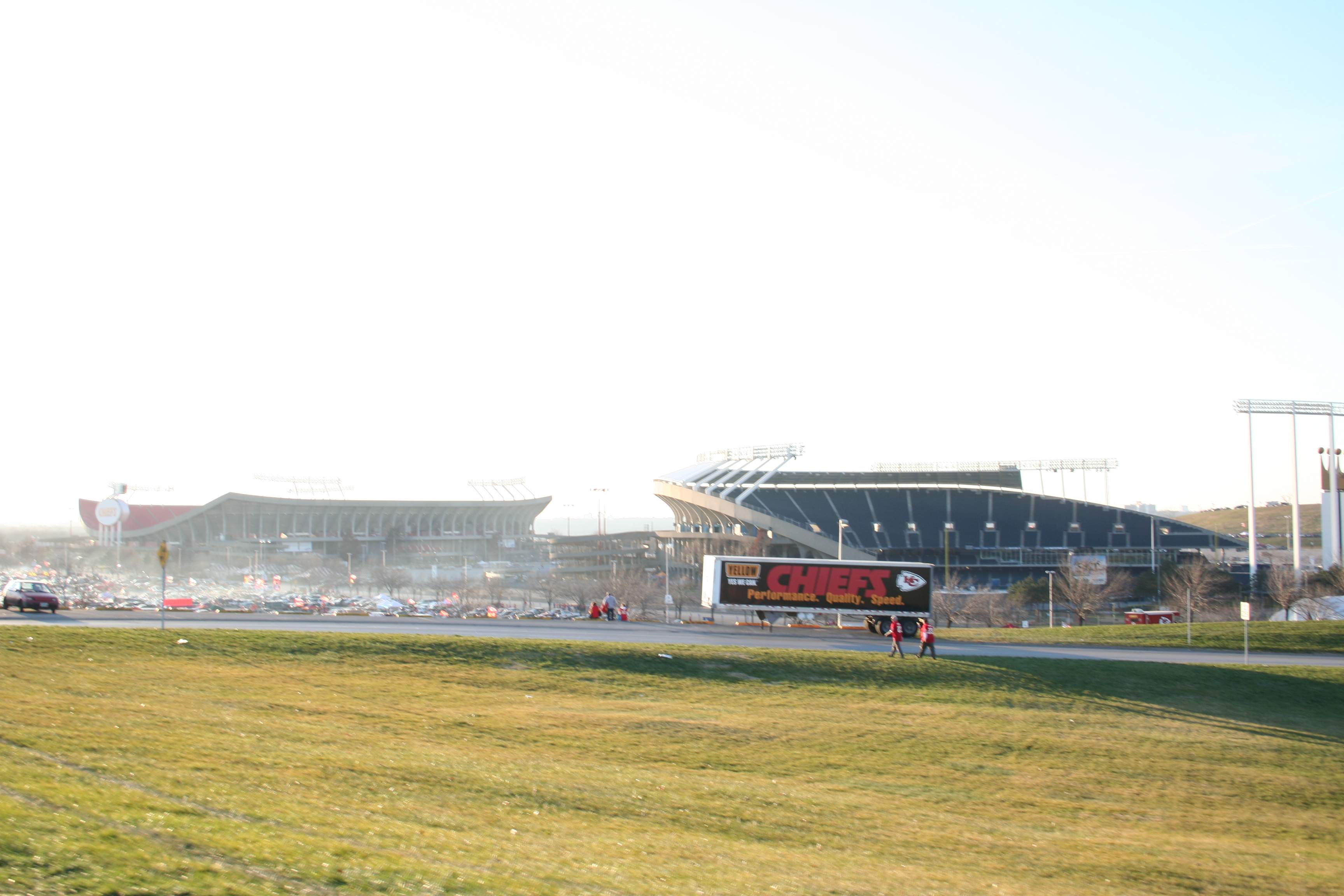 The Truman Sports Complex, with Arrowhead on the left and Kaufman Stadium (where the Royals play) on the right.