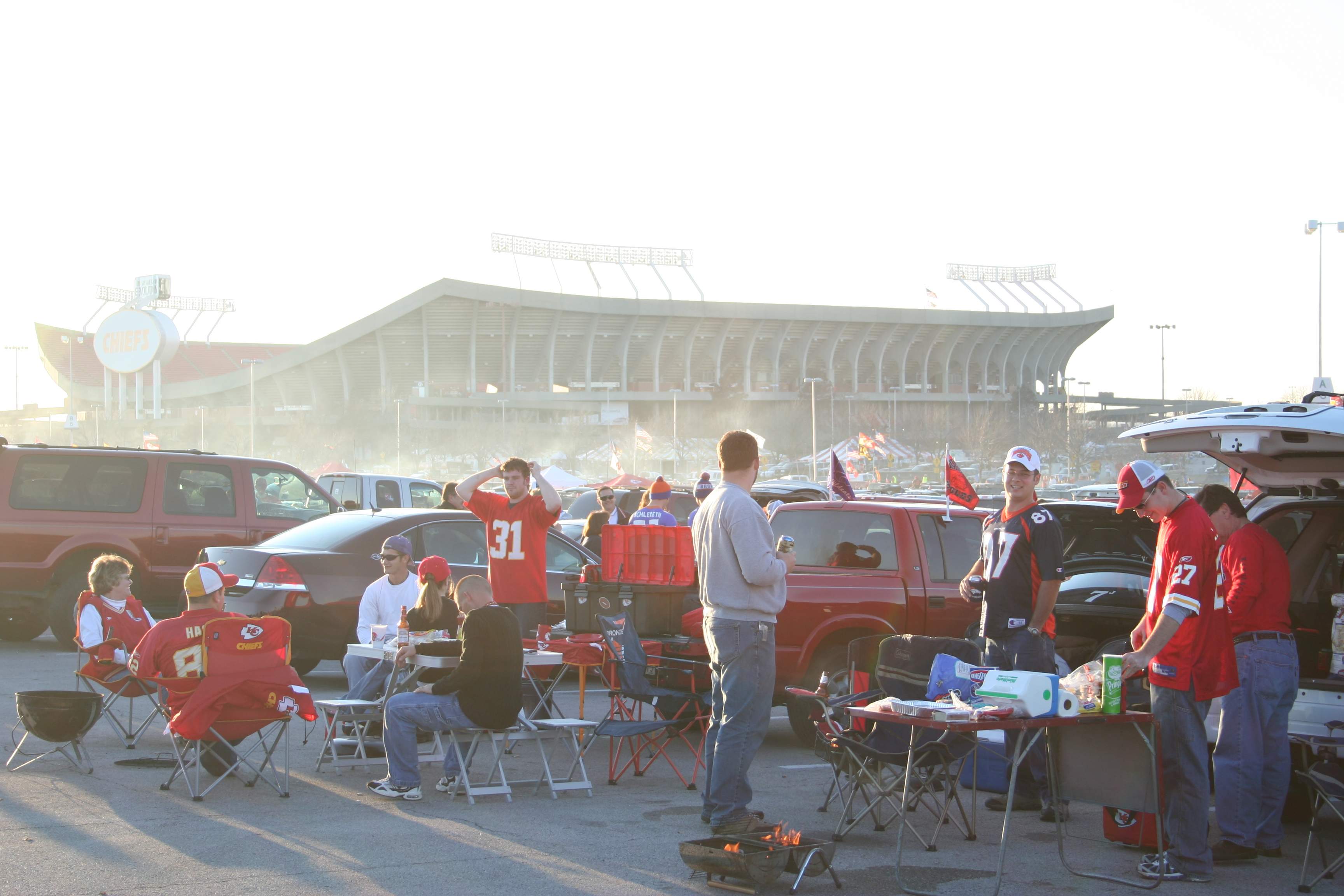 Tailgating. Everyone tailgates in college and pro football – no one does it better than the Chiefs fans at Arrowhead!