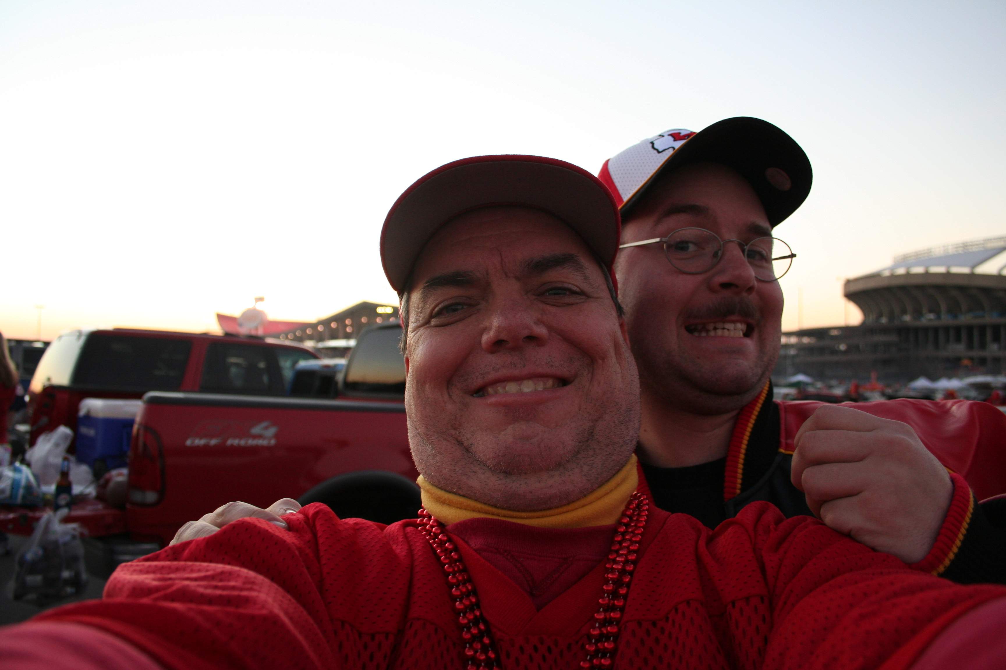 Here are some pictures from the November 23, 2006 game at Arrowhead Stadium in Kansas City. It was Thanksgiving Night, and the first Thursday night game in NFL history, a divisional rivalry game between my beloved Chiefs and the Denver Broncos. (The Chiefs won, 19-10!) We were in the St. Louis area visiting my son for the holiday. (He was stationed at Scott AFB at the time.) My son and The Long Suffering Wife, along with my daughters, conspired to surprise me with tickets to the game instead of the traditional Thanksgiving dinner.