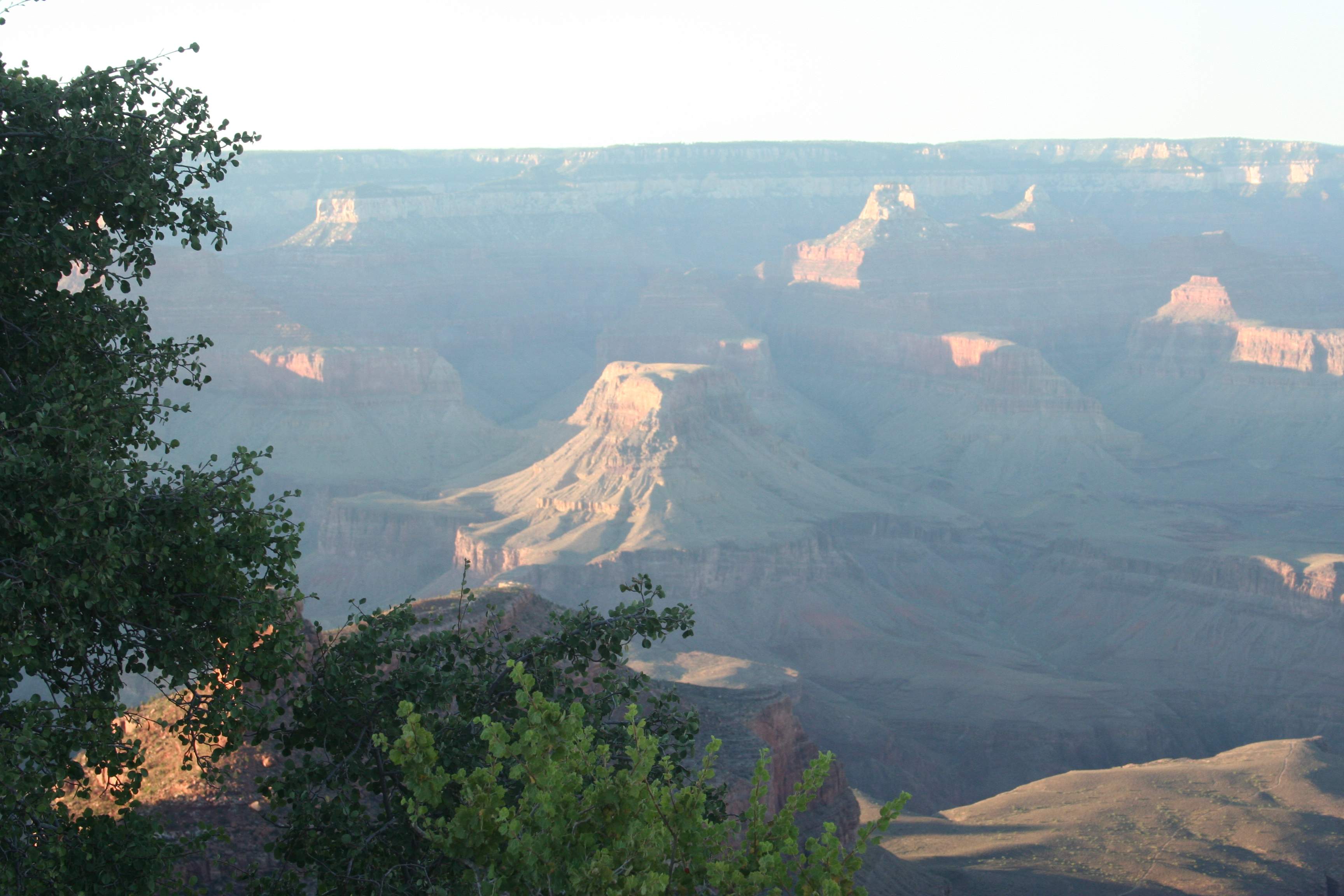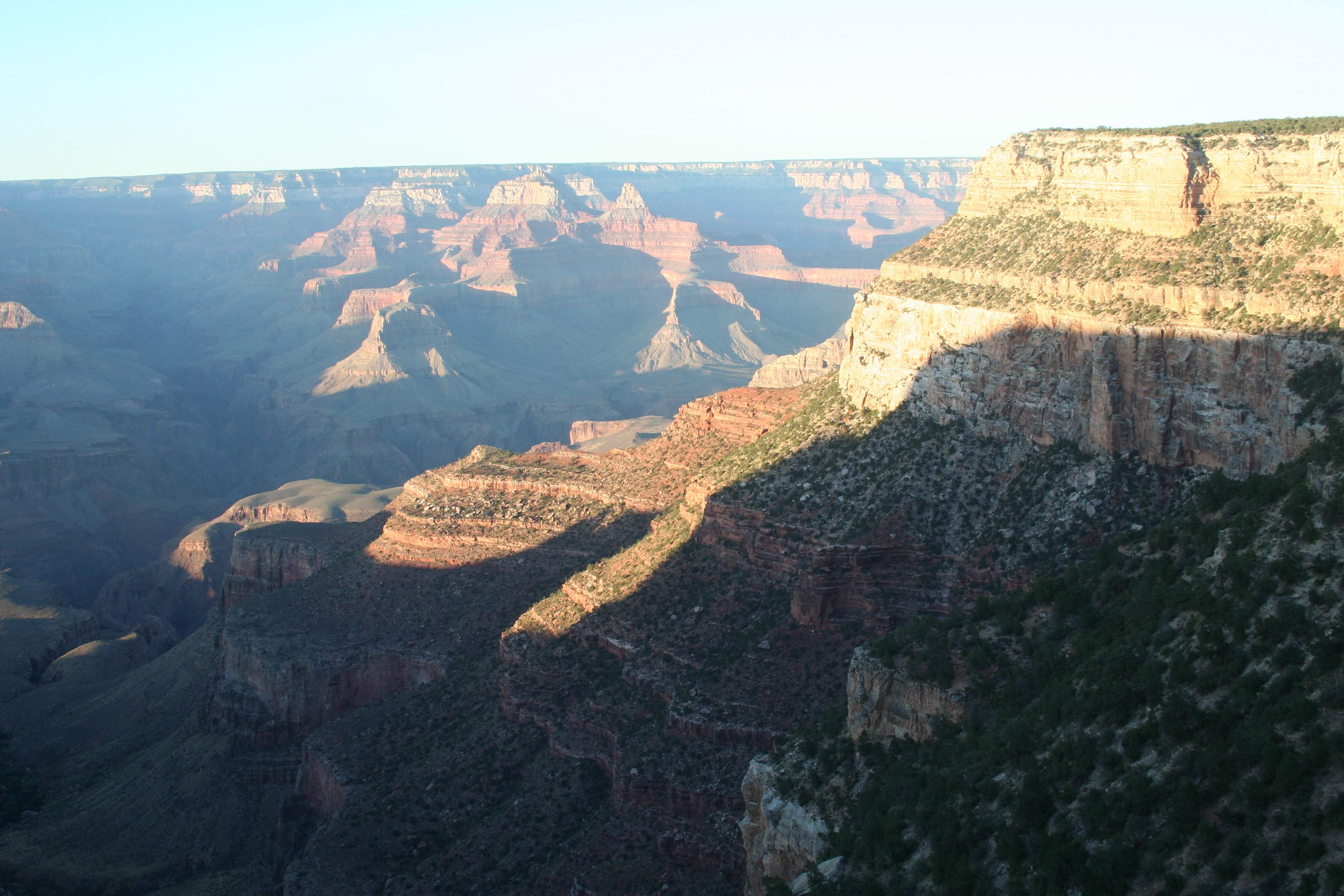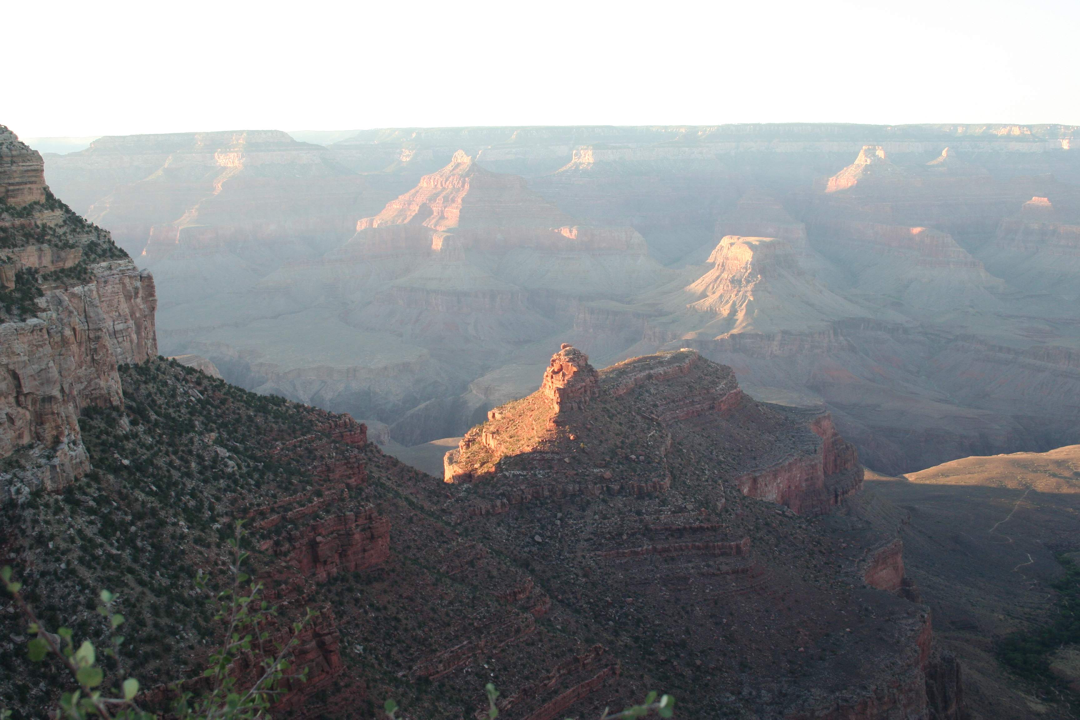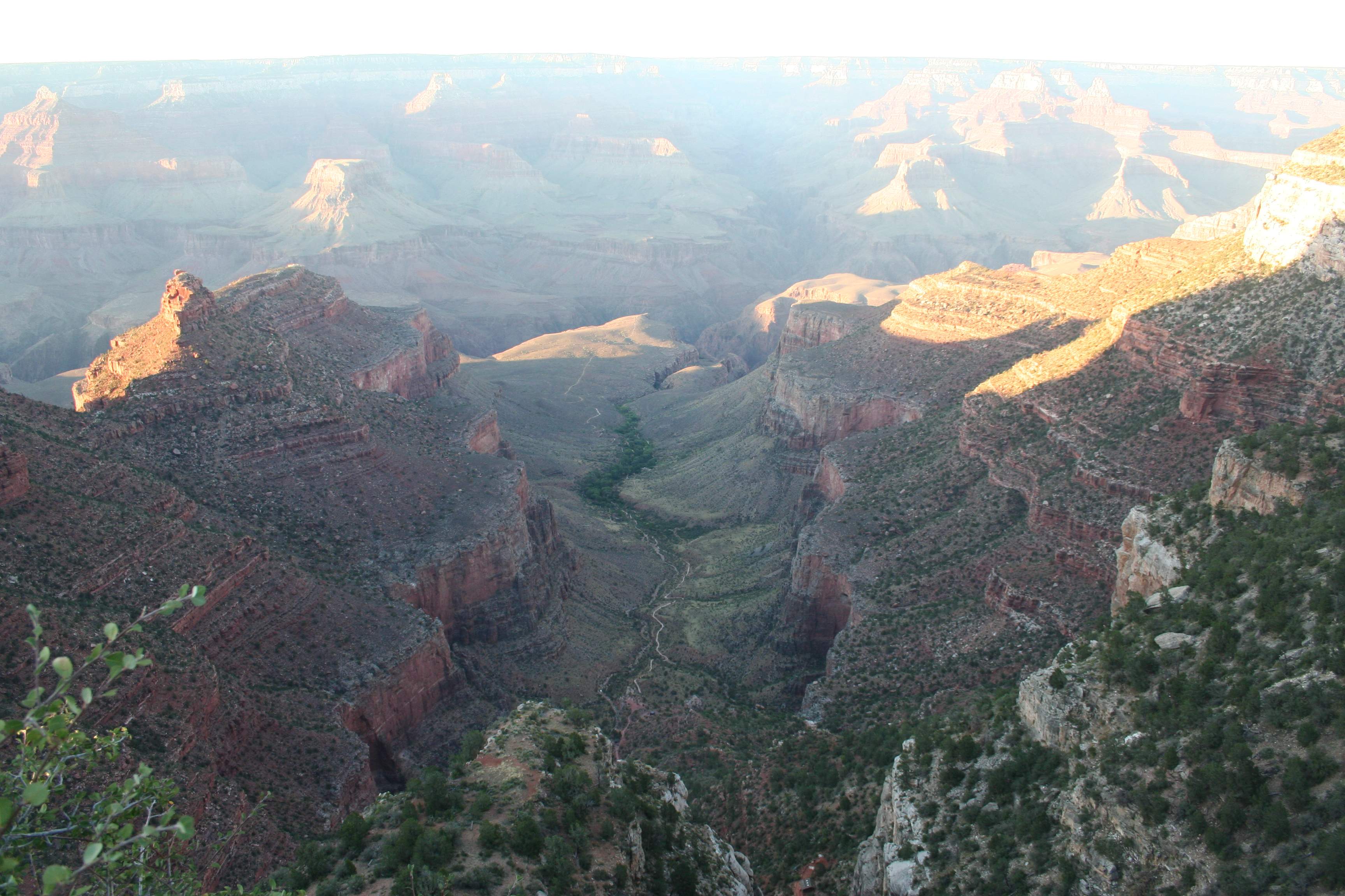 Here’s that lower plateau and canyon with the Bright Angel Trail crossing it, now deep in shadow.