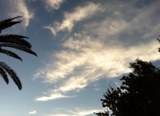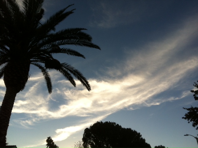 When I went out with the dog just before the Long Suffering Wife came home, there were a few high, wispy clouds floating by, right as dusk started to set in. As we got further and further past sunset they started to turn pink and salmon. OK, so it wasn’t one of those “Oh, My God! My Brain Is Going To Explode This Is So Beautiful!” sunsets from Bali or Hawaii, but for Los Angeles it much less suckage than normal.