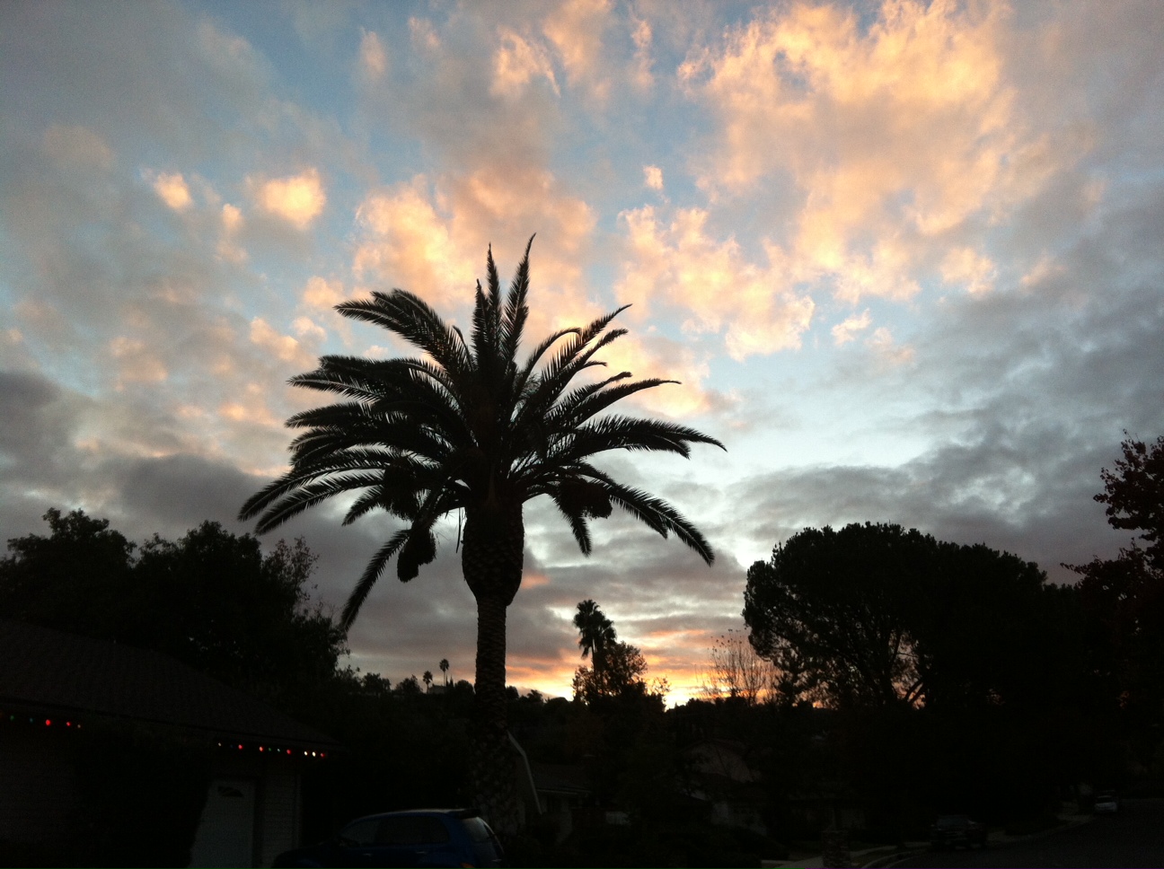 We’re going to have to make a few adjustments this year. The tree that was on the west side of the driveway is gone, so the lights that normally went there will have to find a new home. The huge palm tree you see here used to be much bushier, thicker, and overgrown. We would put twin spirals of red and white lights around it to make it look like a candy cane. (Sorta.) Now that it’s been trimmed and severely cleaned up, that may or may not work. No worries, we’ll figure out something.