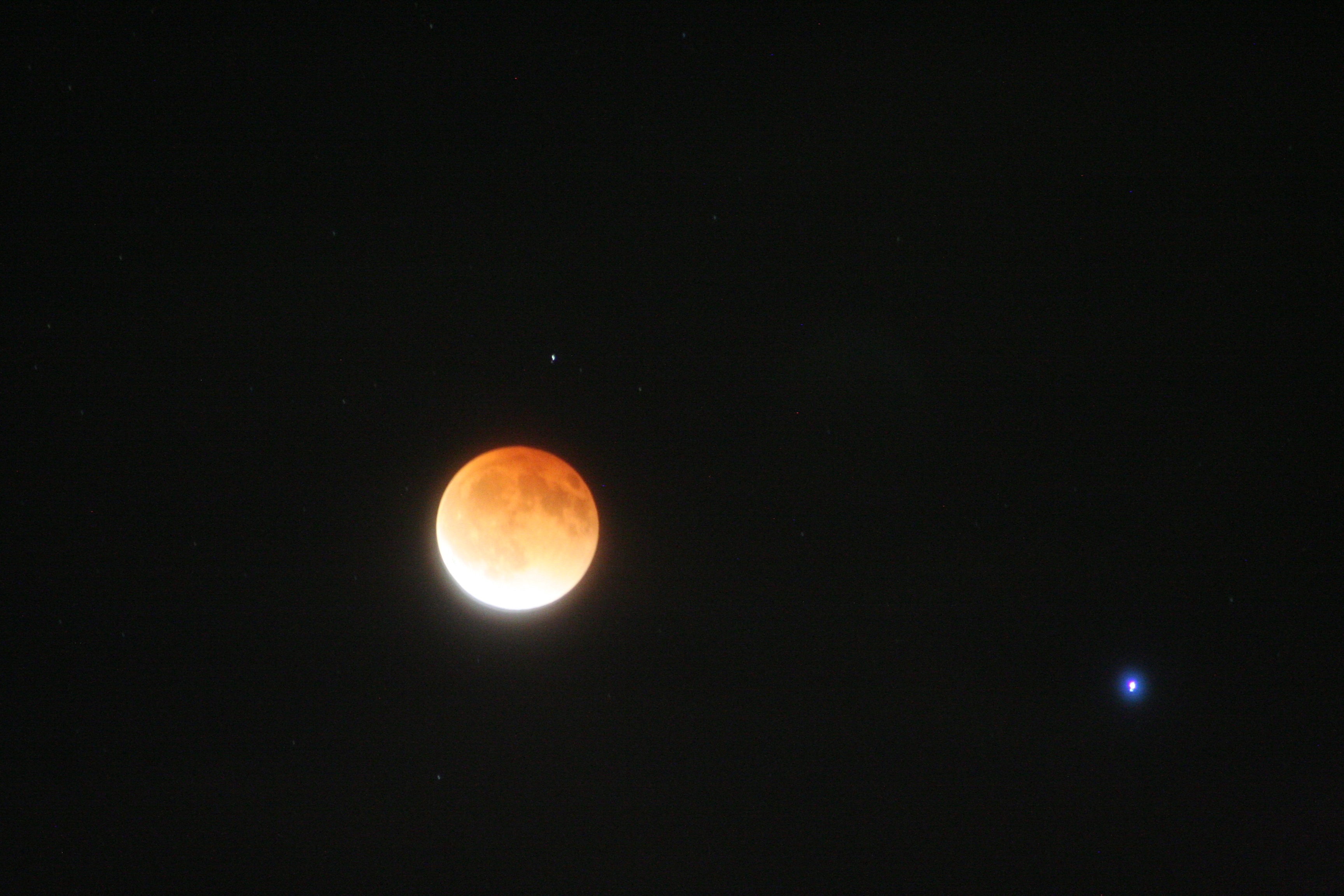 I had mentioned in the last couple of days that Mars would also be visible not too far from the moon. Even with the telephoto lens, pulling it back to the 75mm length let me capture the eclipsed moon and Spica at the bottom and Mars in the upper right.