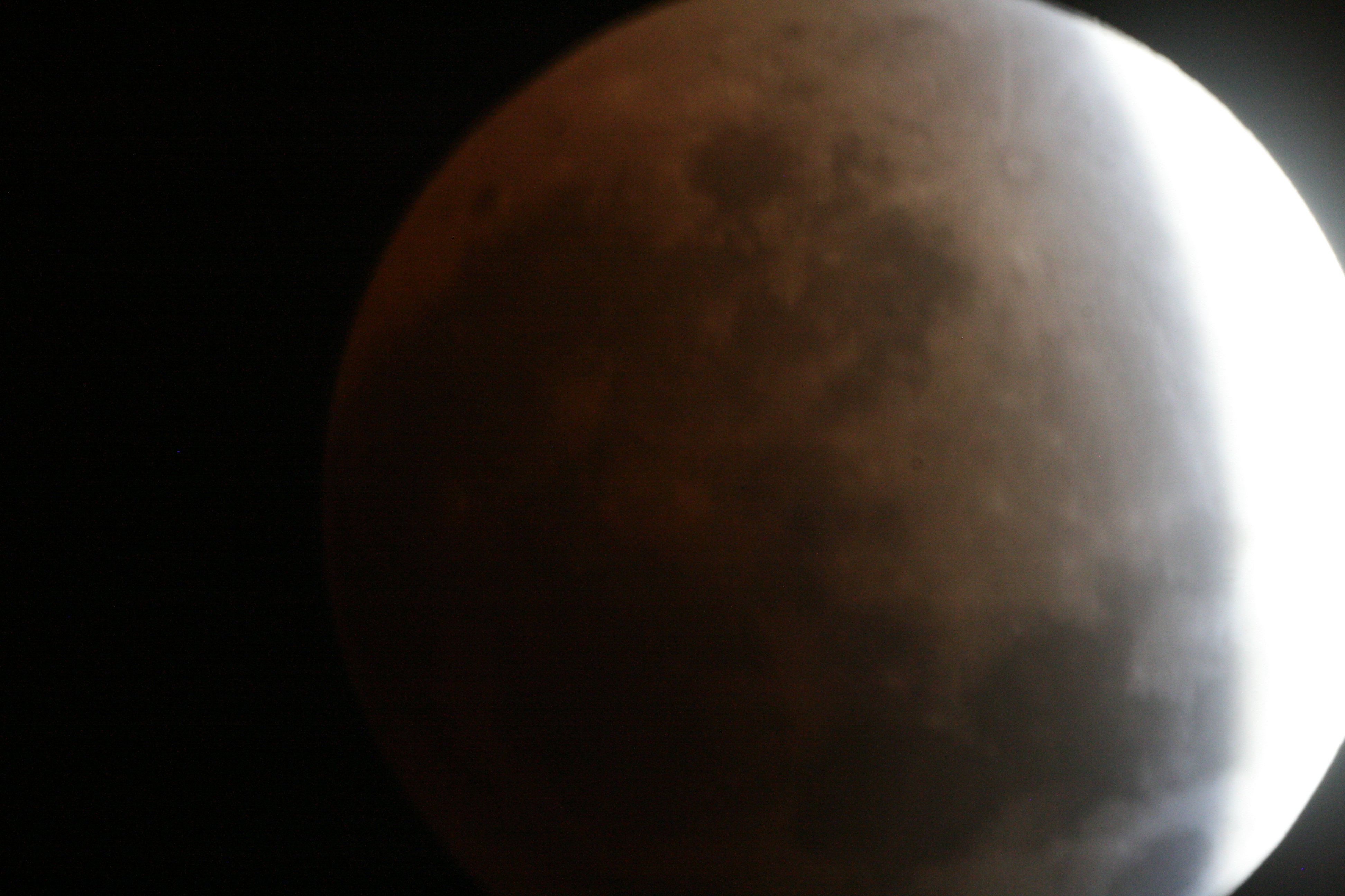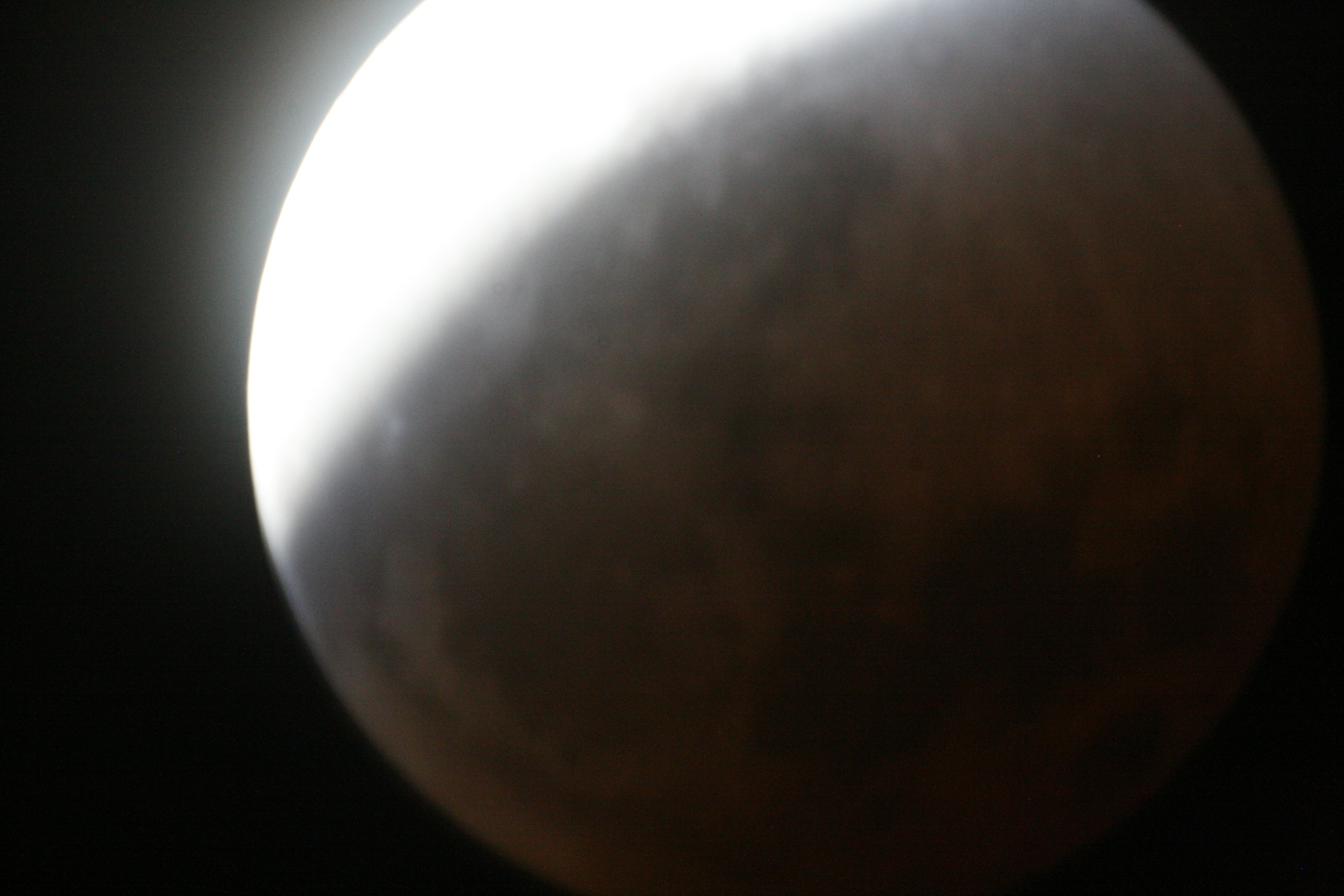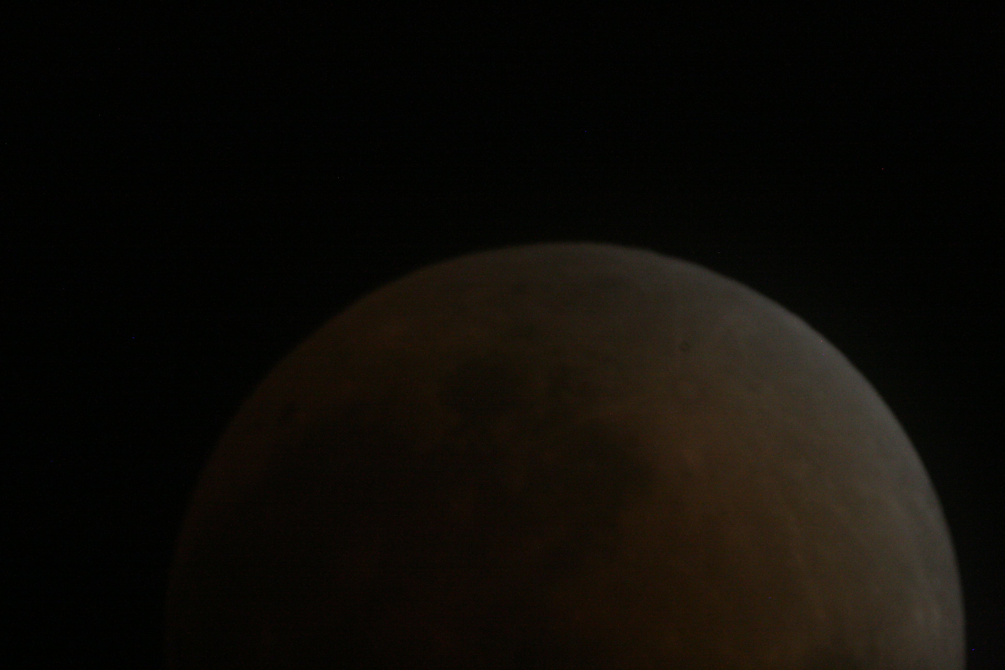 1/400 second. By this time, to the eye, the shadowed part of the moon was clearly outlined and a dark, copper red. Through the big telescope and on these pictures, there was no color to be seen. Until…