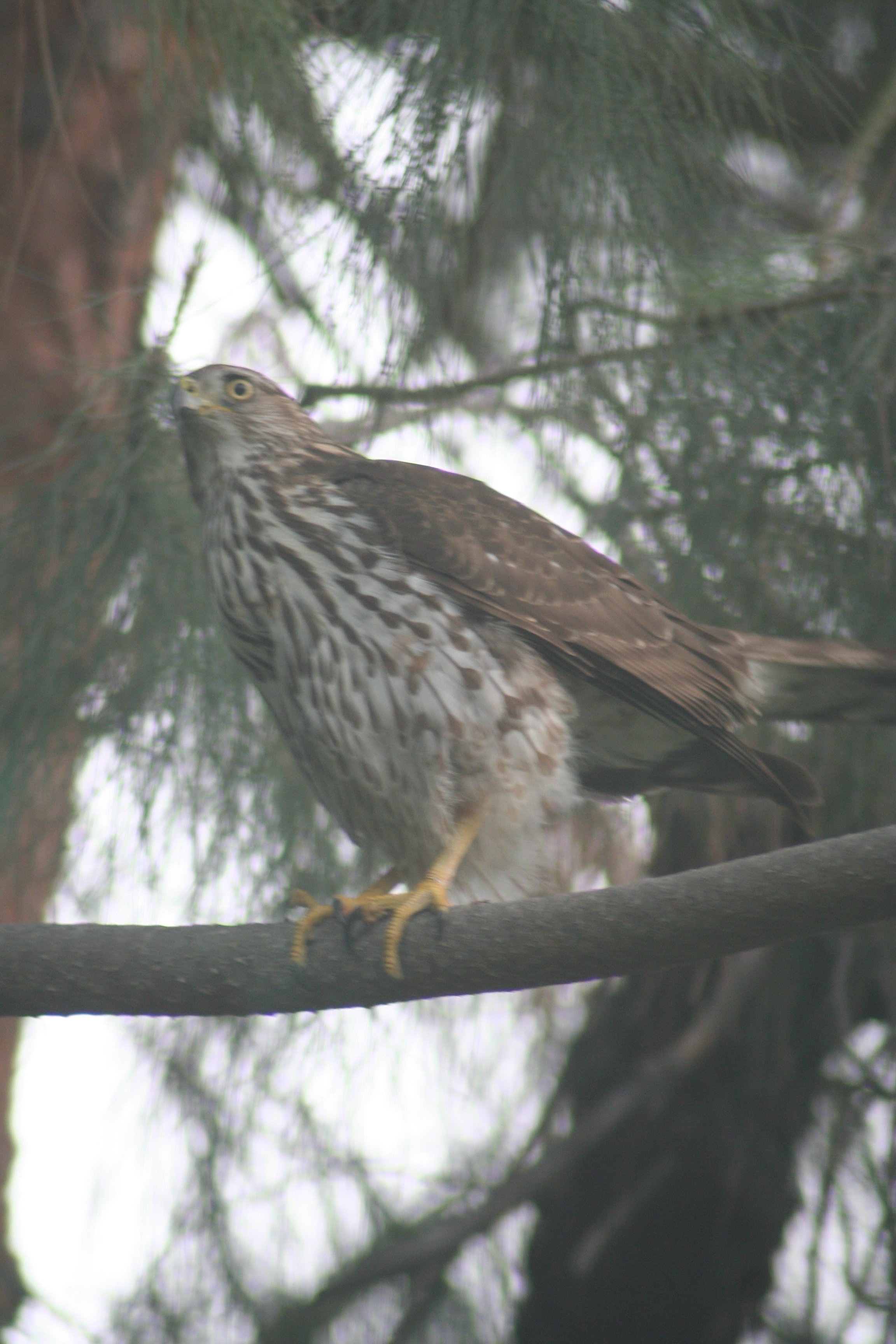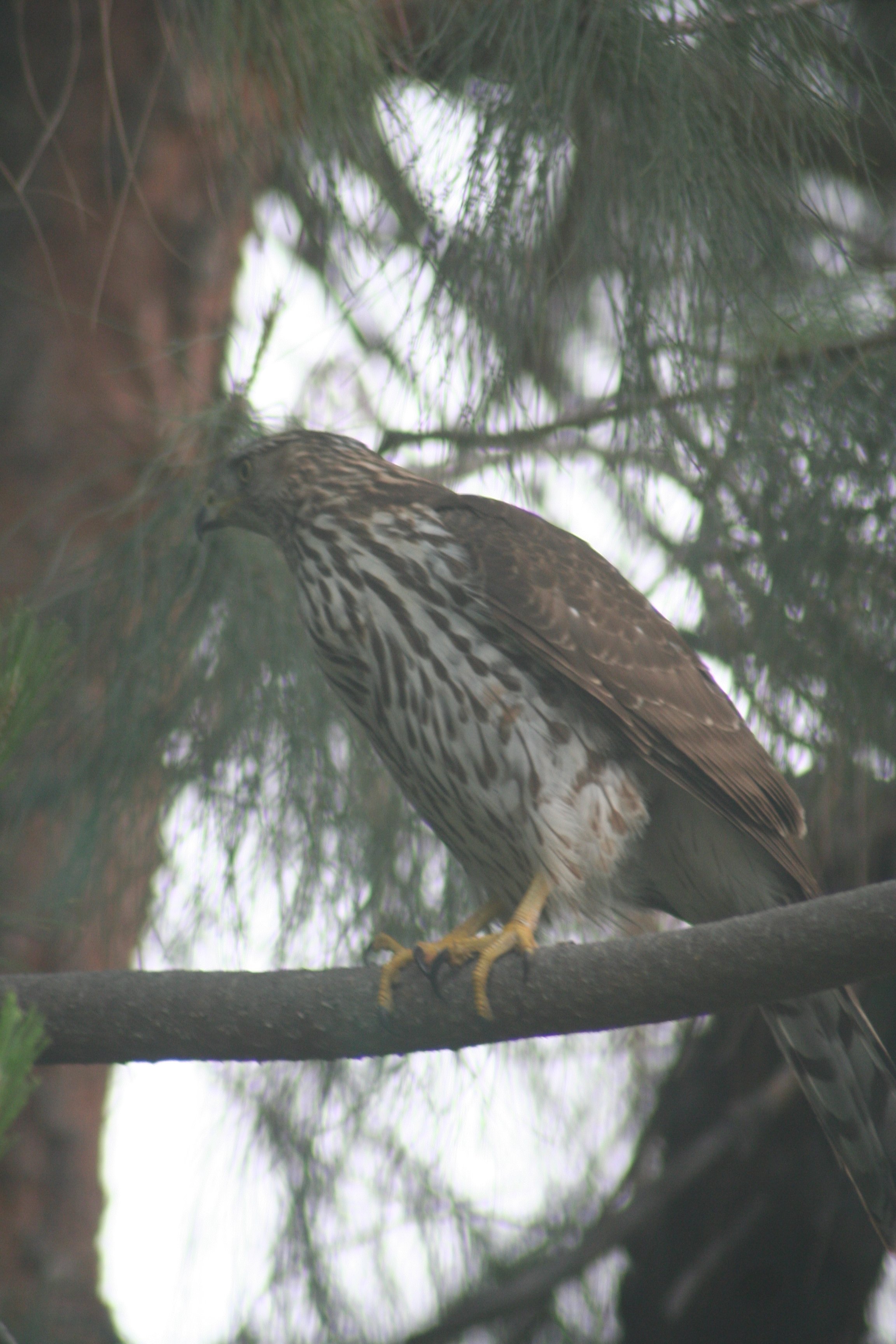 But this afternoon there was a gorgeous hawk out in the back yard, apparently chasing after squirrels for dinner. This is a good thing, since the squirrels are evil little vermin and hawks and other raptors are really cool.