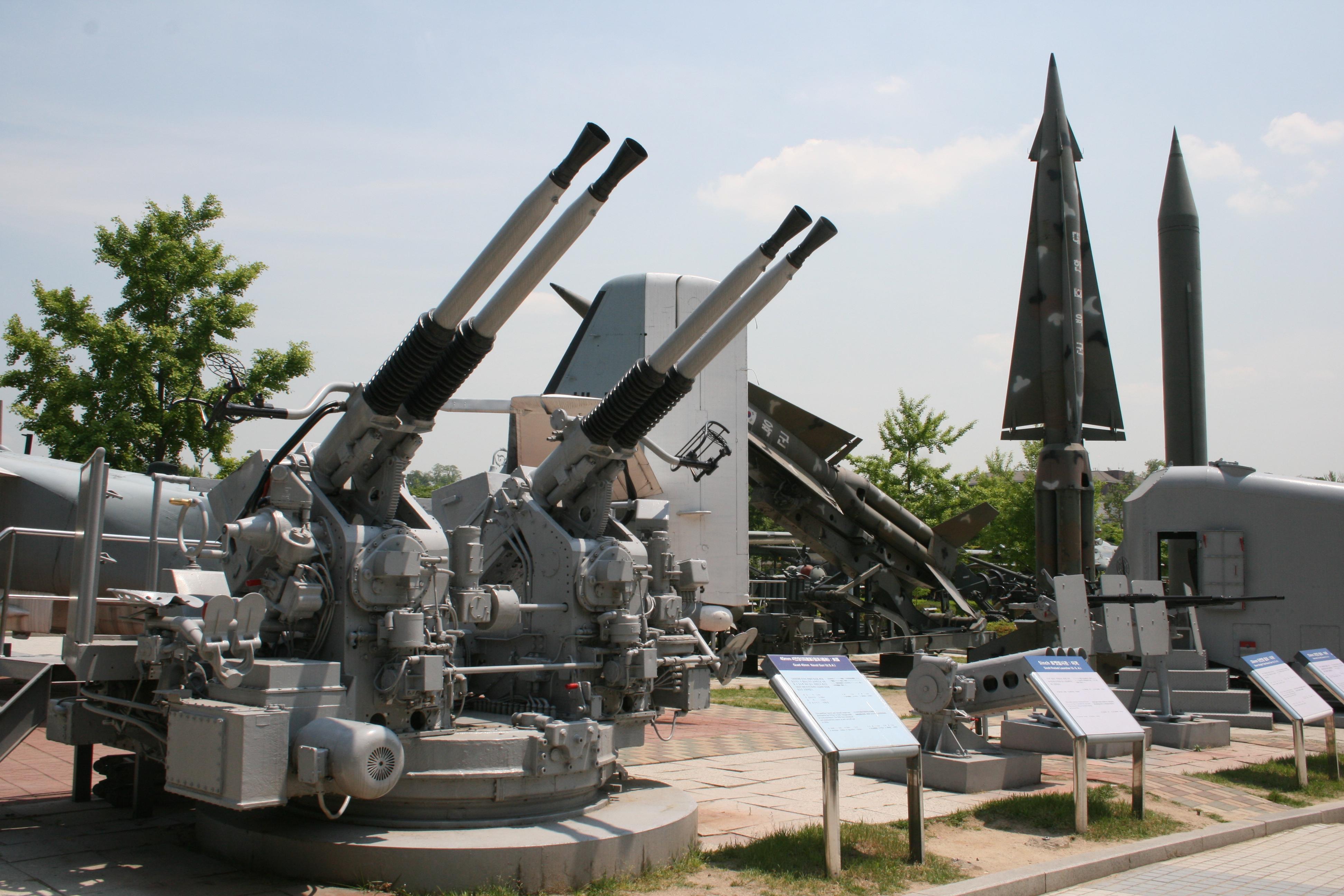 Anti-aircraft guns and guided missiles to shoot down enemy aircraft, particularly bombers.