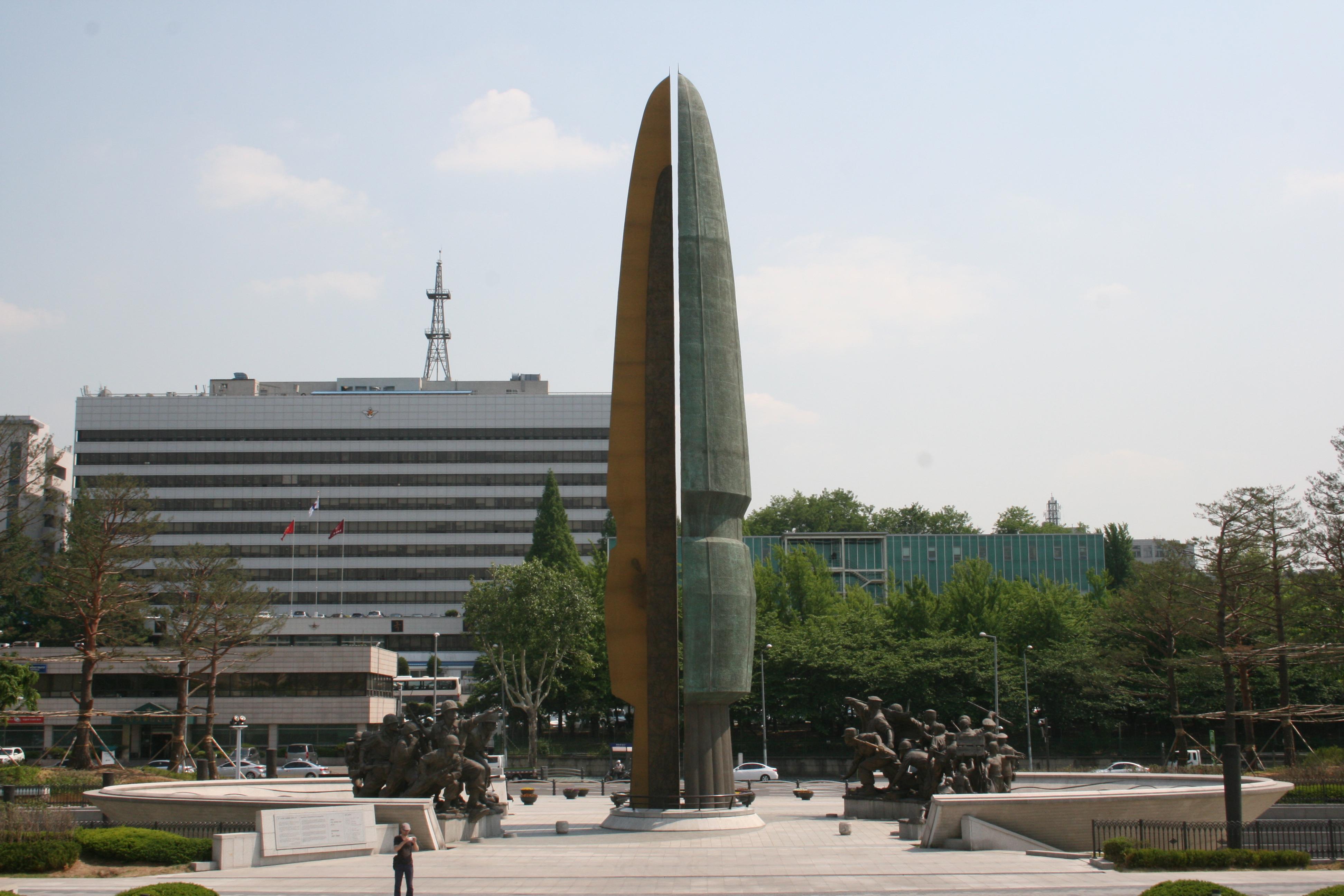The focal point of the plaza is a large sculpture dedicated to those who fought and died in the Korean War. (The large white office building across the street is the South Korean Ministry of National Defense. Probably not completely an accident that the people trying to prevent the next war get to look out on the memorials to the last one.)