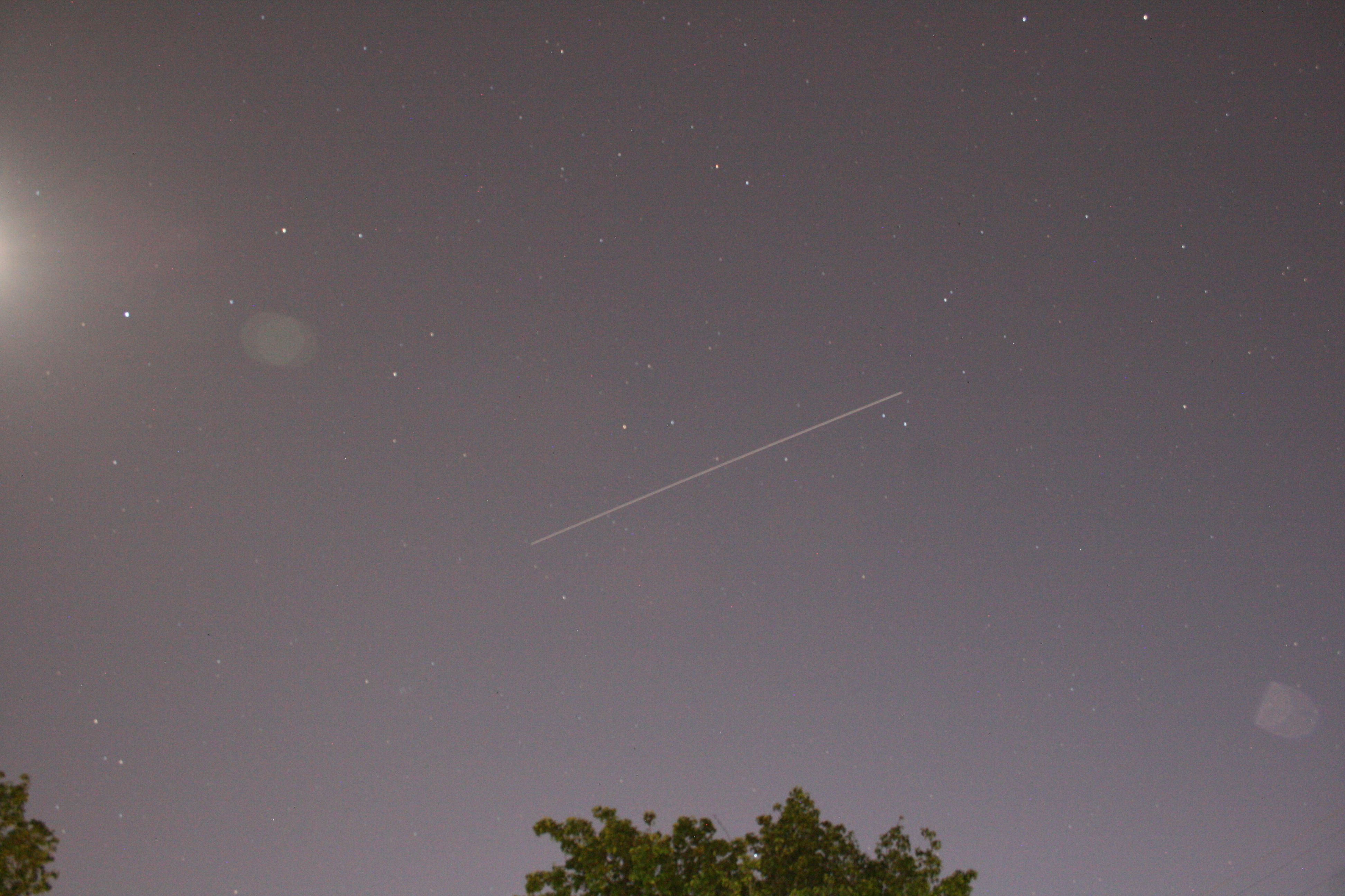 Following my own advice, I went out and saw all of the evening passes. (I don’t do pre-dawn if there’s any way to avoid it, sorry.) As usual, I had my camera, and this time had a bit more first-hand experience from last Sunday’s ISS pass and the pictures that I got then.