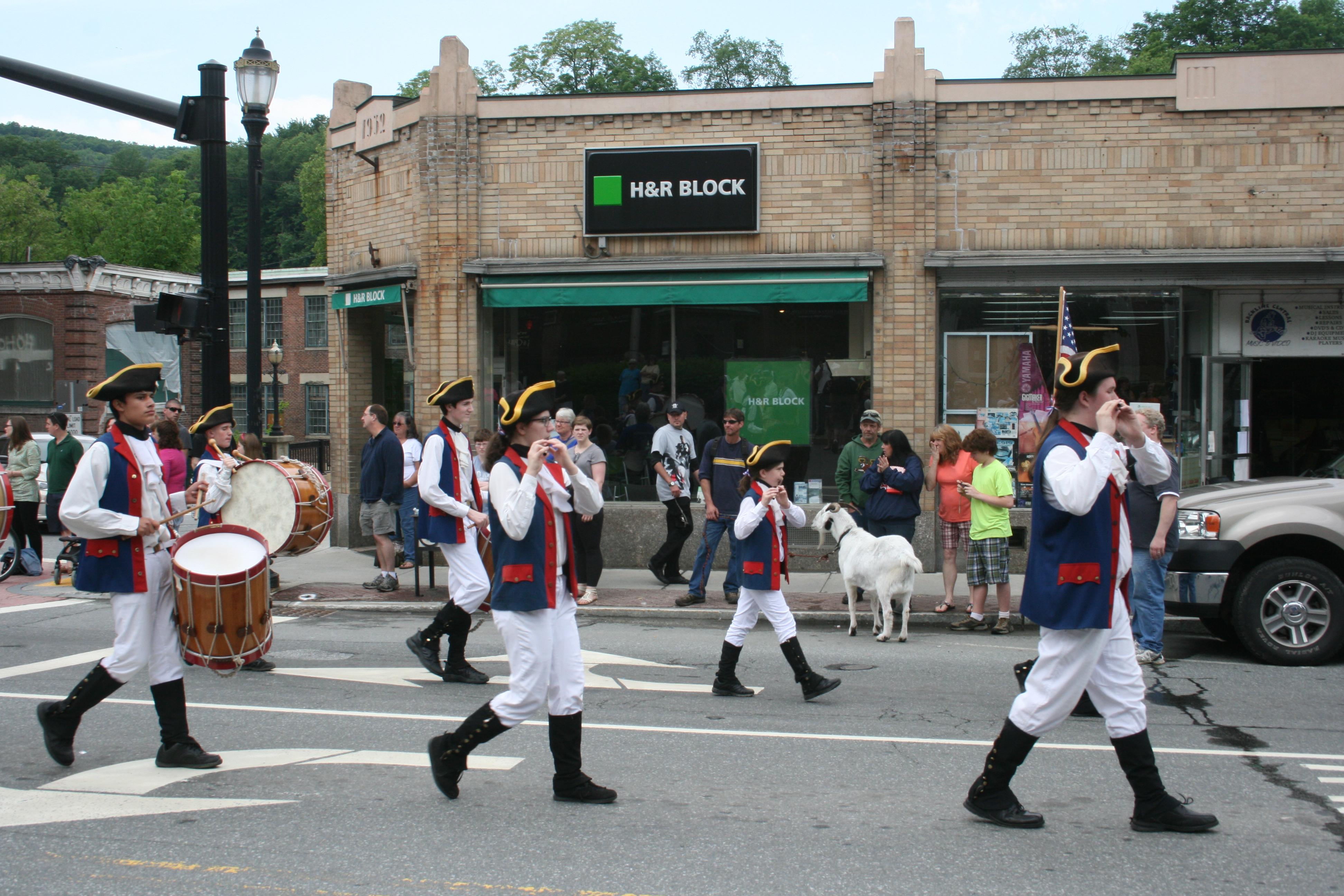 Some playing fife and drums, some more exotic instruments.