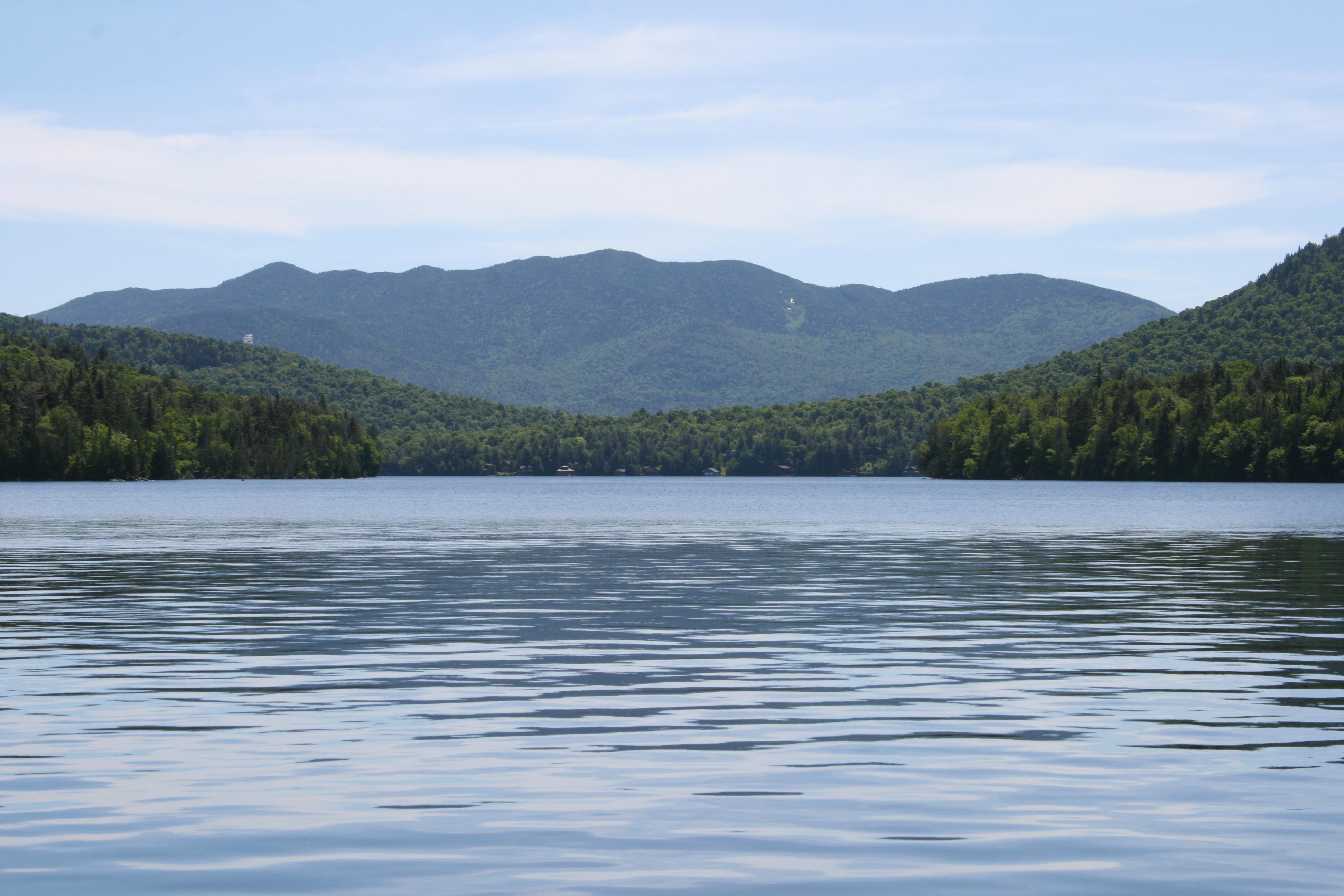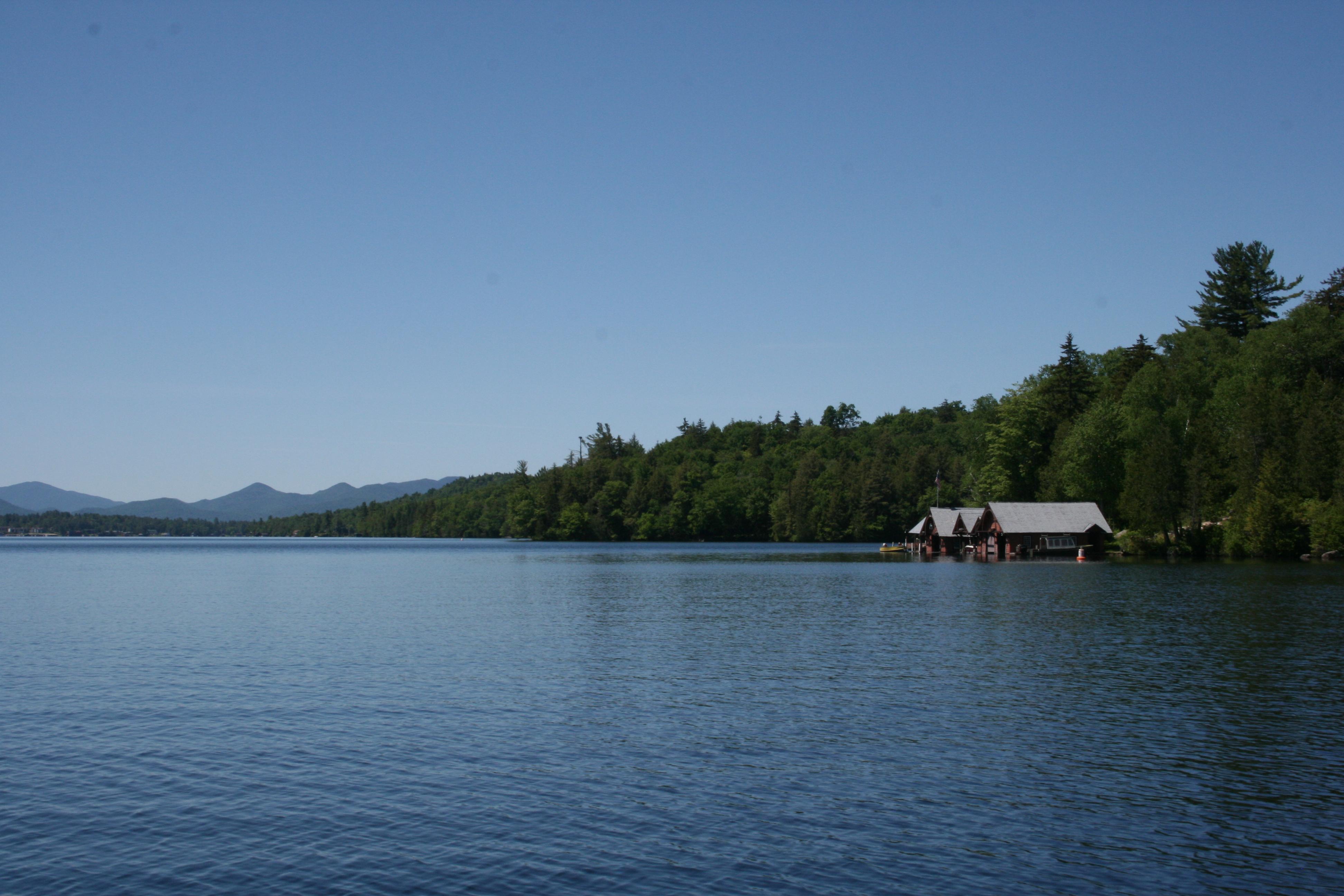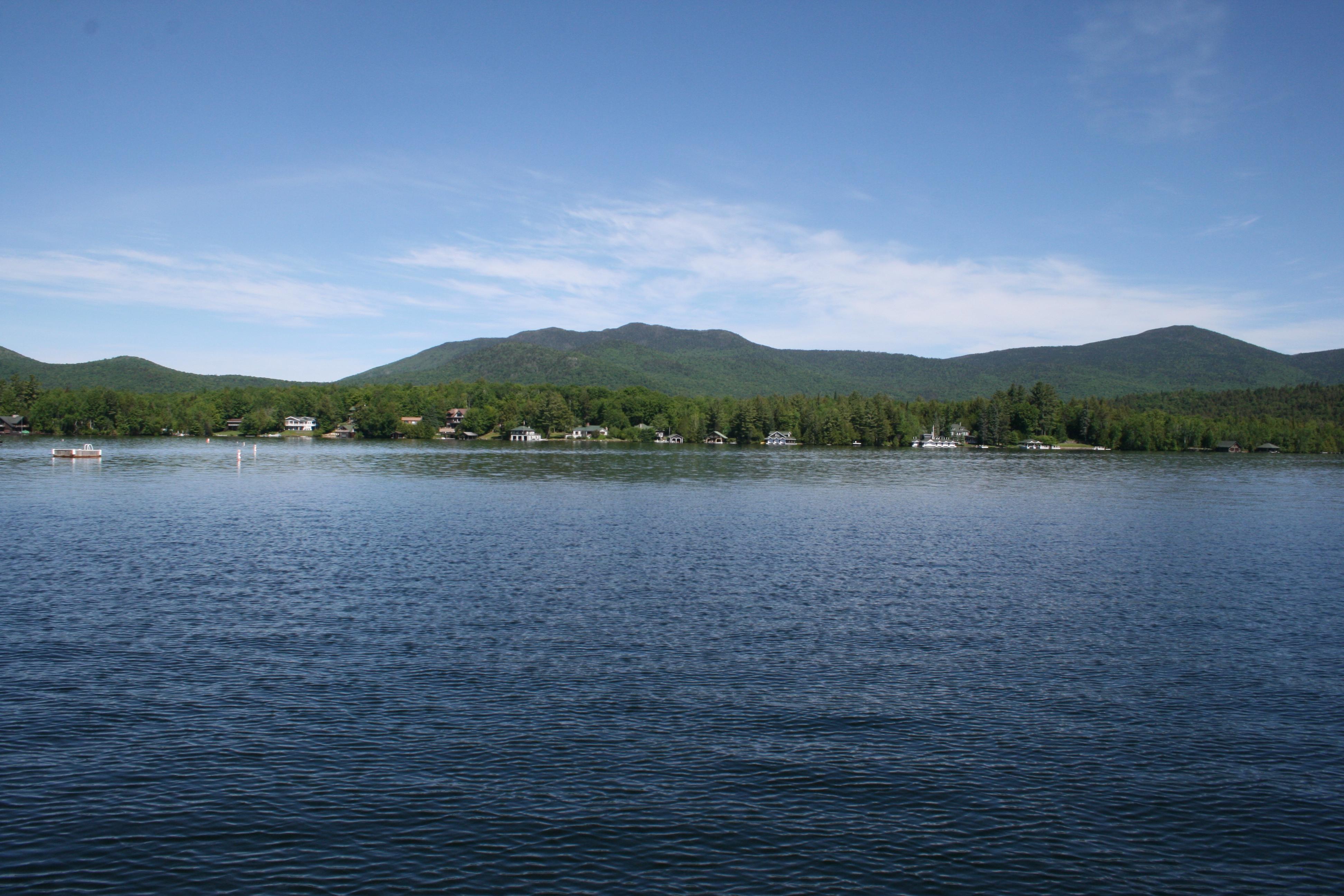 There are three islands on the lake, and it stretches to the base of Whiteface Mountain.