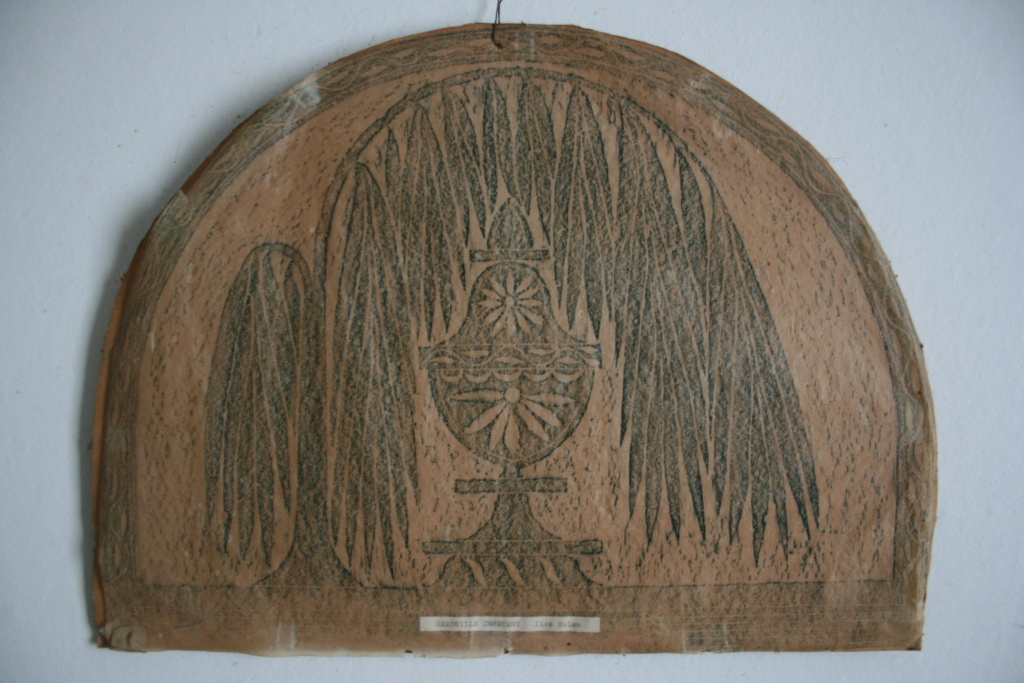 This rubbing is found inside the eastern stairwell. The gravestone can be seen below.