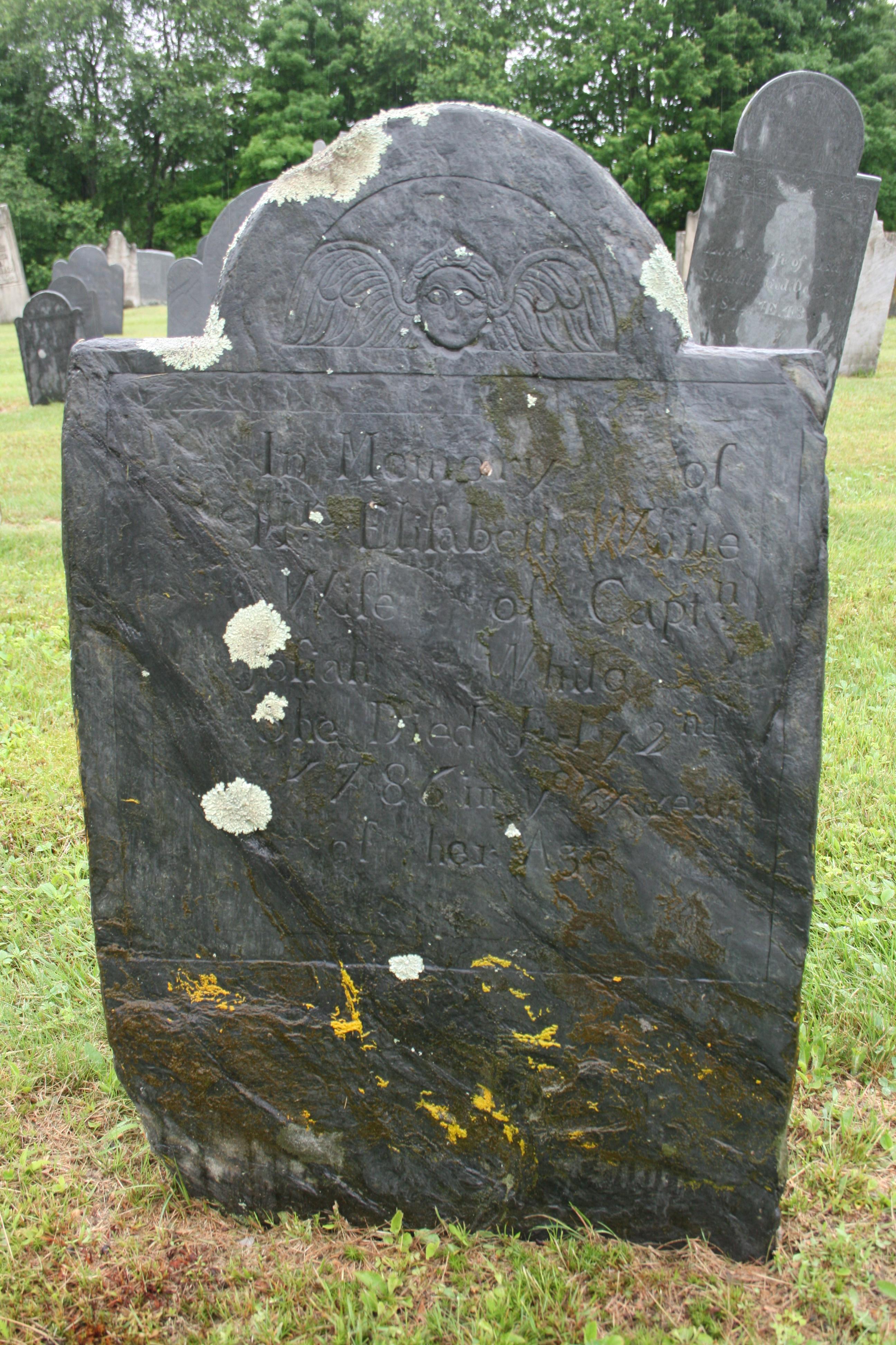 “In Memory of Mrs Elifabeth White Wife of Captn Jonah White She Died July 2nd 1786 in the 61 year of her Age”