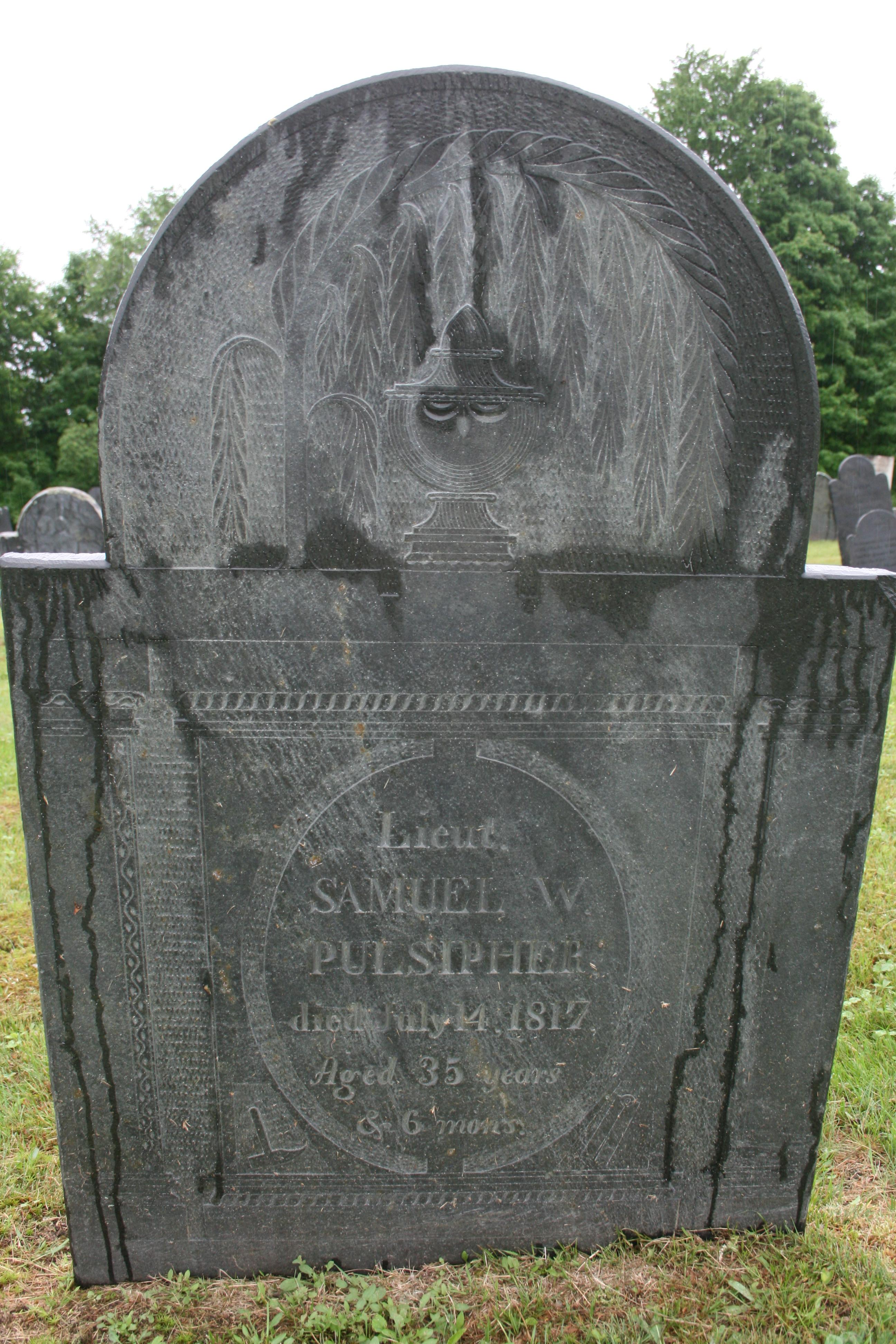 “Lieut. SAMUEL W PULSIPHER died July 14, 1817 Aged 35 years & 6 mons”