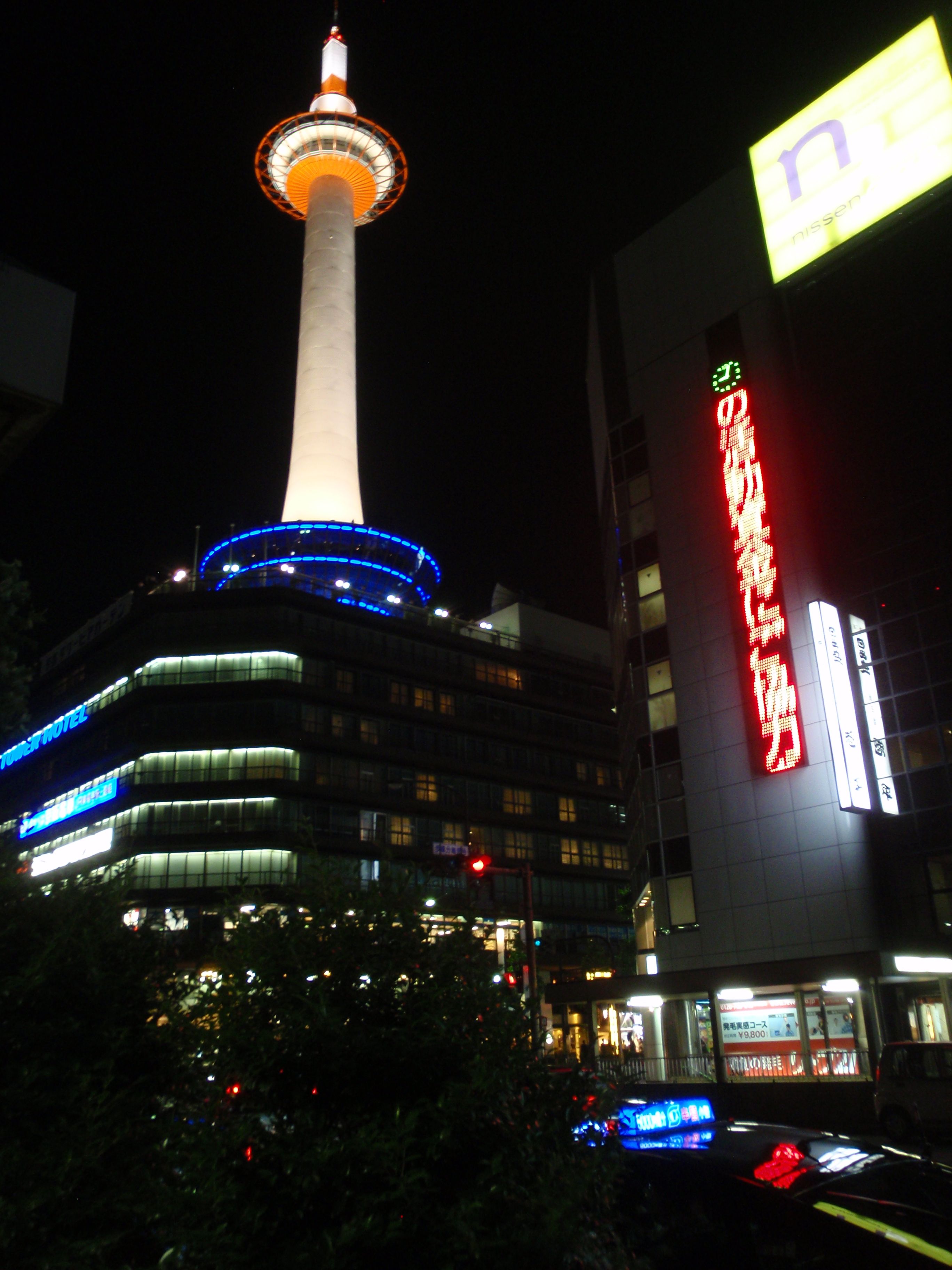 Following dinner where I finally met up with my daughter, I got to prowl the area around Kyoto Station. (My hotel was across the street — nice place, I liked it.) At night, Kyoto is lit up like a Christmas tree, as were all of the other Asian cities I saw.