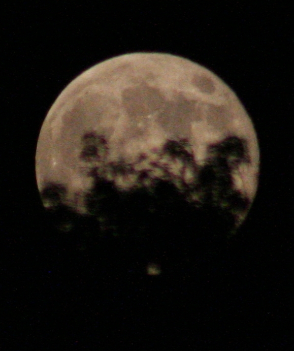 The first two pictures above were cropped to show just the moon — this is what a full frame looks like using a 300mm zoom lens. At this point the moon had climbed above the trees and it starts looking a touch less “super,” just big and bright and full.