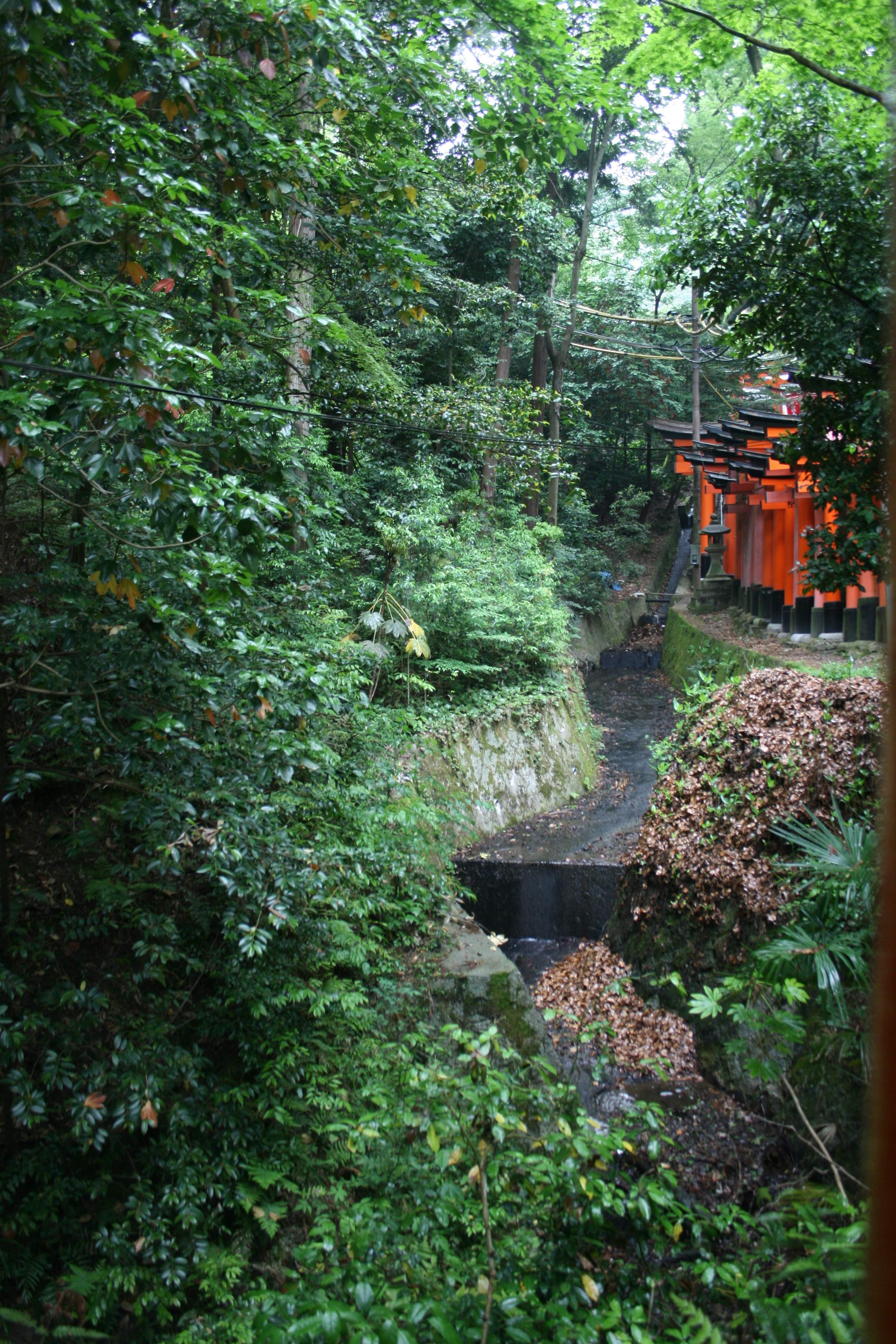Climbing up from the Fushimi Inari temples, I was enraptured by the vermilion torii gates lining the maze-like paths. I explored a shrine on a side path, then started walking up the mountain again.
