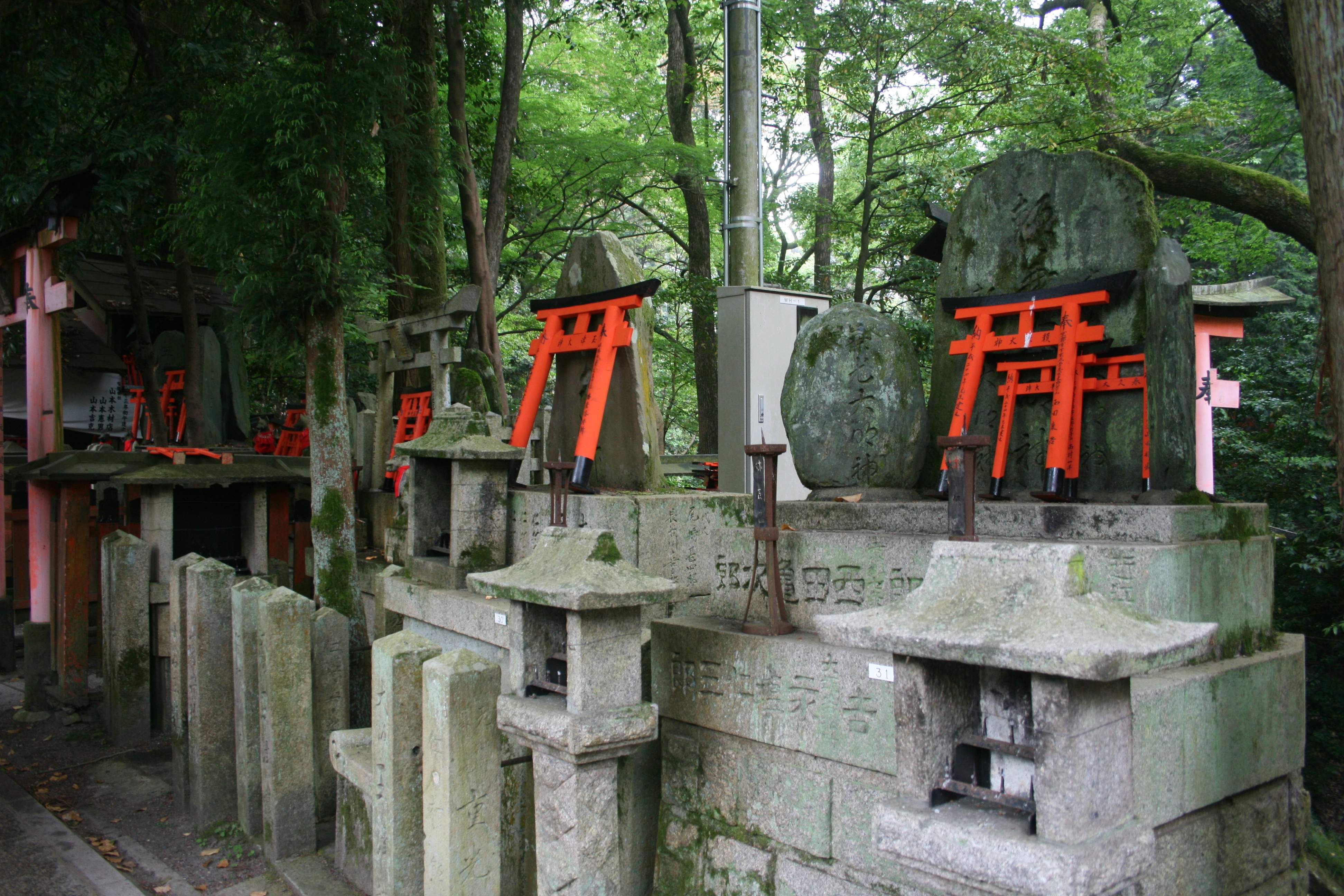IMG_0983 smallDitto for the fox statues, and one might guess that having a separate torii gate right in front of your family shrine is one of the biggest status symbols around.