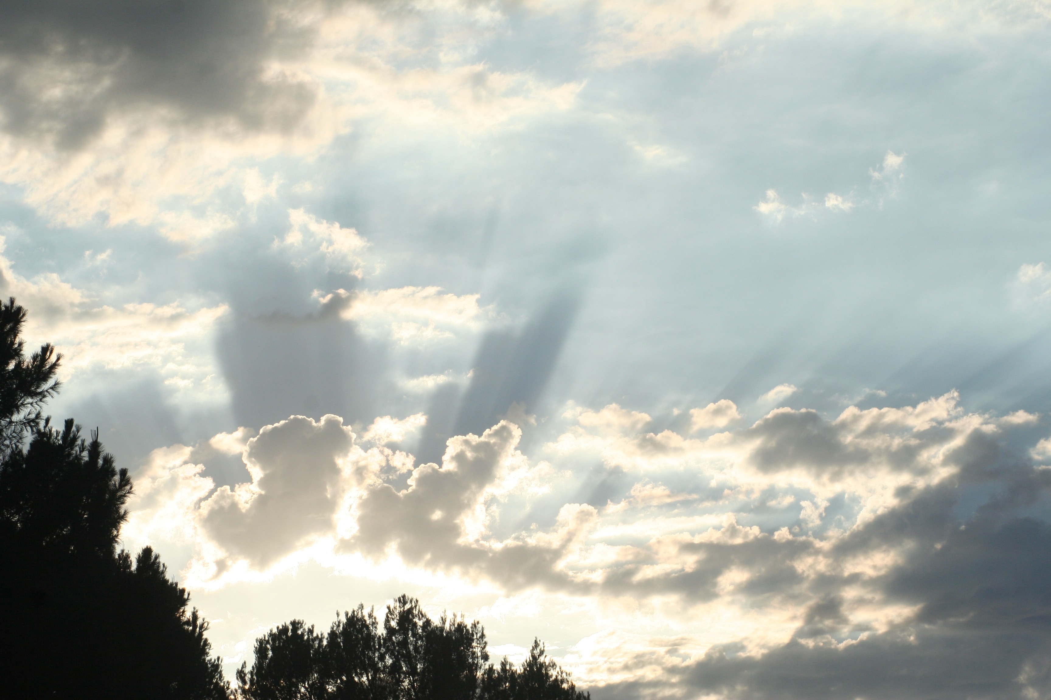 Crepuscular is a $5 word that describes rays of sunshine that appear when the sun shines through gaps in the clouds and the rays stand out against a background of darker clouds. They’re also known as “sun rays” or “Jacob’s Ladder.” I prefer the big word, although I probably can’t pronounce it without exposing myself as a poser.