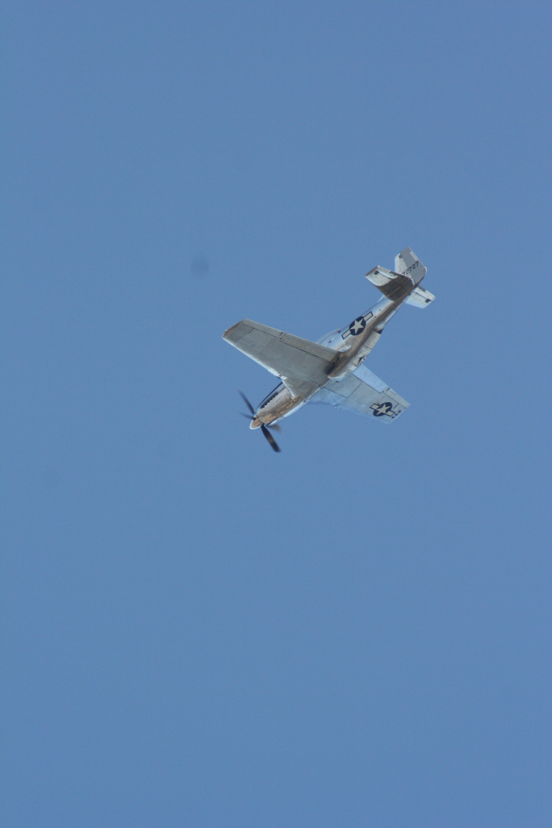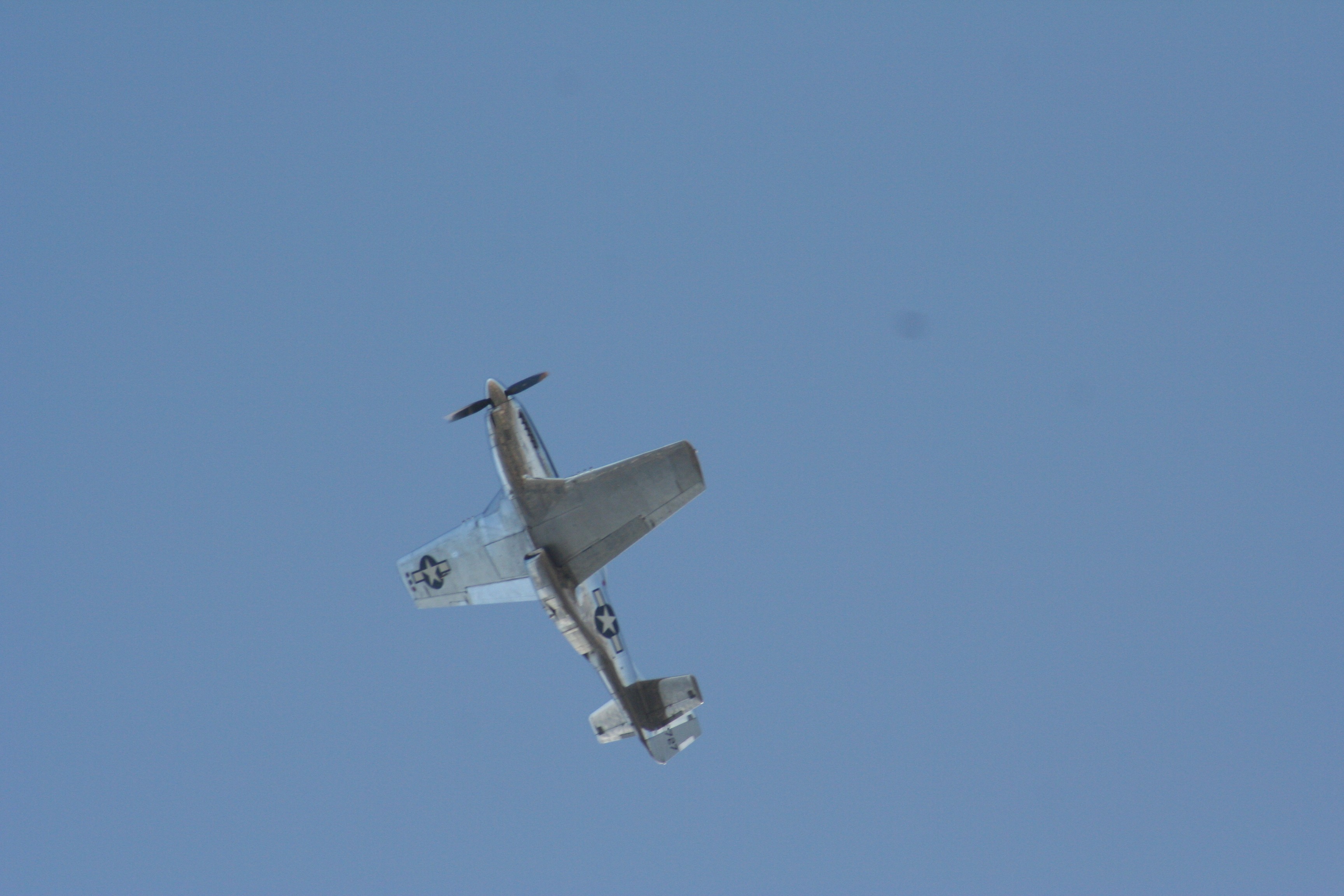 So here are a couple of pictures that I found that look like they’re from an air show, but they’re not. As much as I love going to air shows, these were actually taken in our back yard. A P-51 flew over our house unexpectedly one afternoon many moons ago while I was out taking pictures of the dogs. I don’t recognize the plane (it’s certainly not ours, as in, the one the SoCal CAF flies) but there aren’t a lot of them around to begin with, so it shouldn’t be hard to track down if I really wanted to.