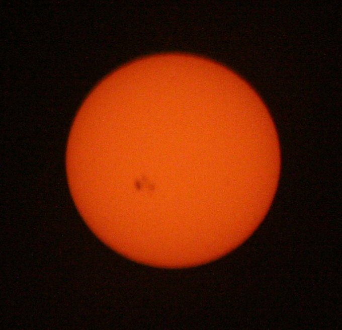 This thing is so big that it can clearly be seen with the naked eye IF YOU’RE BEING SAFE WHILE LOOKING. (You think there’s an underriding theme here, huh?) If you’ve got a solar filter (you can get cheap plastic/mylar ones for a dollar or two at many camera shops, or online, it’s easy to see. If you catch the sun just as it’s rising or setting and the atmosphere is cutting down its light to the point where it’s safe to look at, you should see it clearly.