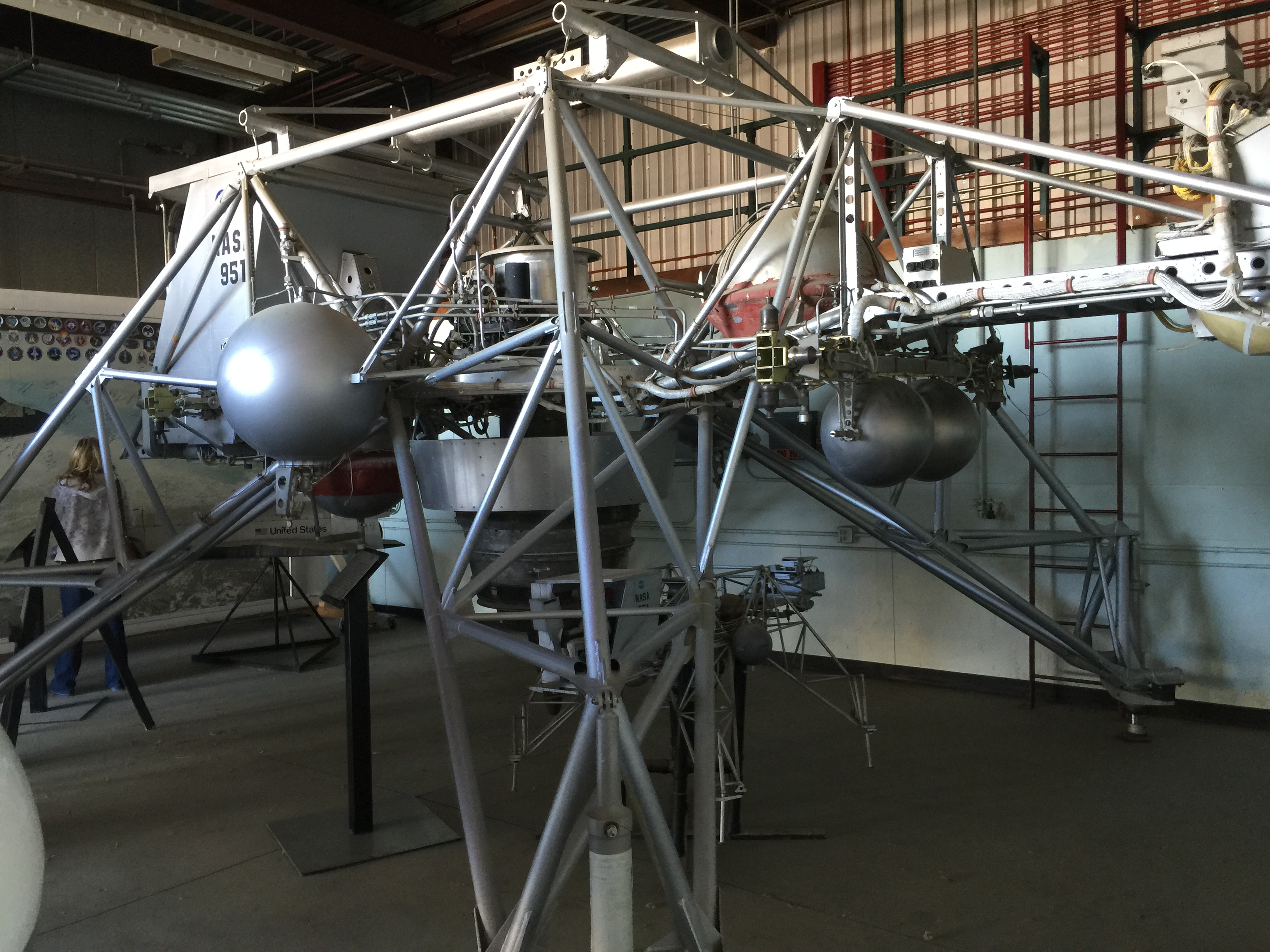 From the other side you can see several of the round fuel tanks that held the rocket propellant for the eight small rocket thrusters that moved it from side to side to control .