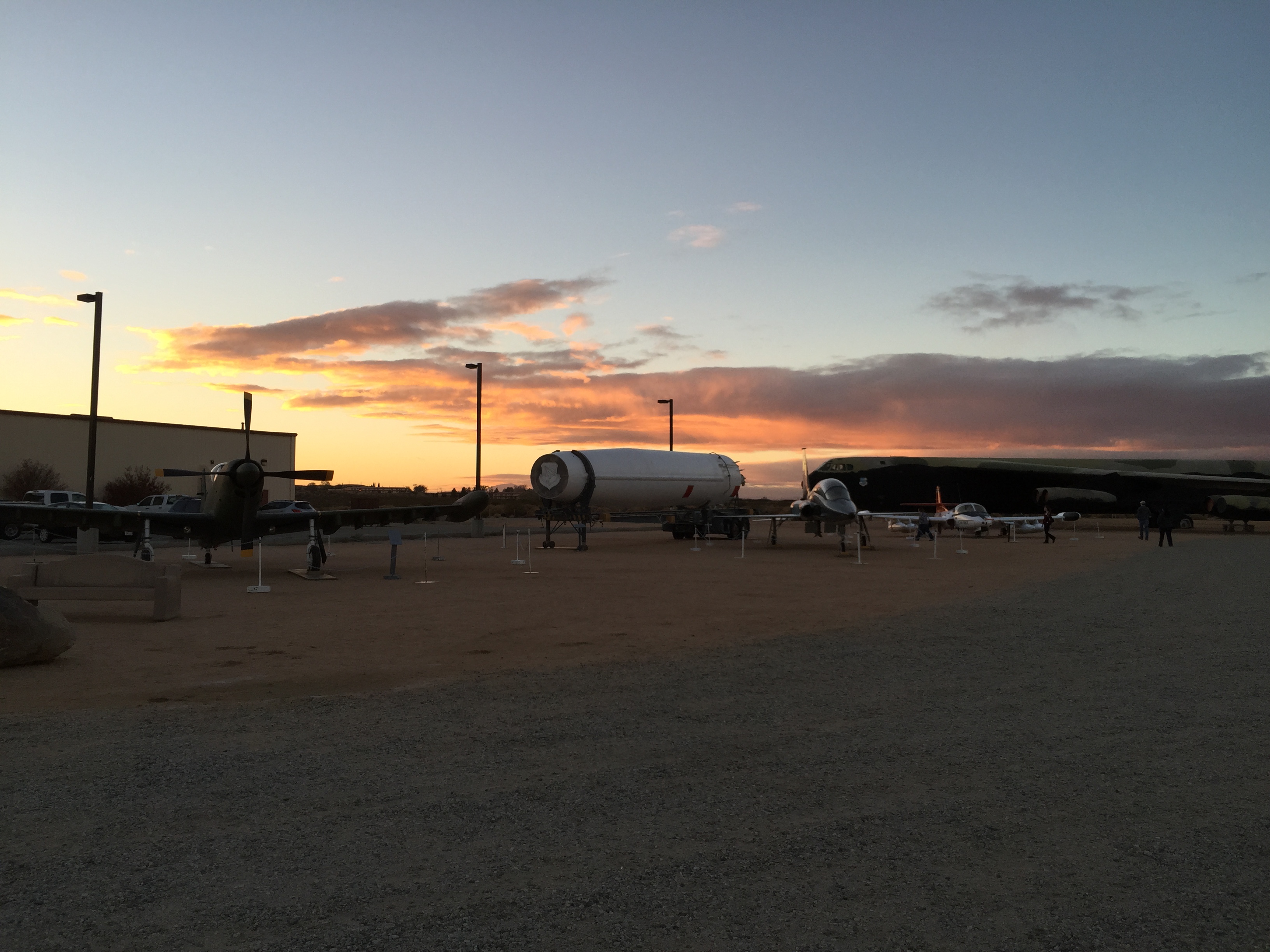 We were getting a great sunset over the museum and the planes and rockets. The B-52 “BUFF” that I shared later that night is on the far right in the distance.