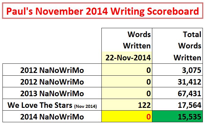 It’s now officially a rout. If this were a football game, it would be Reality 143, NaNoWriMo 17 going into the fourth quarter with no time outs left.