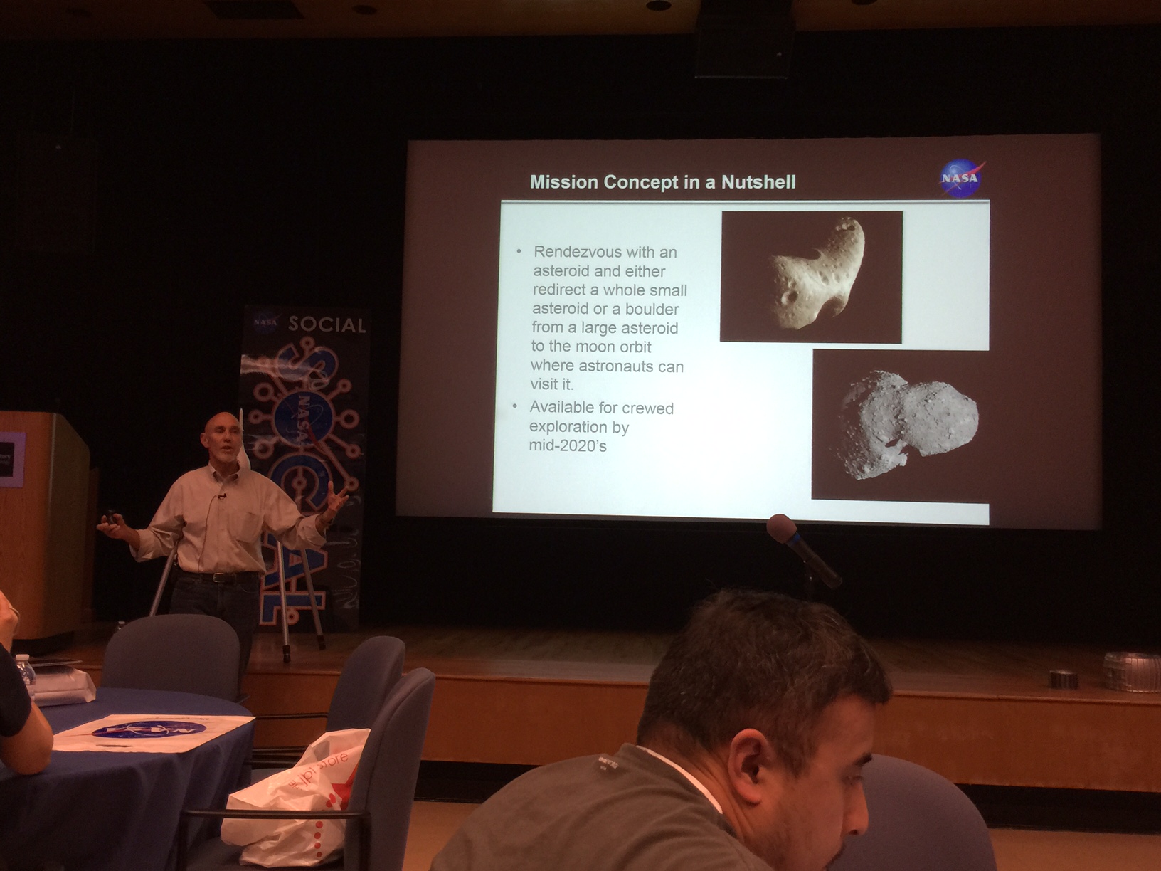 Brian Muirhead is JPL’s Chief Scientist. He spoke about NASA’s planning for a mission to use robots to go snare an asteroid, haul it into orbit around the moon, and then use Orion to take astronauts out to examine it and bring back samples.