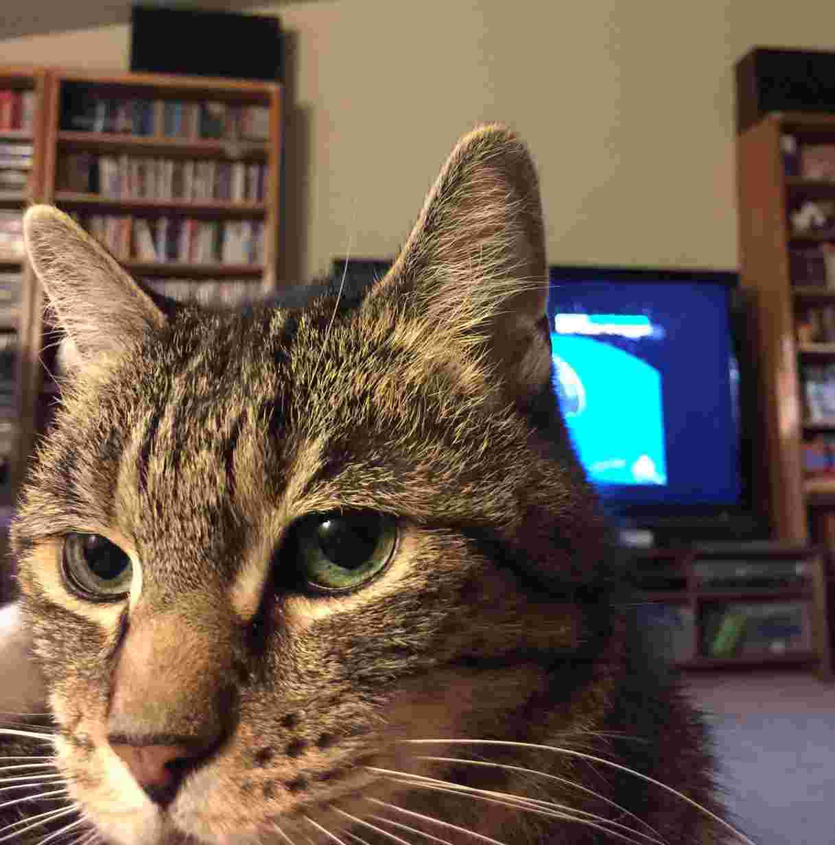 Because sometimes you just need pictures of cats rather than seeing the news, reading the comments, or having anything to do with about 99.9% of what’s on television – and there’s just not a good book at hand and you’re too tired to get up and get one: