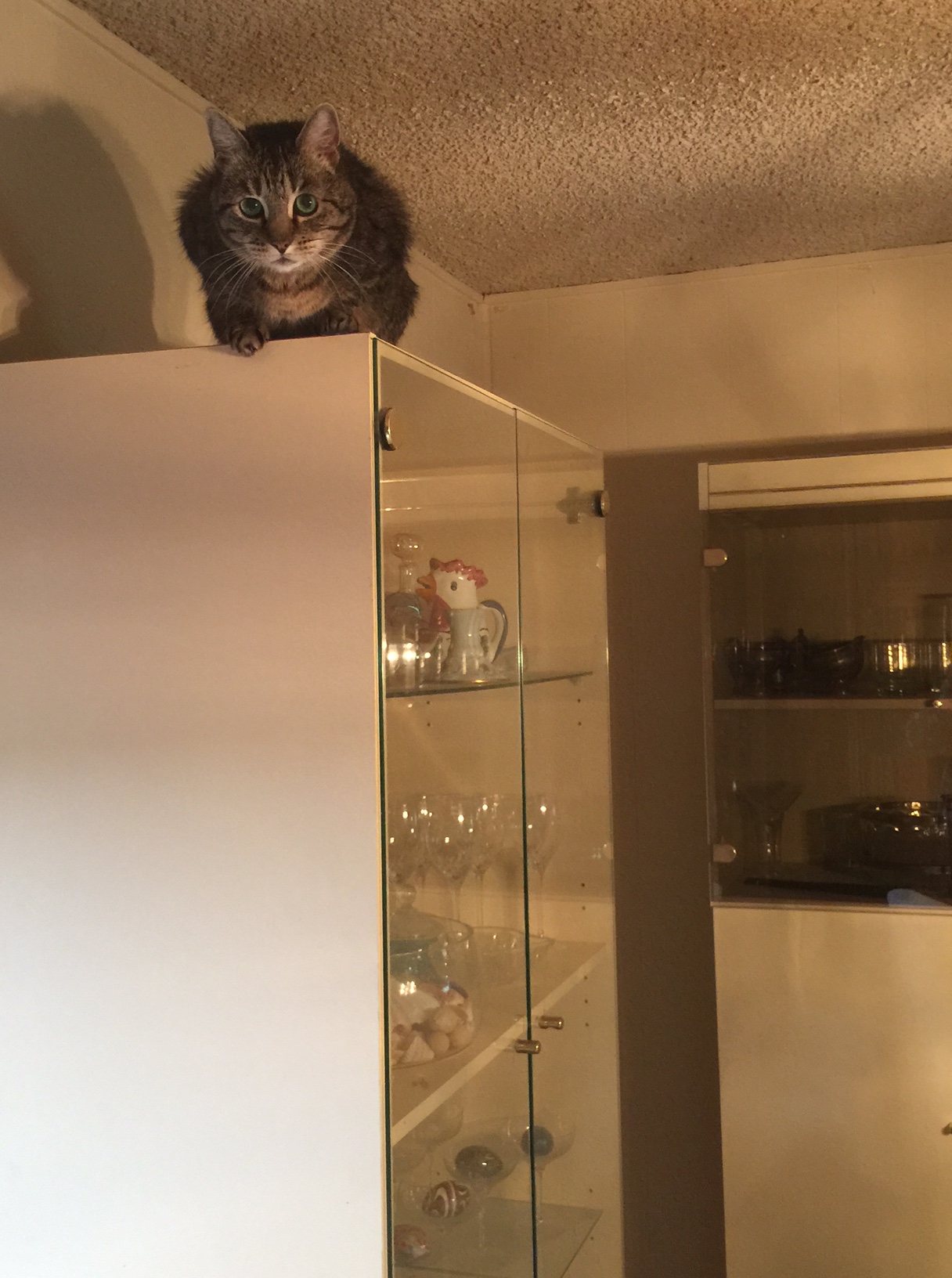 When you can’t find her anywhere in her normal sleeping or hiding spots, remember to look up for “DEATH FROM ABOVE!!”