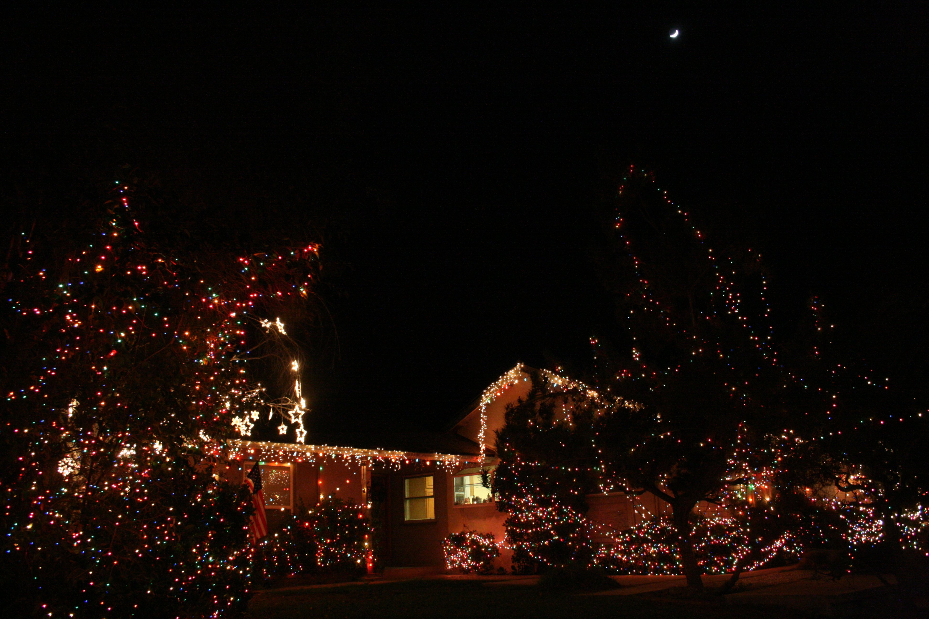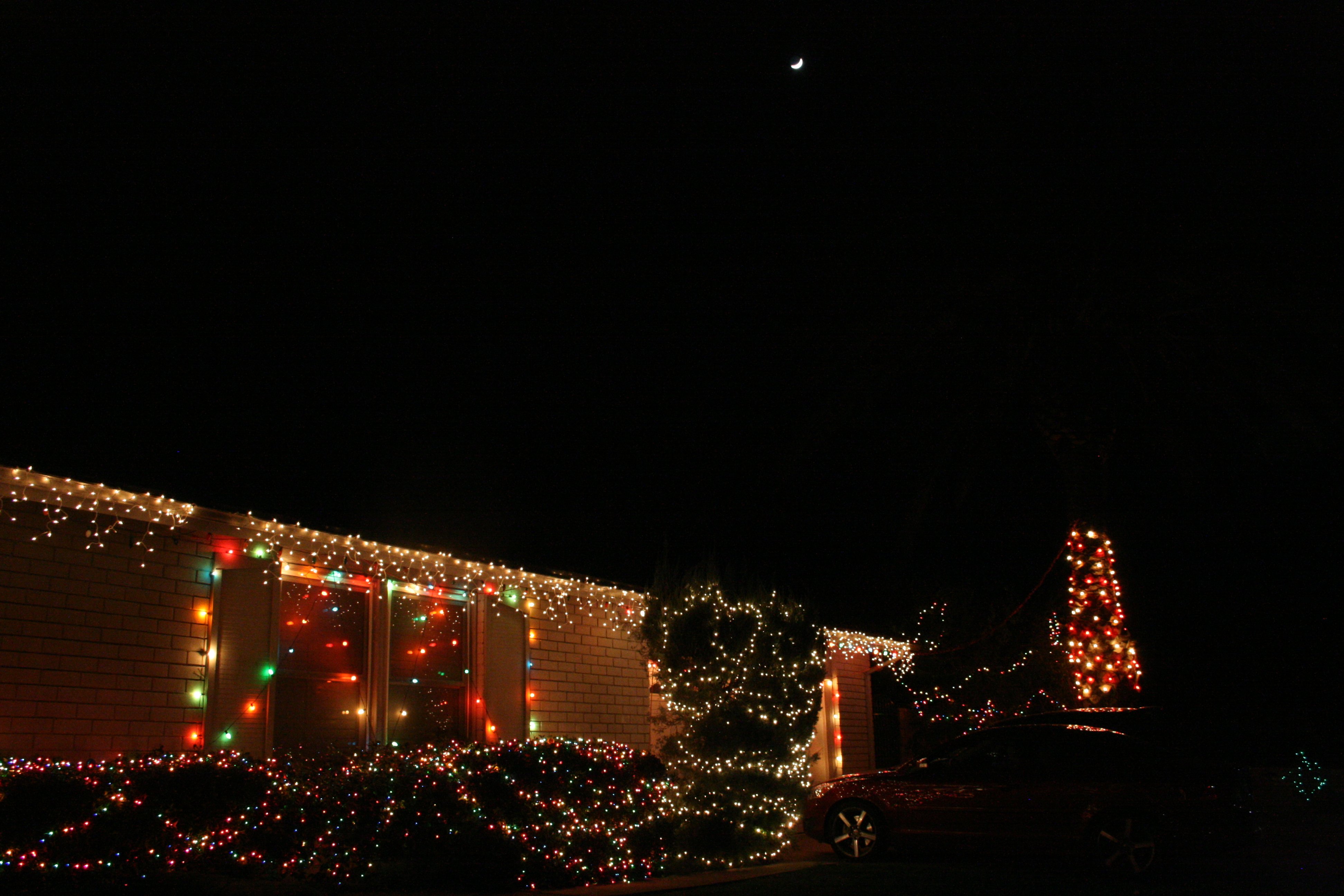 Back to looking at the lights, low in the west was a four-day-old crescent moon, high above the house.