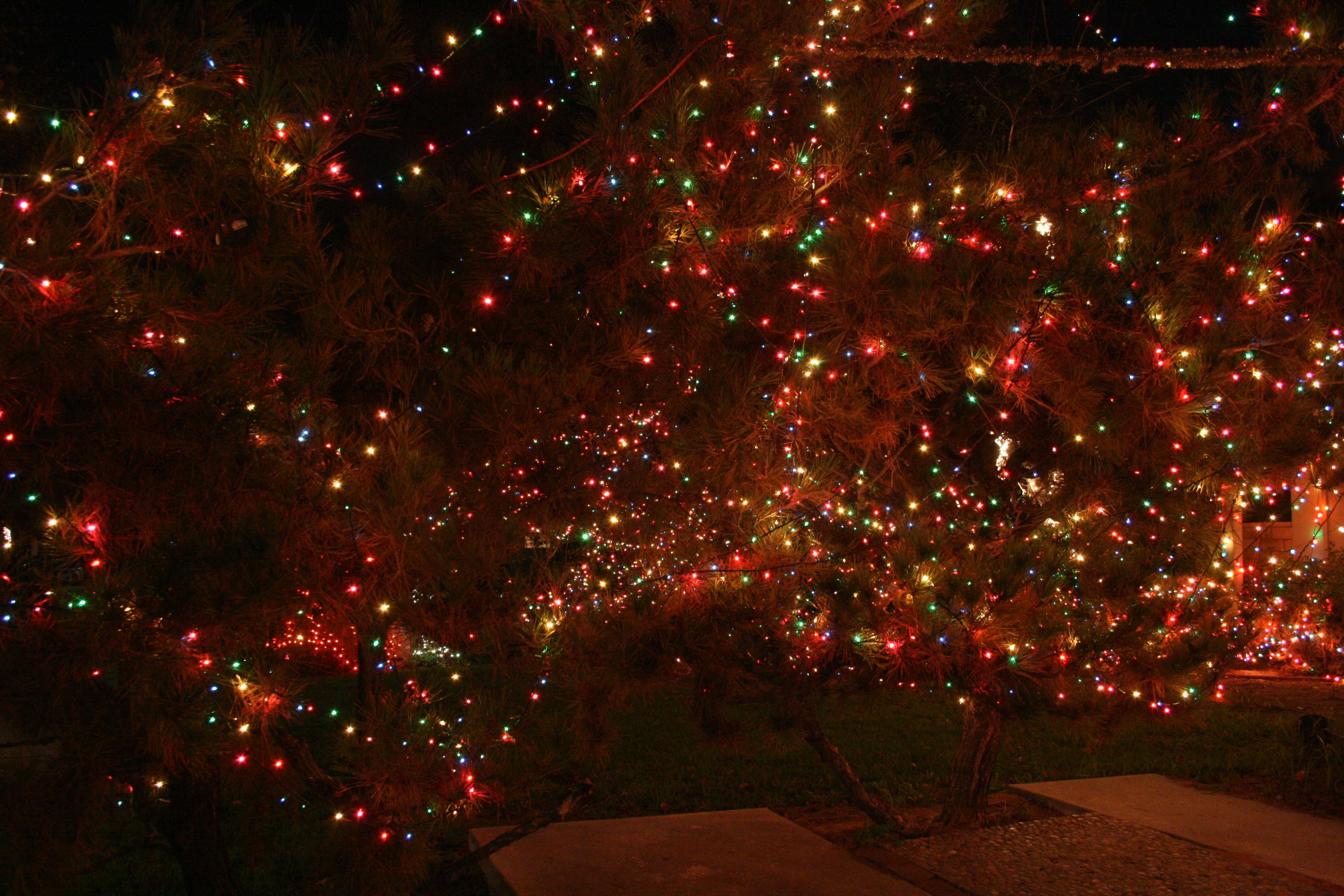 Here you can see it heading up from left to right. Obviously, trying to “hide” from the nearest streetlight in the shadow of a tree doesn’t help if the tree is covered in Christmas lights…