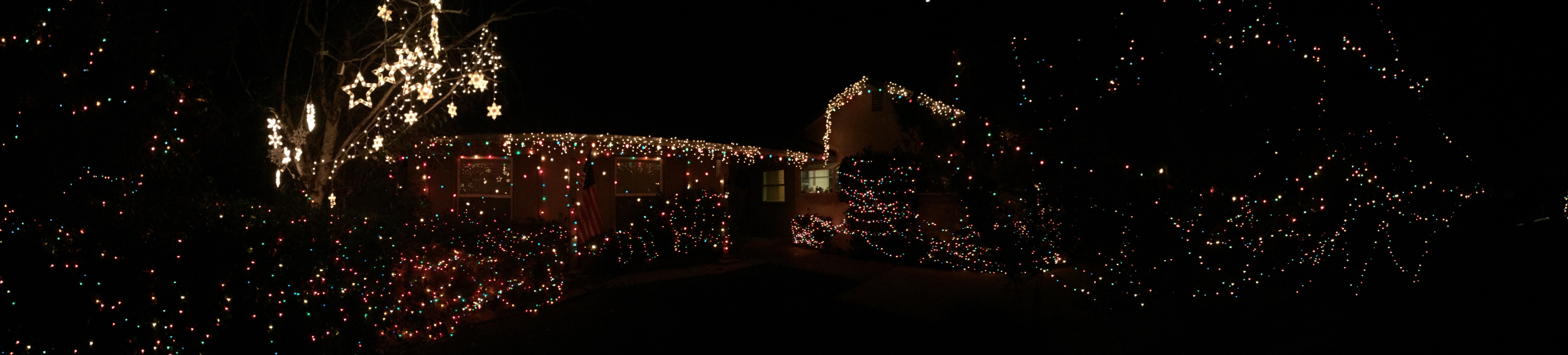 Christmas Night, 2014. We don’t have quite as many lights up this year as we have in a couple of previous years — but we still have more up than everyone else on the block combined, so we’ll call that a win.