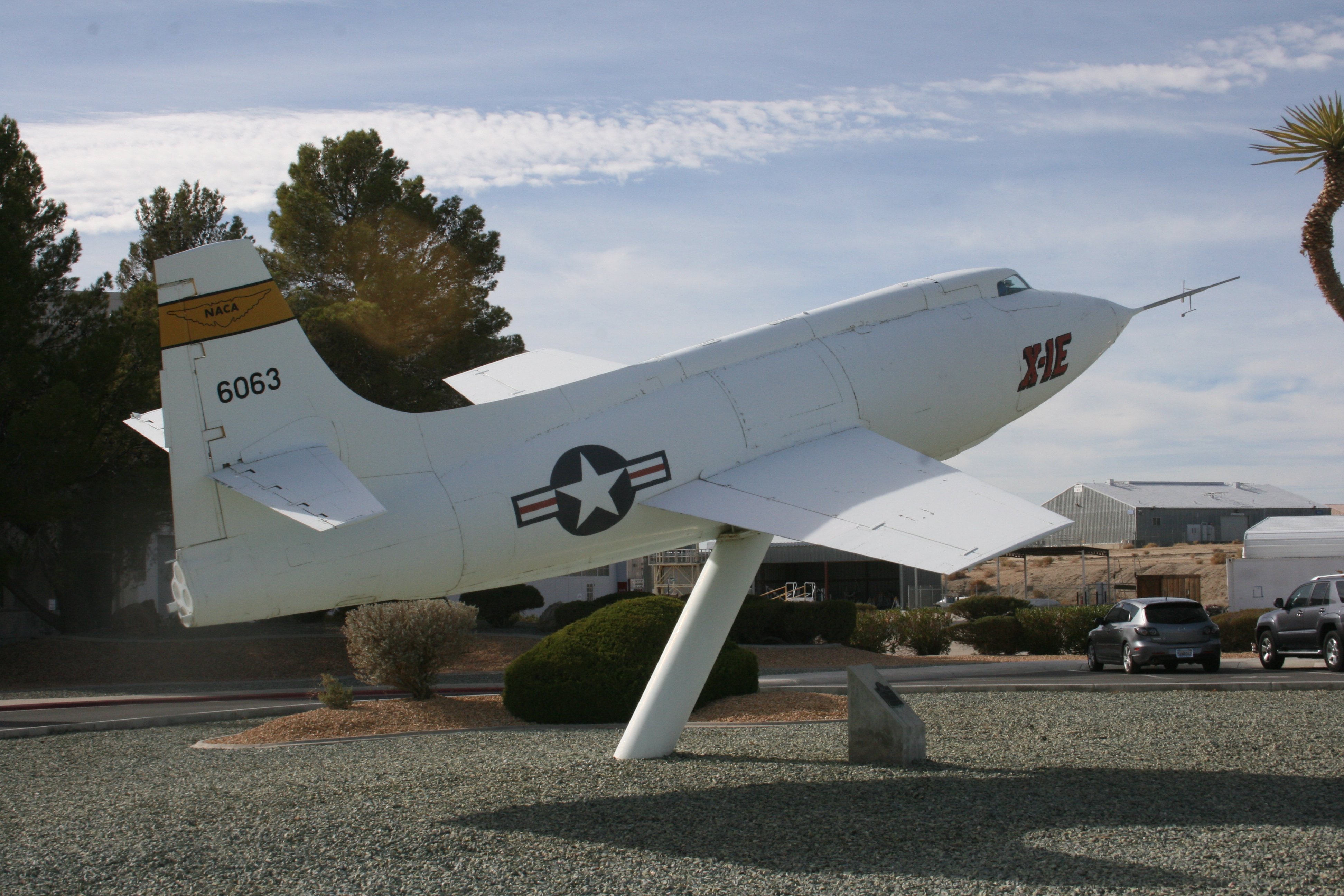 On base, outside of the NASA Edwards facilities, is the Bell X-1E. A sister aircraft to the Bell X-1 which Chuck Yeager used to break the sound barrier in 1947, the X-1E flew twenty-six test flights from 1955 through 1958, reaching a top speed of Mach 2.24.