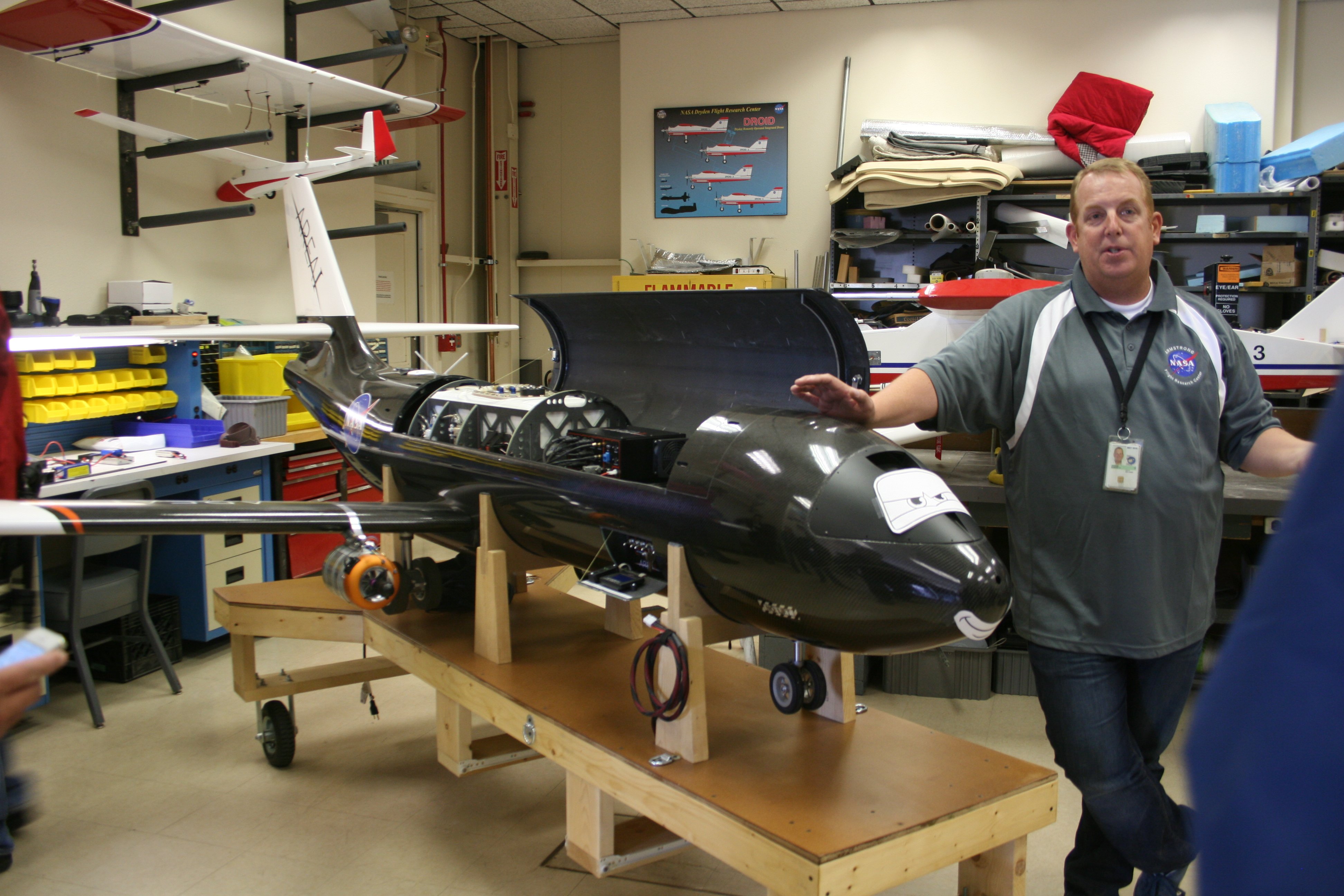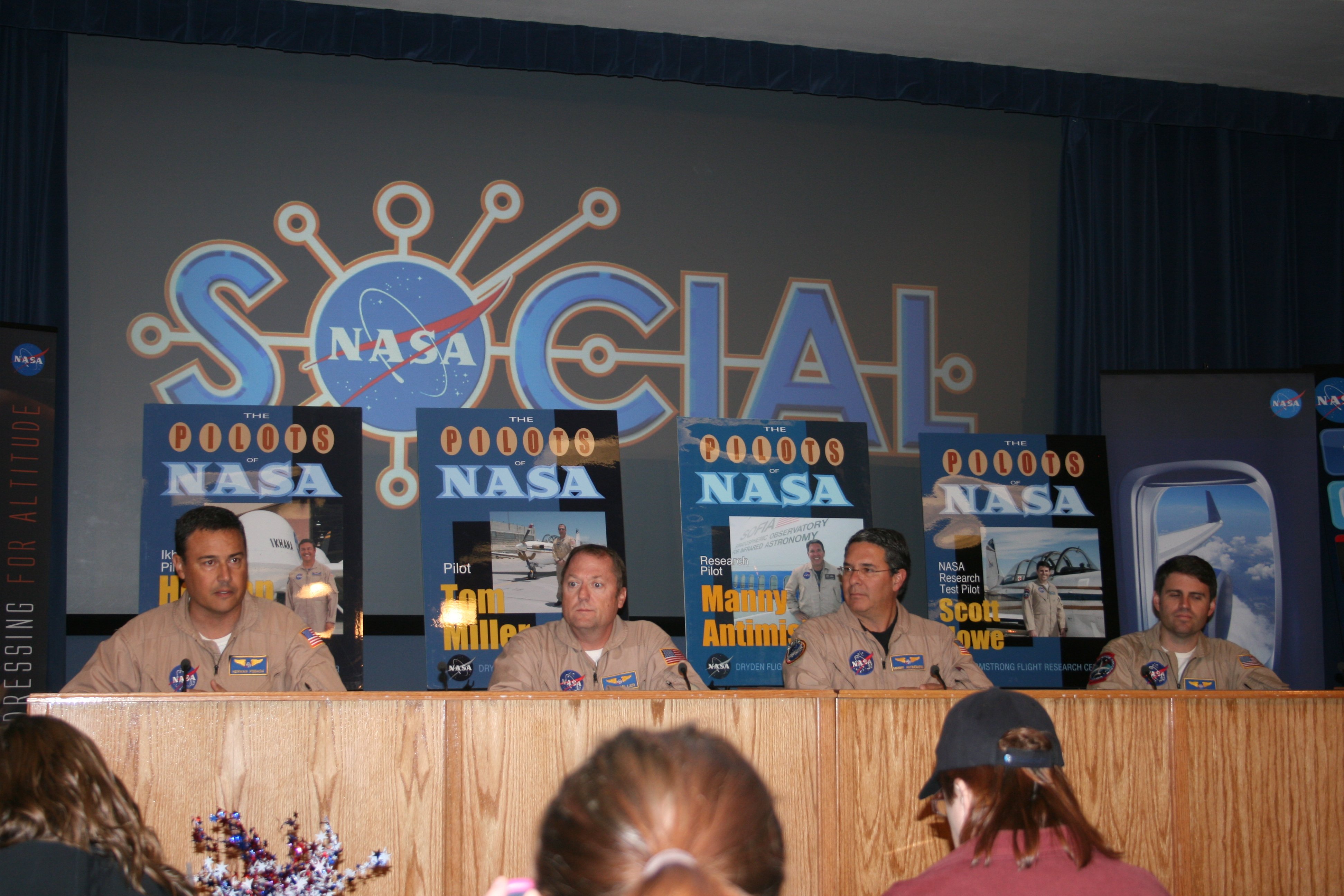 We had a great talk with four of the NASA Armstrong test pilots who fly the whole range of test aircraft, from the slow and small propeller-driven planes (used for noise studies) to the F-15s and the P3-B used for the Operation Icebridge. They also fly the remotely controlled drones which conduct atmospheric research all over the world.