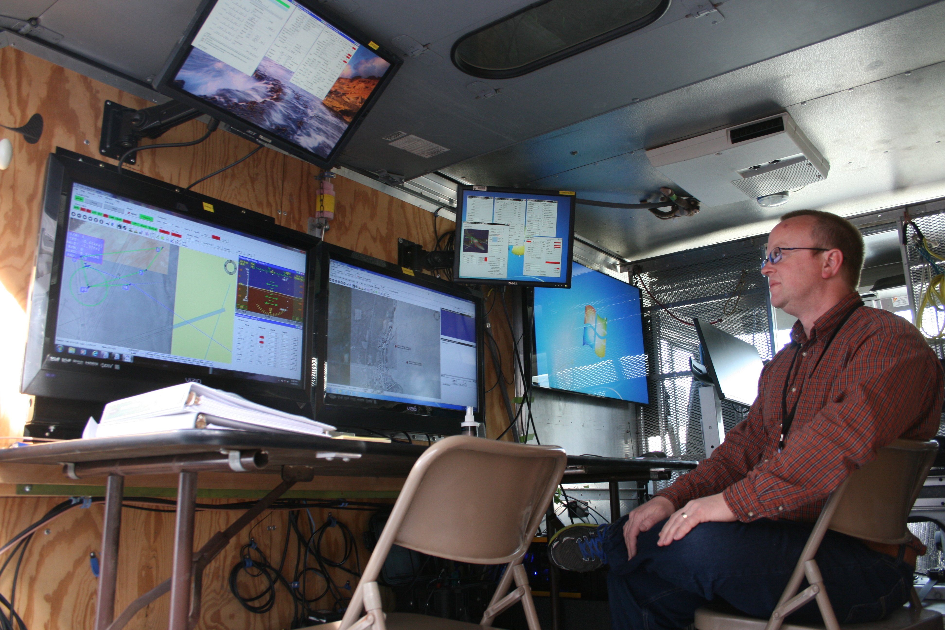 The scale models are often flown out in remote locations, where they need to be controlled using line-of-sight radio and data connections. In order to do that, this truck is outfitted as a mobile command base for remote operations. Given how hot it can get out in the Mojave Desert in the summer, I suspect that most important piece of equipment in the whole place is that air-conditioning unit on the ceiling.