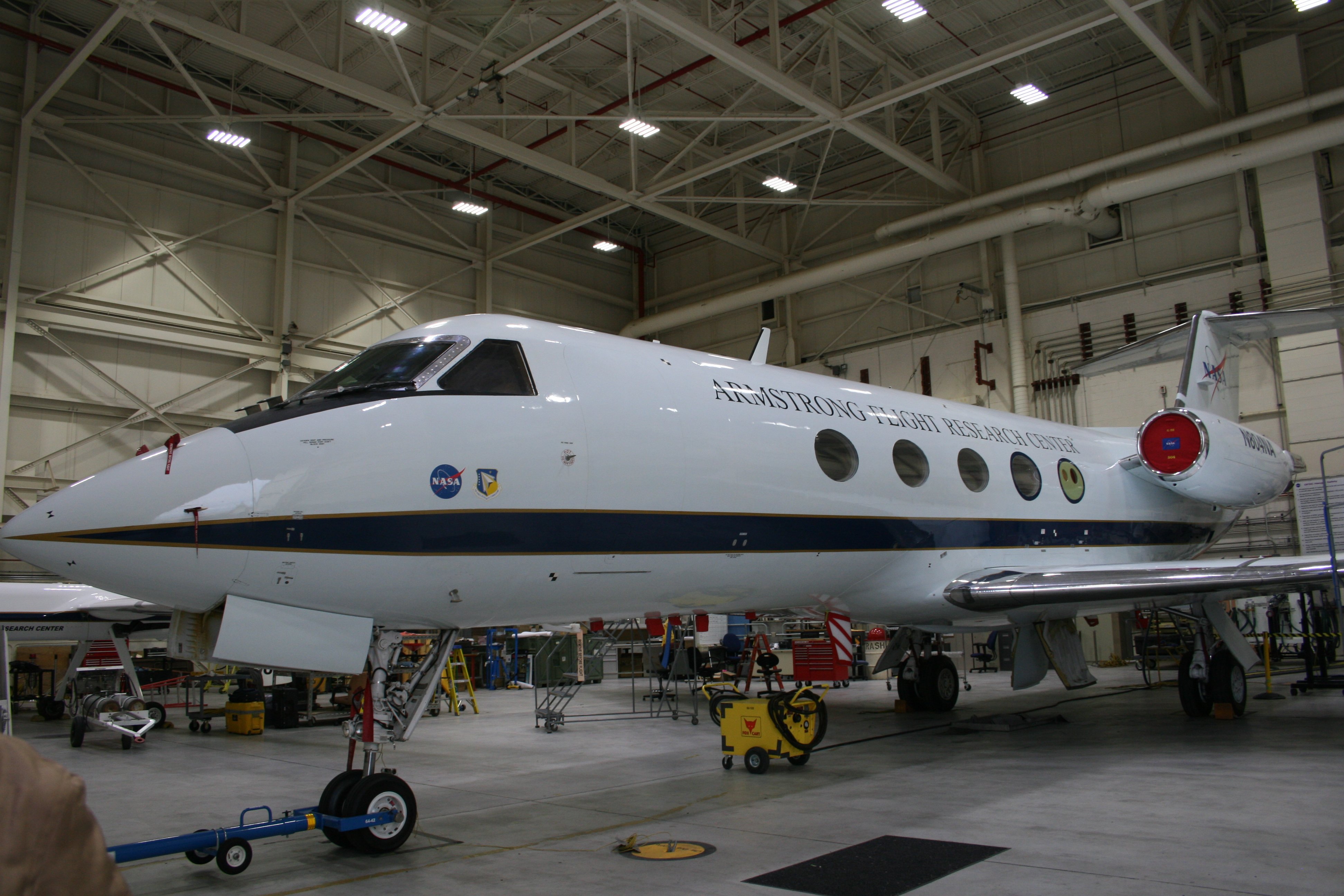 This is the modified Gulfstream III with the experimental shape changing wing that could someday reduce aircraft weight, noise, and fuel costs.